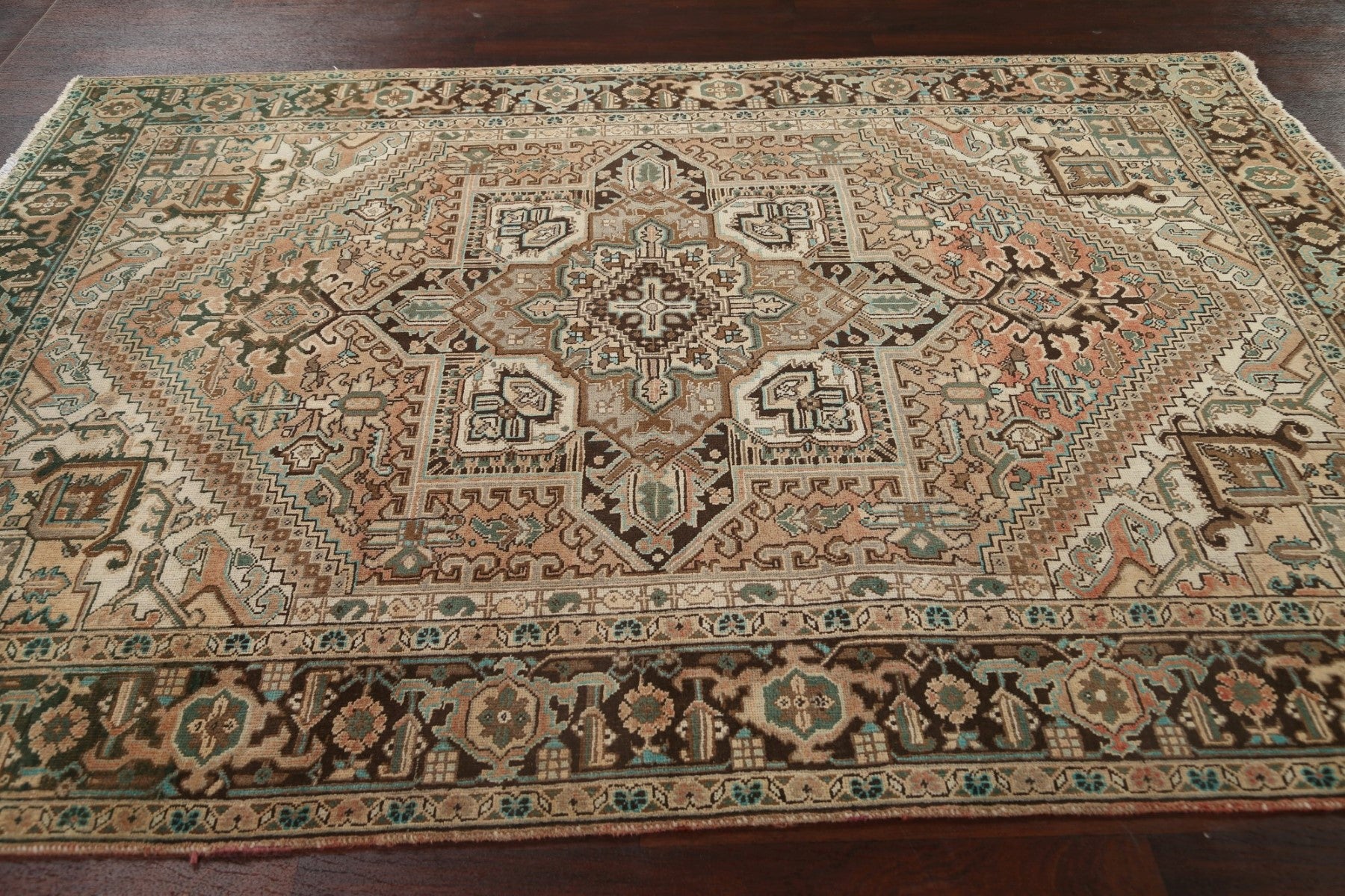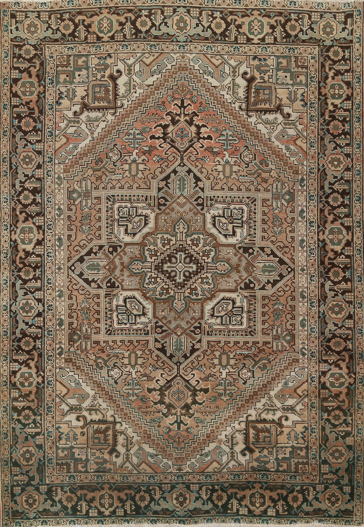 Distressed Geometric Heriz Persian Area Rug 7x9