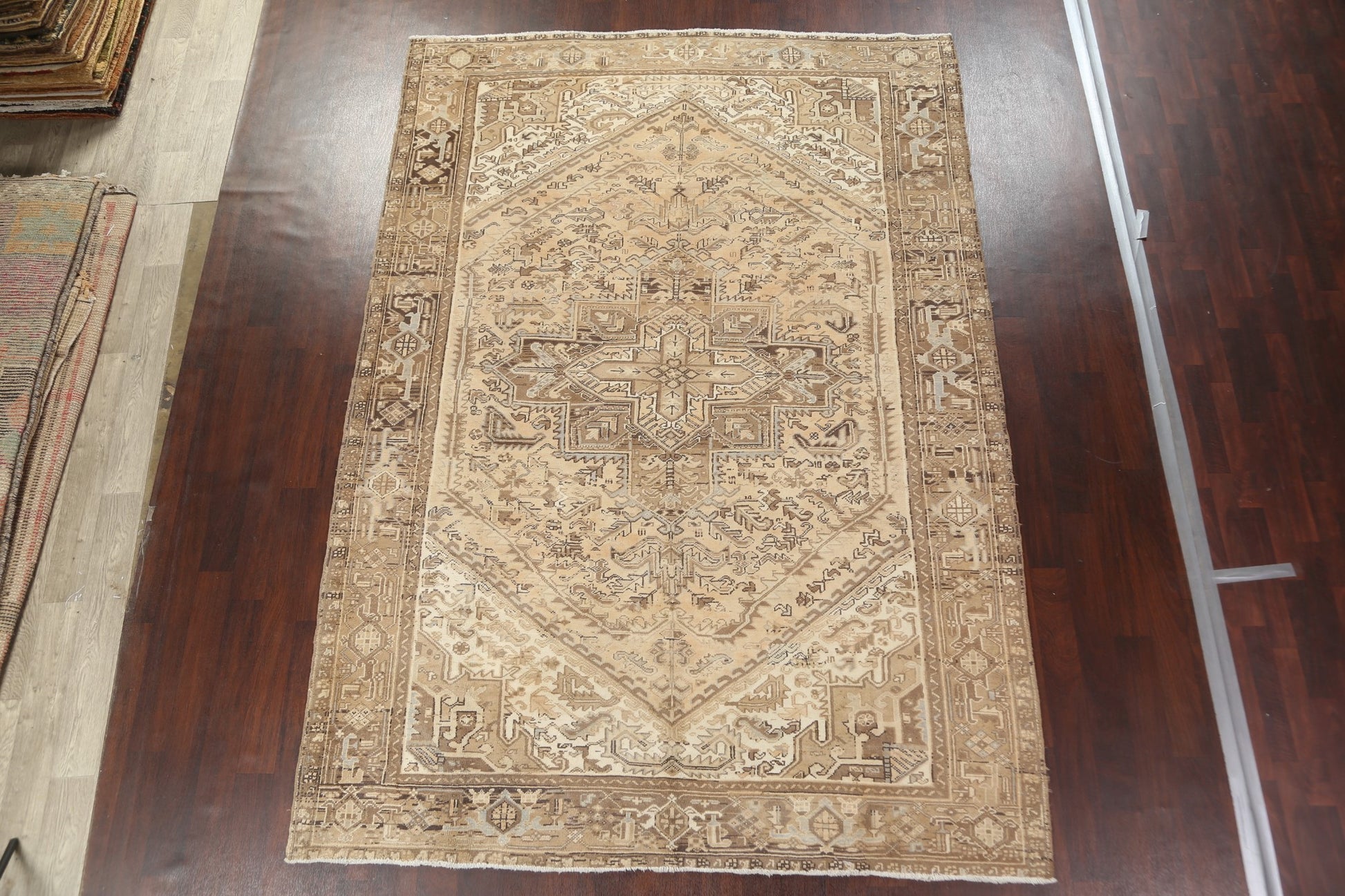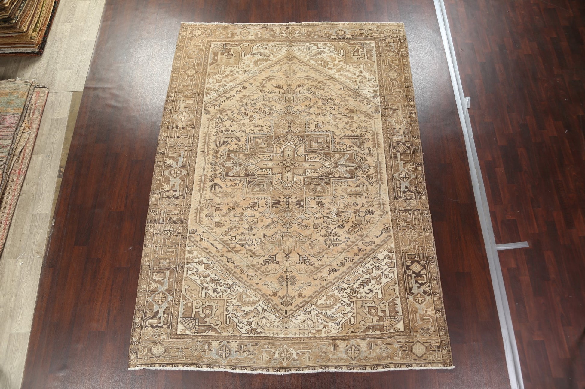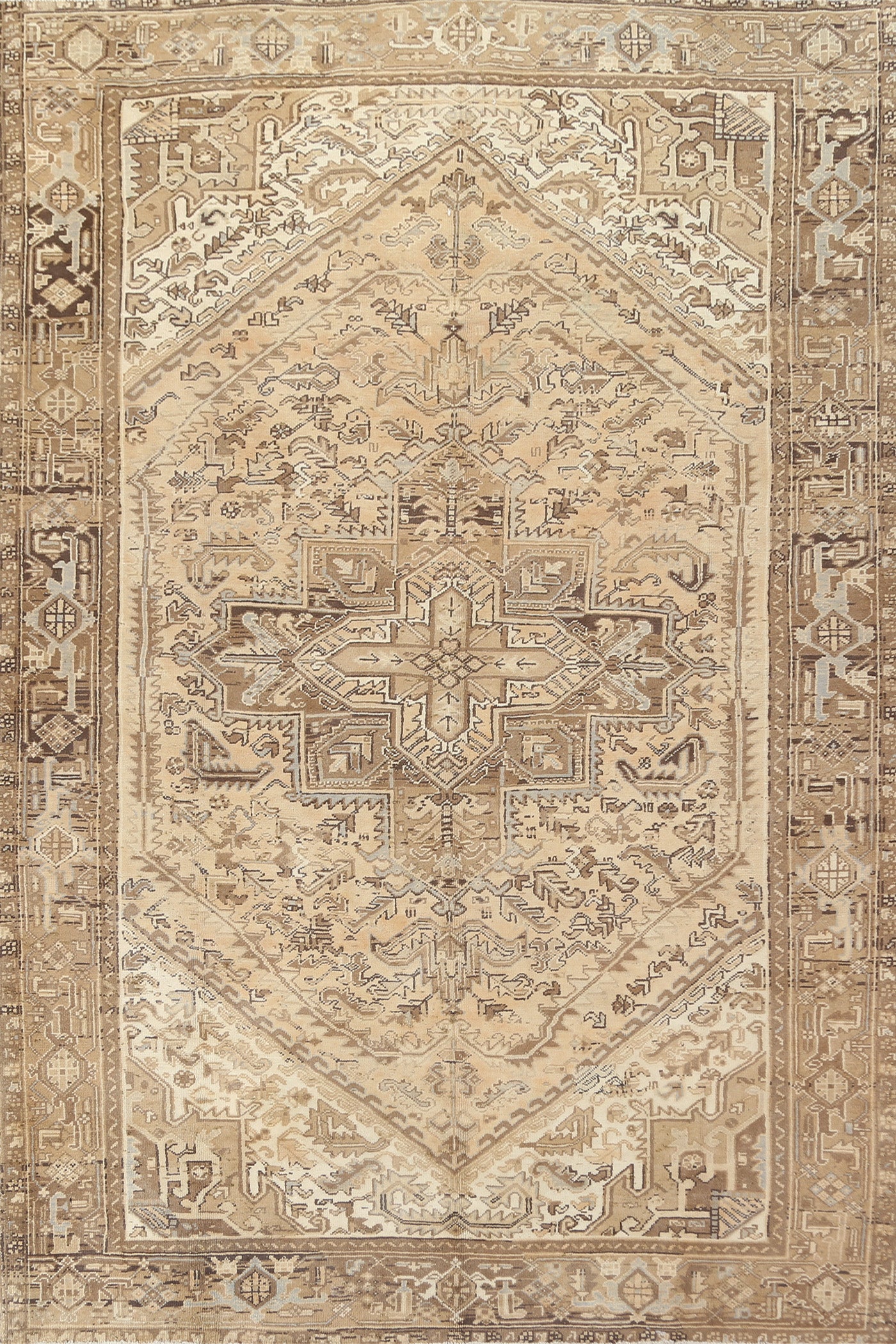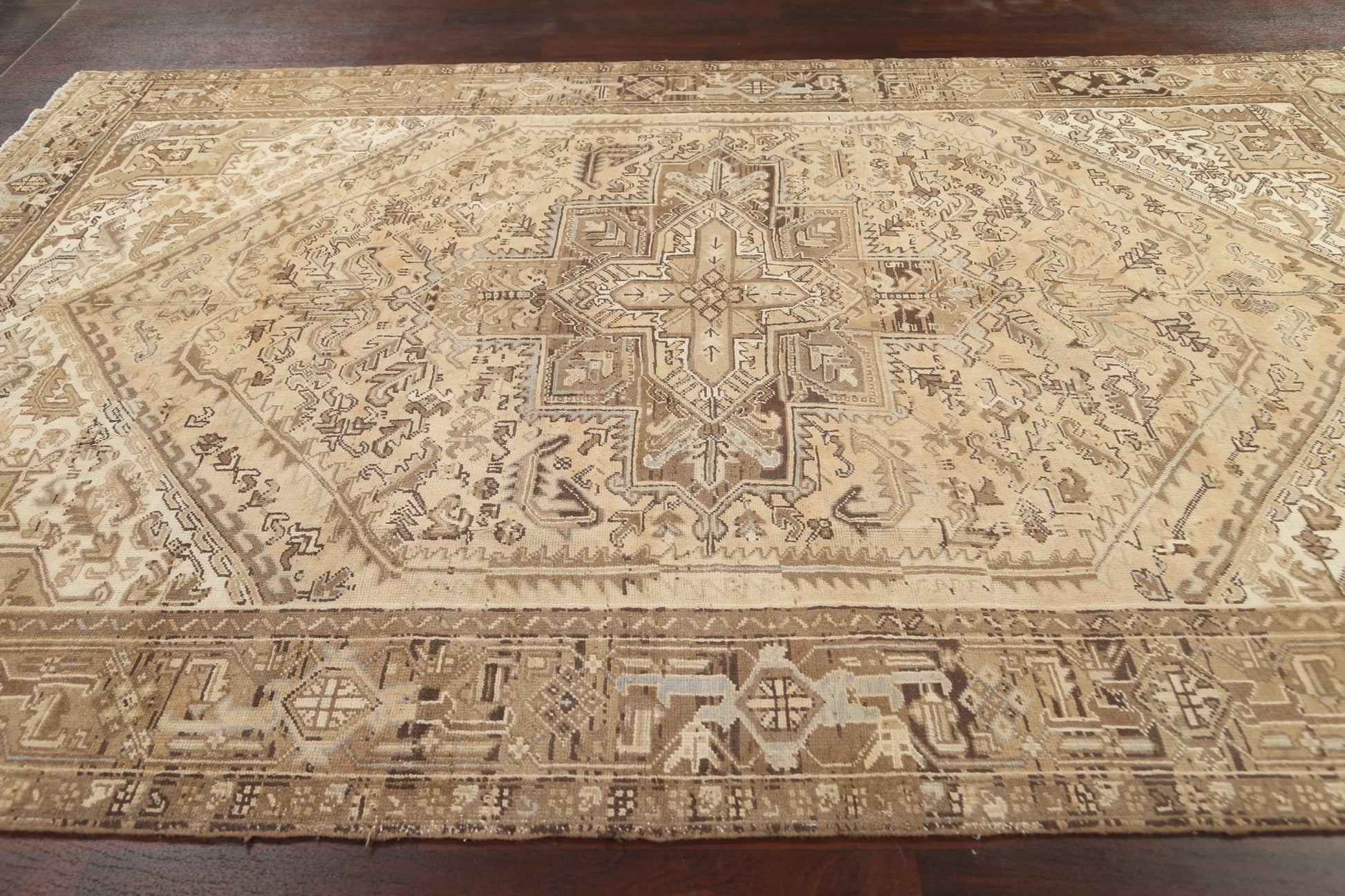 Distressed Geometric Heriz Persian Area Rug 8x11