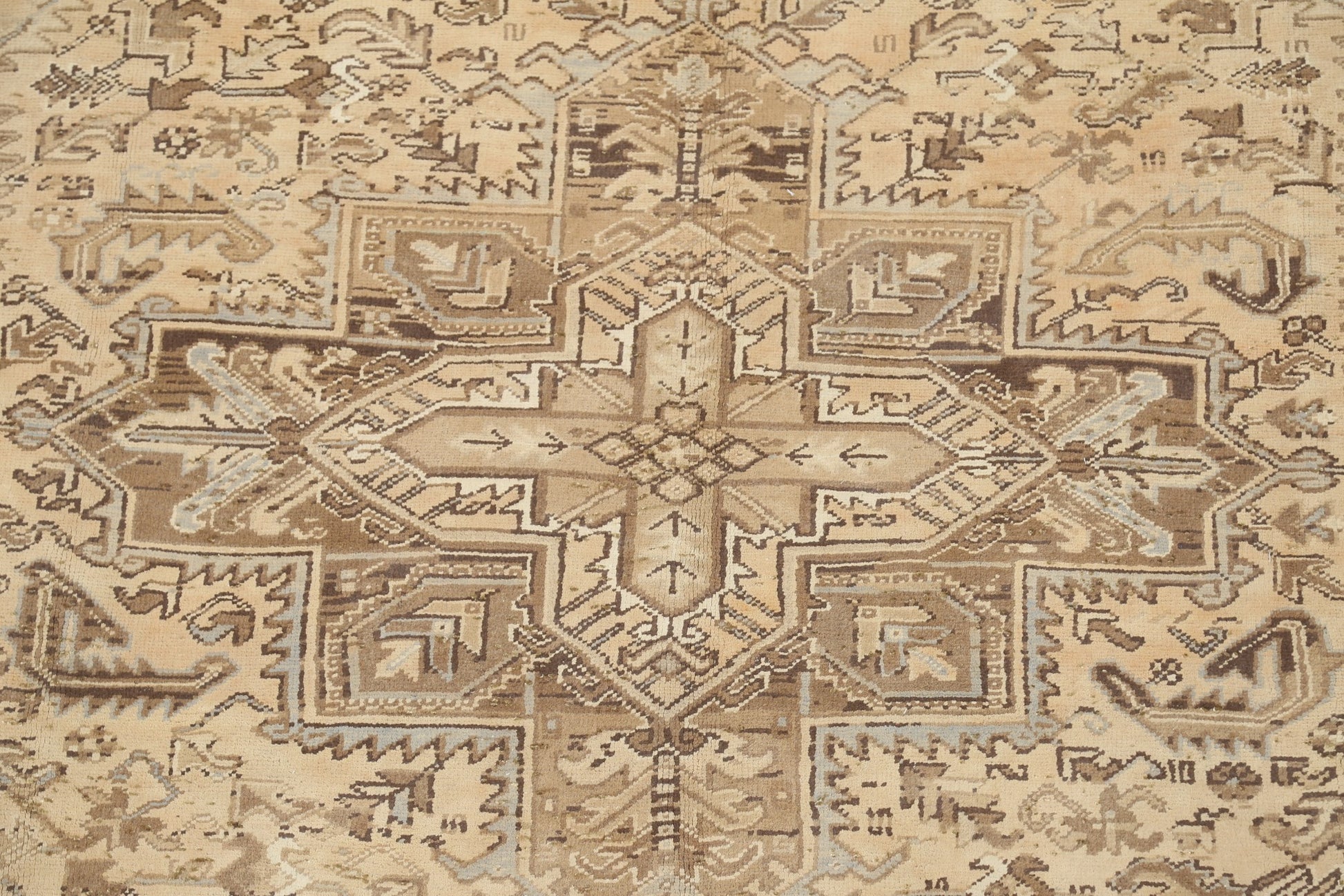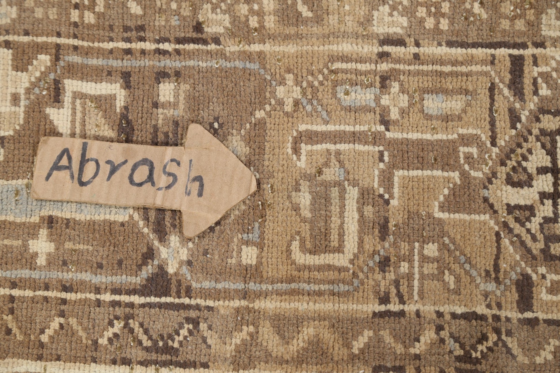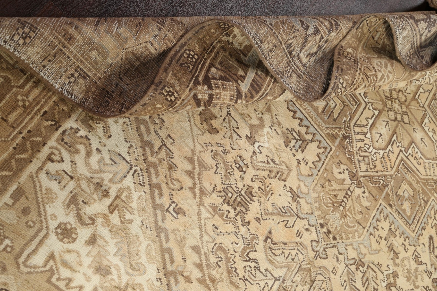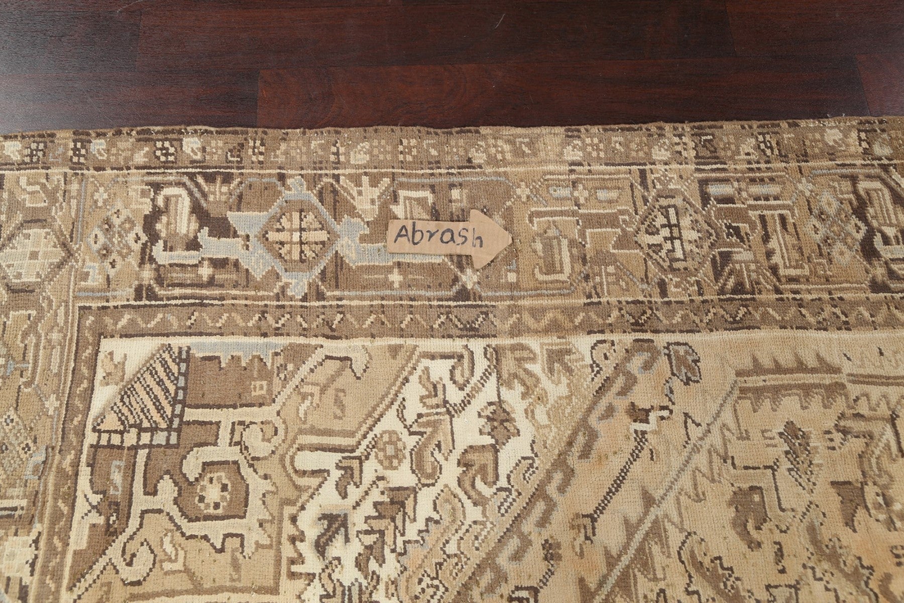 A Beautiful Genuine Persia ( Persia ) Heriz rug is Hand Knotted by skillful weavers in Persia ( Persia ) with 100% Wool Material. This rug is in Very Good (Evenly Low Pile-Abrash) condition. dimensions are 11' 3'' X 7' 11'' in foot and 343 X 241 in centimeter. the primary color is Beige & Ivories.