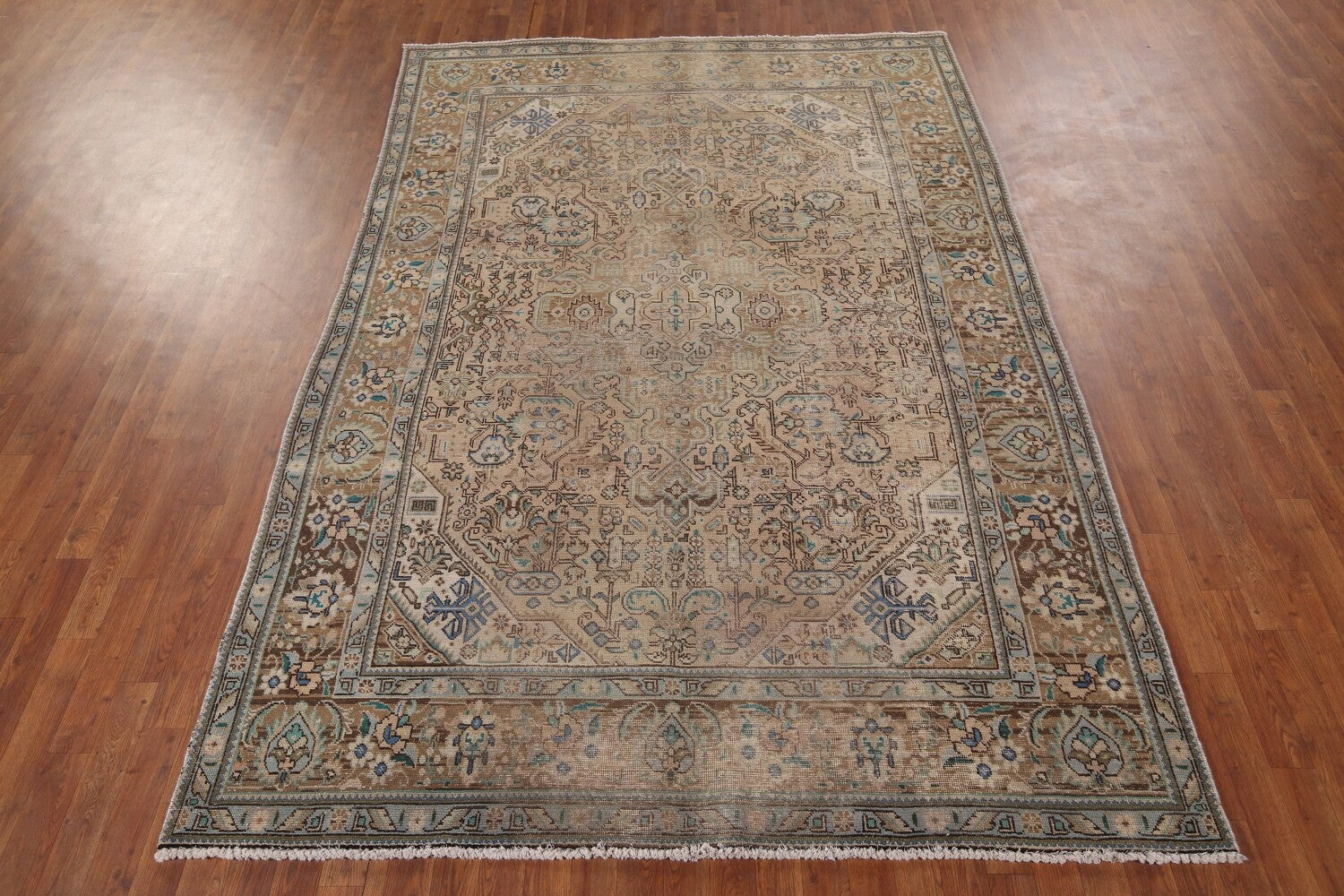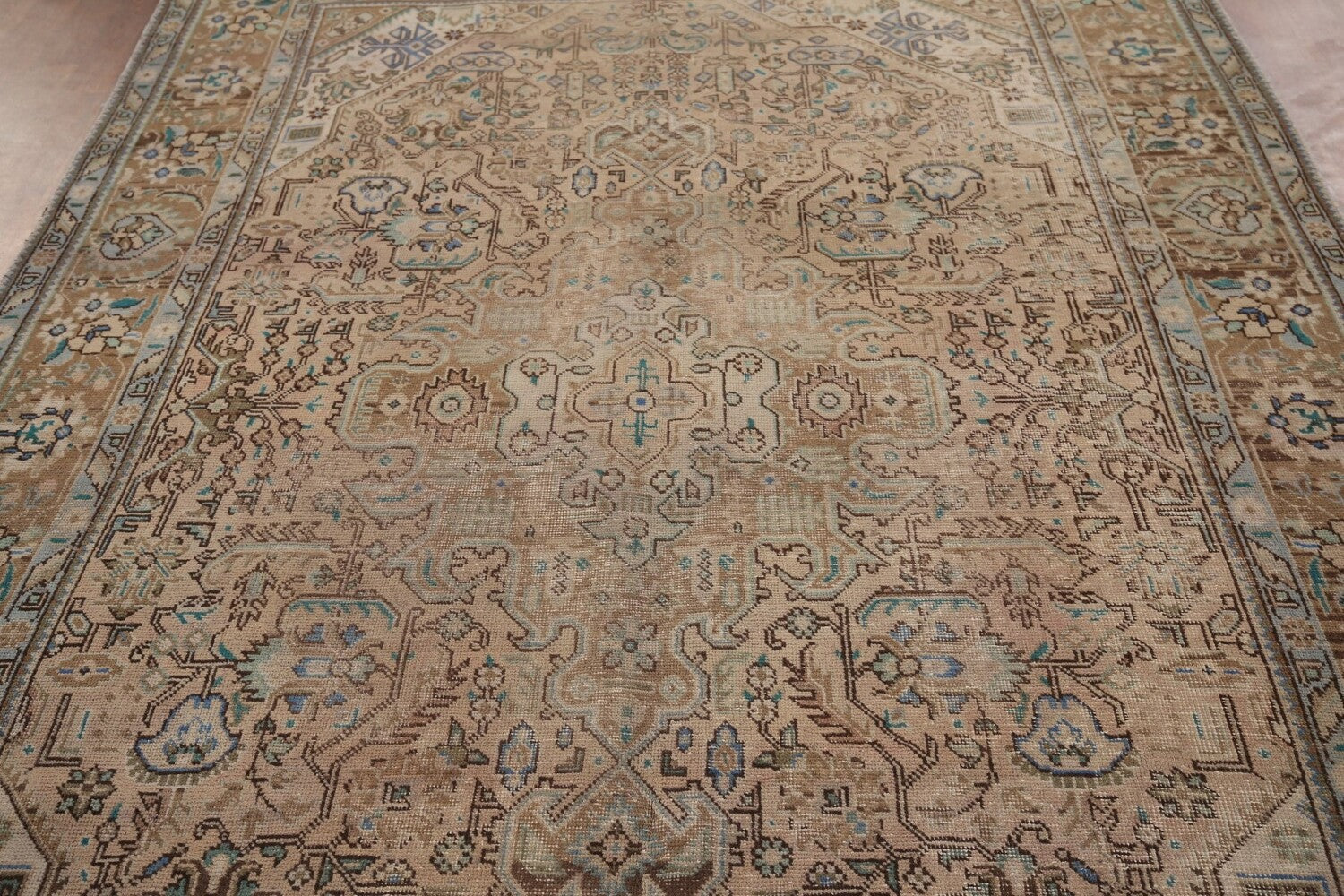Distressed Geometric Tabriz Persian Area Rug 7x10