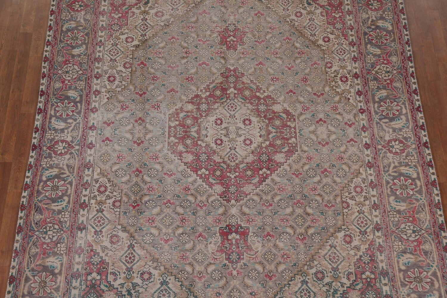 Distressed Geometric Tabriz Persian Area Rug 8x11