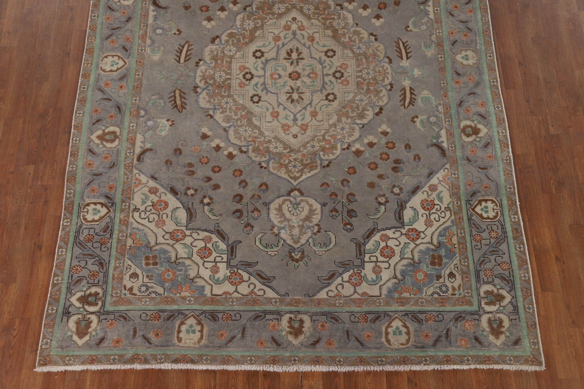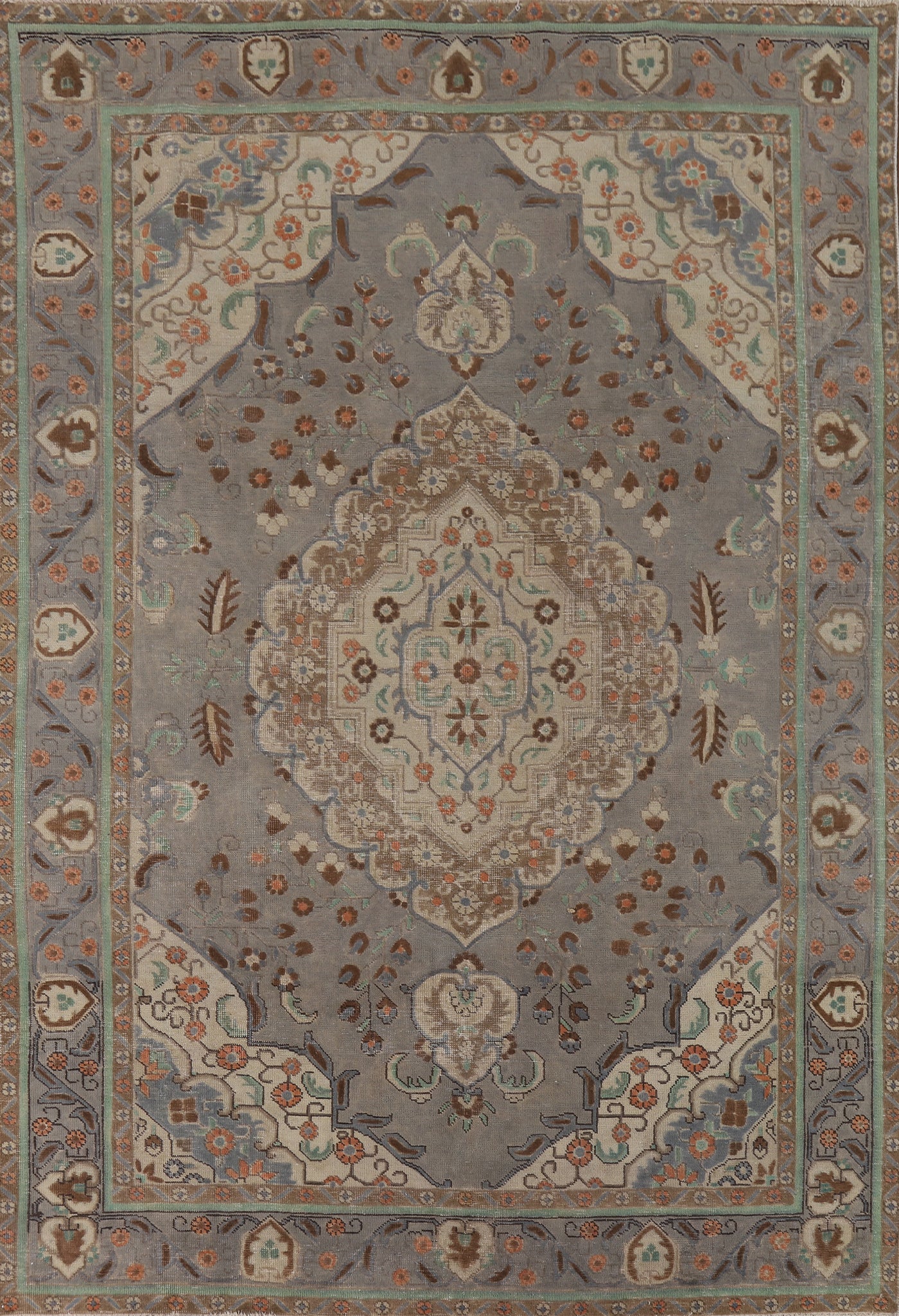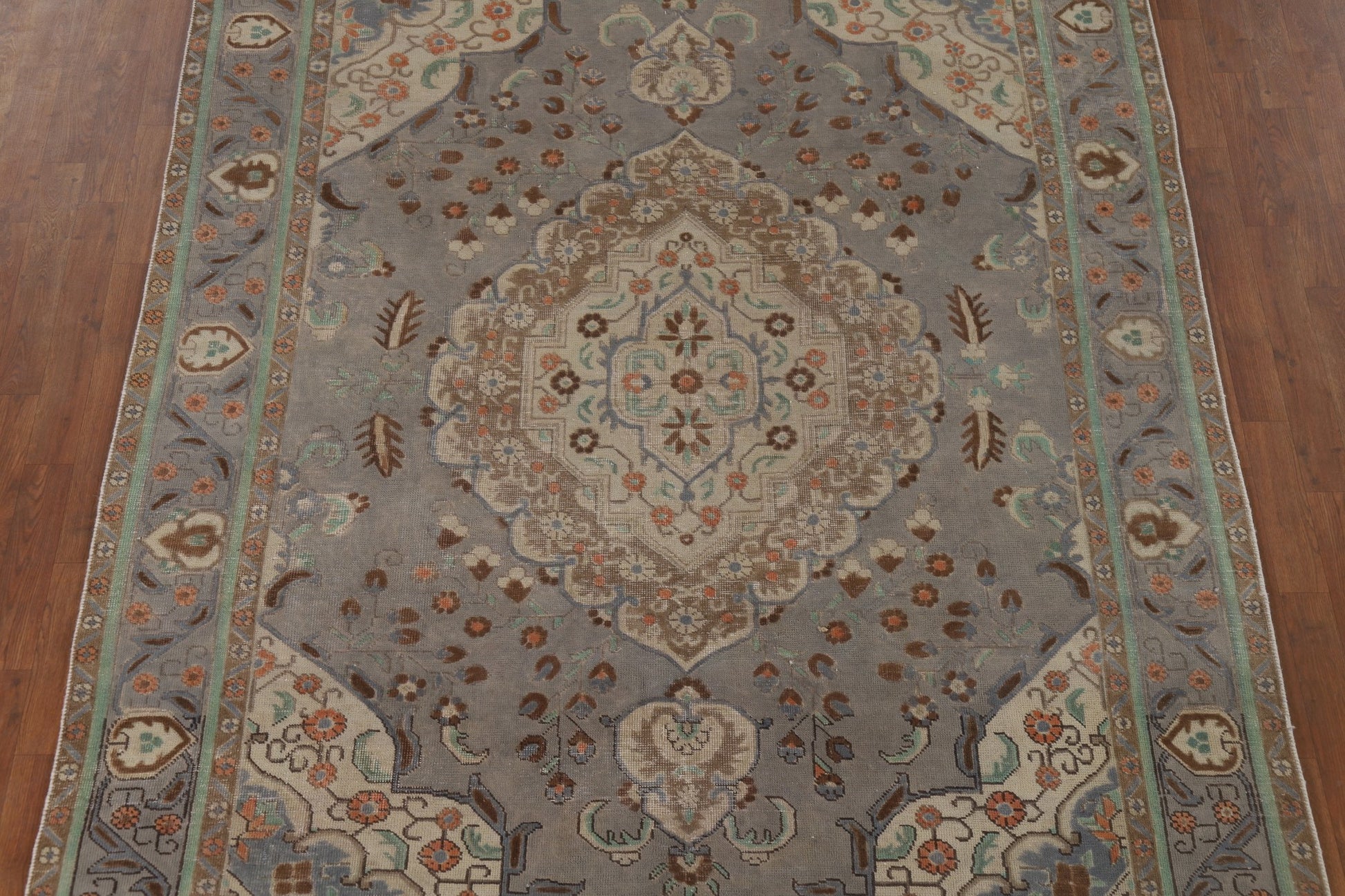 Distressed Gray Tabriz Persian Area Rug 7x9