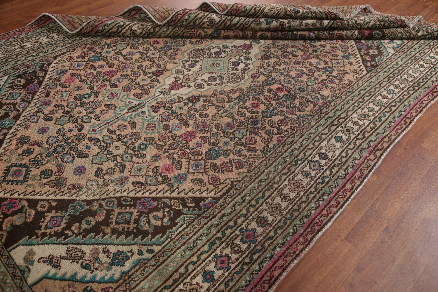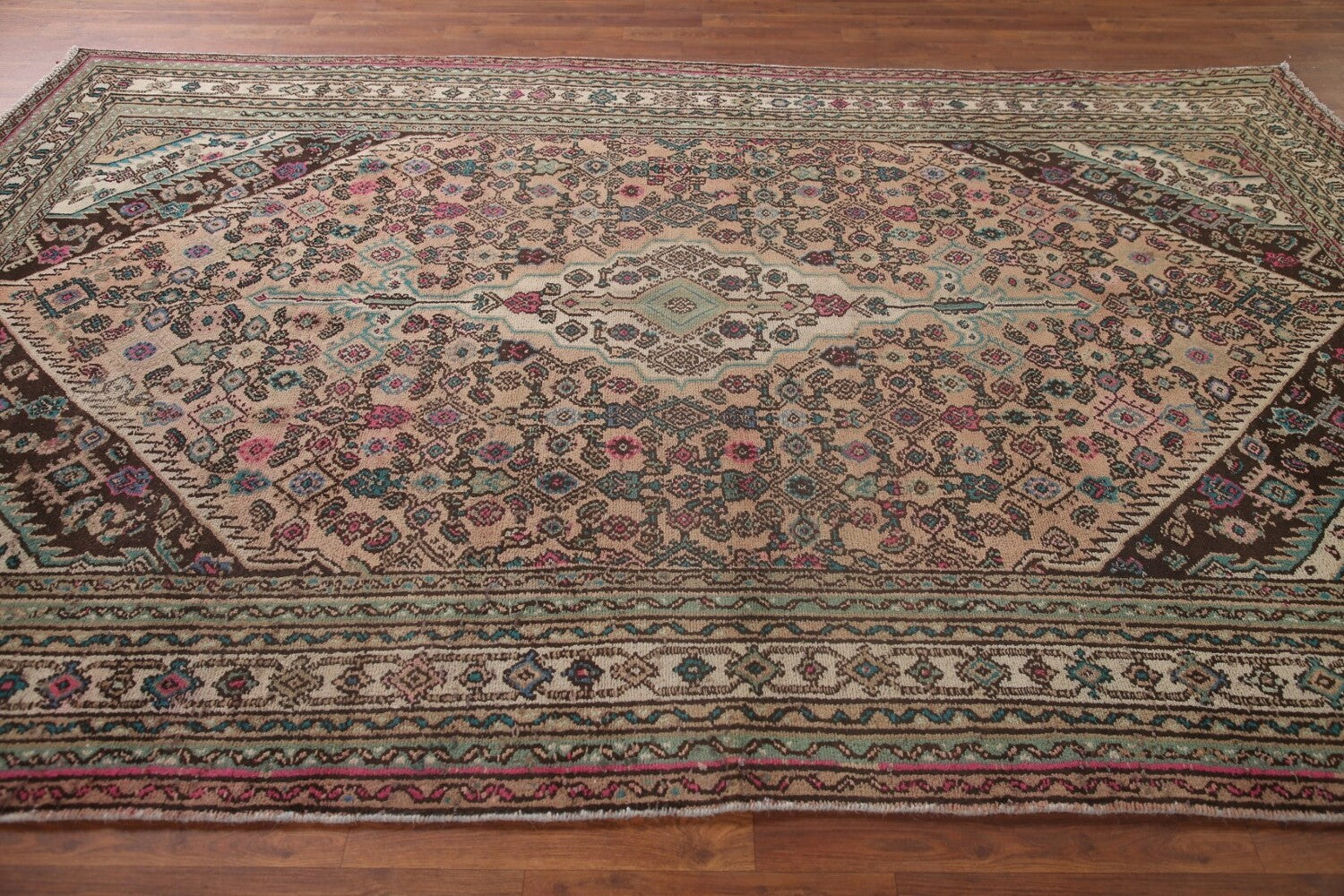 A Beautiful Genuine Persia ( Persia ) Hamedan rug is Hand Knotted by skillful weavers in Persia ( Persia ) with 100% Wool Material. This rug is in Very Good (Low Pile) condition. dimensions are 9' 10'' X 6' 3'' in foot and 300 X 191 in centimeter. the primary color is Pink.