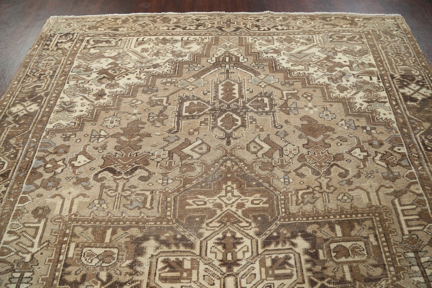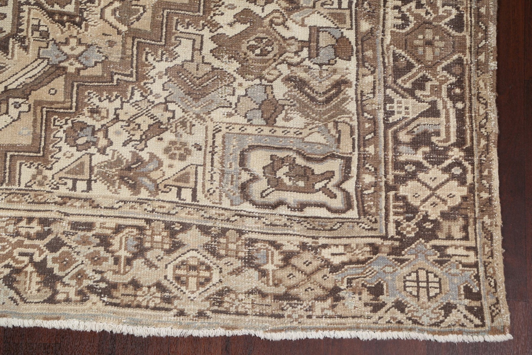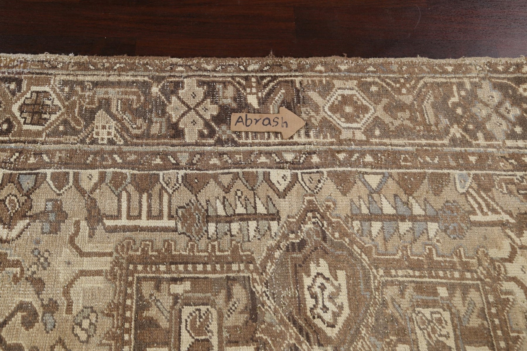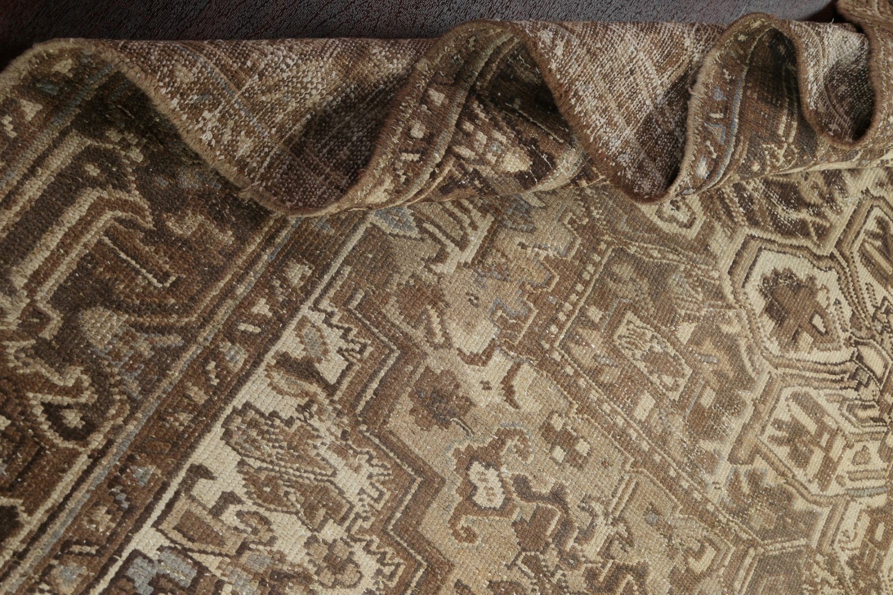 A Beautiful Genuine Persia ( Persia ) Heriz rug is Hand Knotted by skillful weavers in Persia ( Persia ) with 100% Wool Material. This rug is in Very Good (Evenly Low Pile-Abrash) condition. dimensions are 11' 8'' X 8' 8'' in foot and 356 X 264 in centimeter. the primary color is Beige & Ivories.