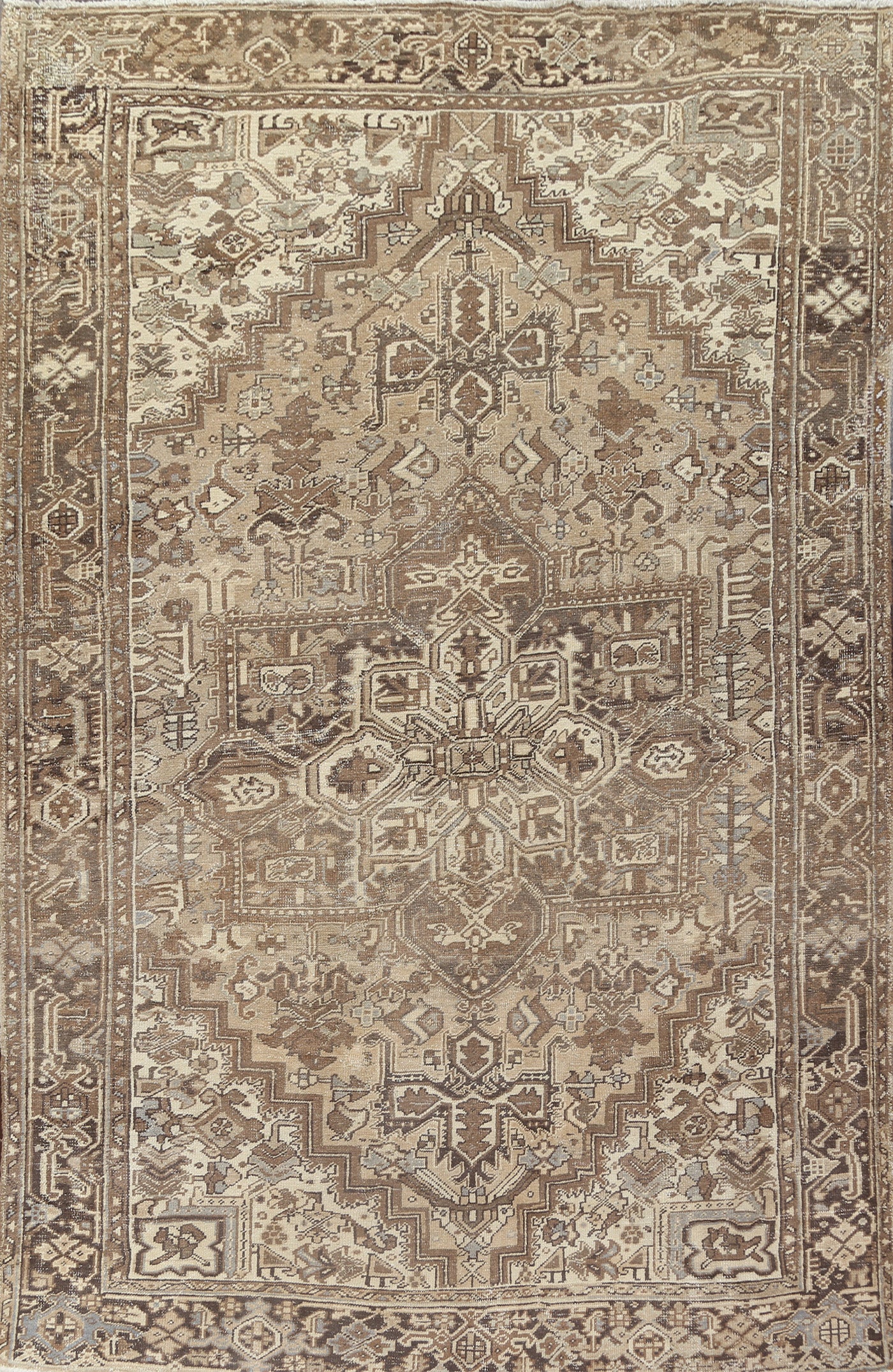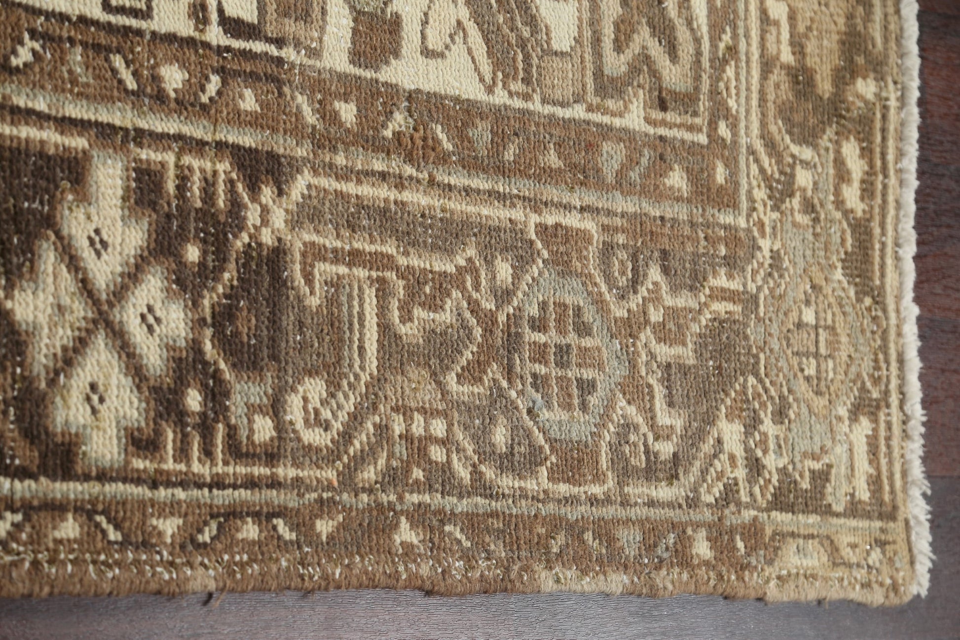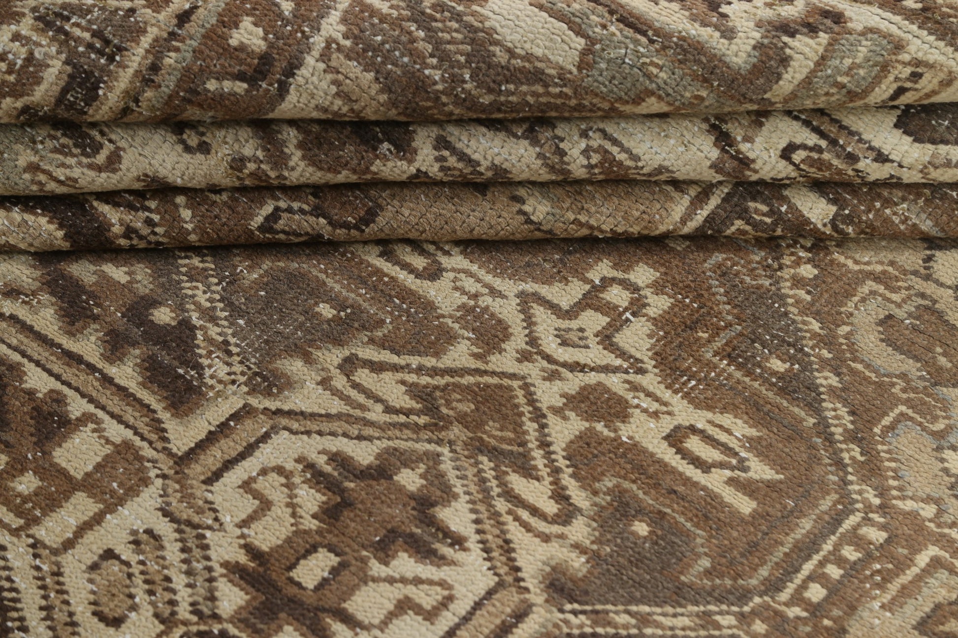 A Beautiful Genuine Persia ( Persia ) Heriz rug is Hand Knotted by skillful weavers in Persia ( Persia ) with 100% Wool Material. This rug is in Very Good (Evenly Low Pile-Abrash) condition. dimensions are 11' 8'' X 8' 8'' in foot and 356 X 264 in centimeter. the primary color is Beige & Ivories.