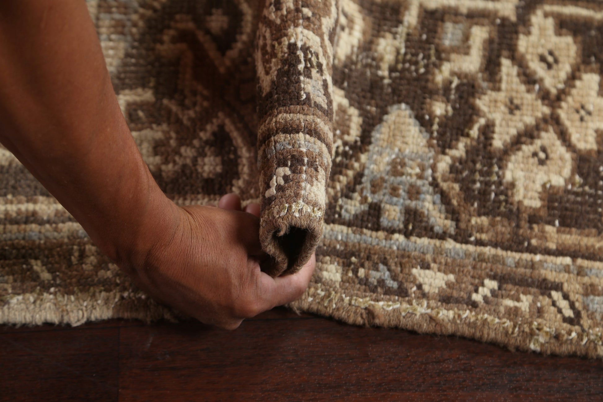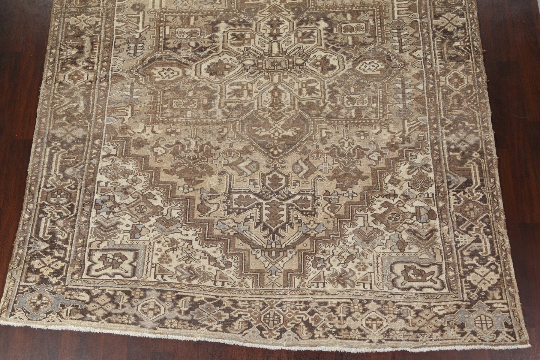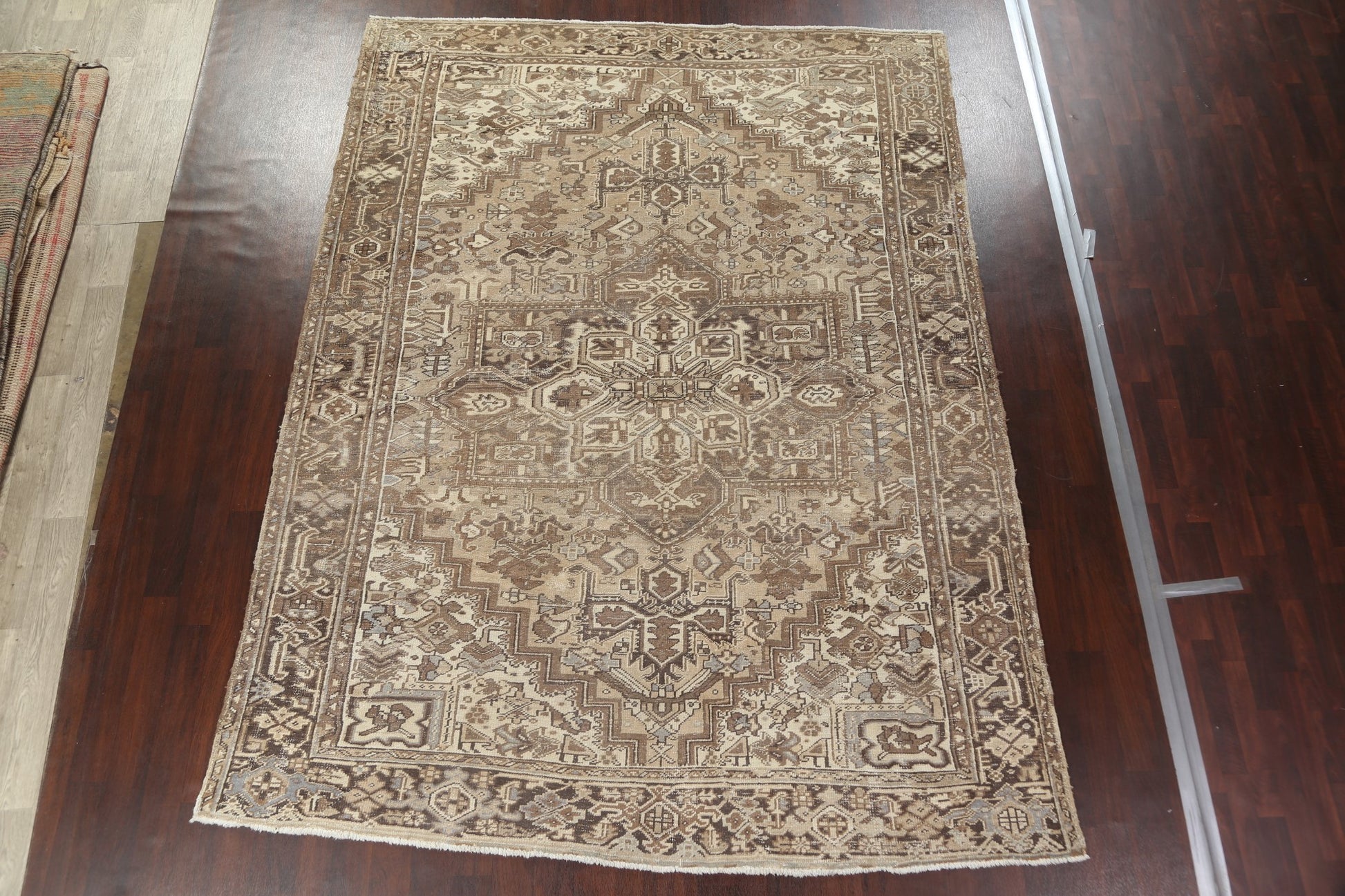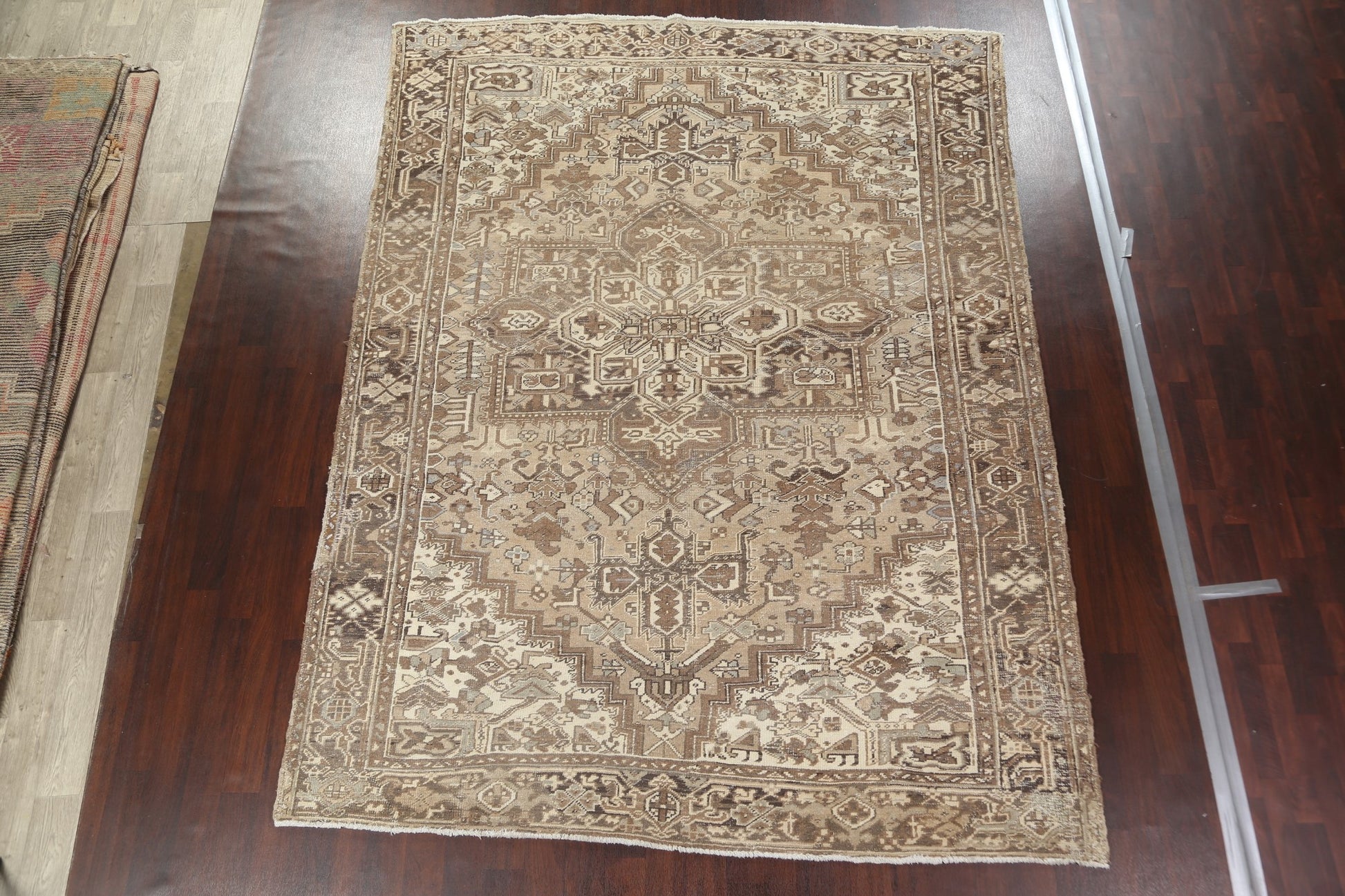 A Beautiful Genuine Persia ( Persia ) Heriz rug is Hand Knotted by skillful weavers in Persia ( Persia ) with 100% Wool Material. This rug is in Very Good (Evenly Low Pile-Abrash) condition. dimensions are 11' 8'' X 8' 8'' in foot and 356 X 264 in centimeter. the primary color is Beige & Ivories.