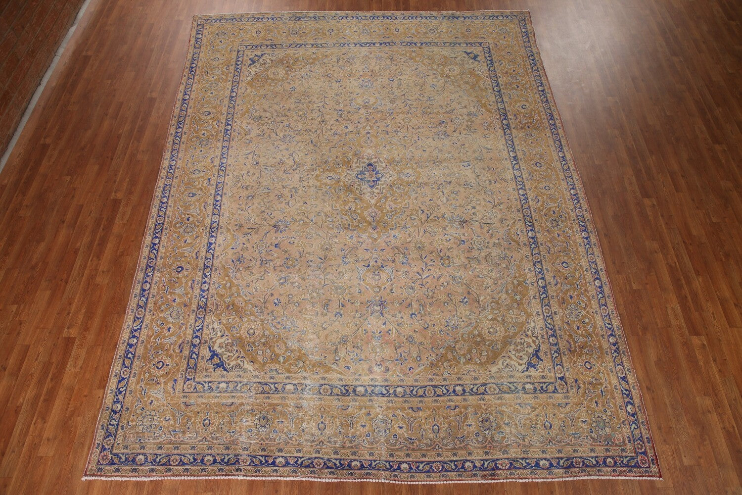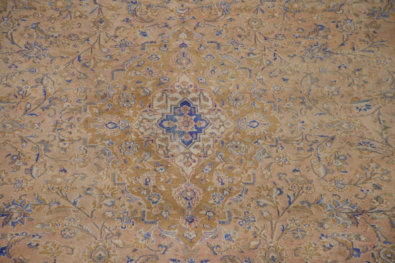 A Beautiful Genuine Persia ( Persia ) Kashan rug is Hand Knotted by skillful weavers in Persia ( Persia ) with 100% Wool Material. This rug is in Very Good (Evenly Low Pile-Worn) condition. dimensions are 12' 7'' X 9' 6'' in foot and 384 X 290 in centimeter. the primary color is Pink.