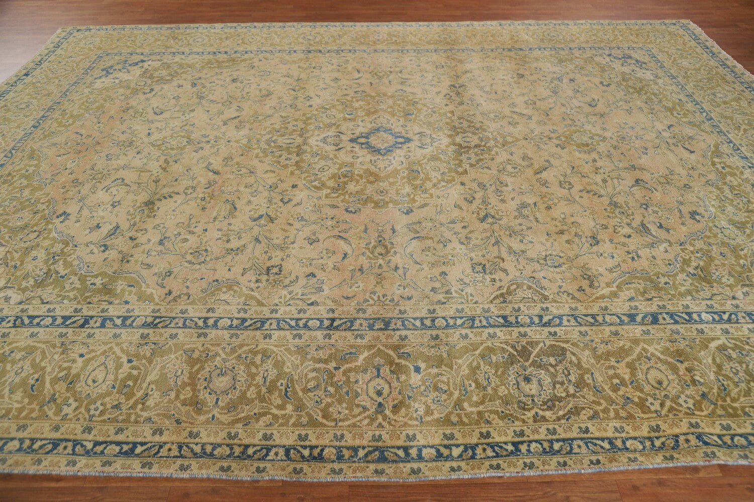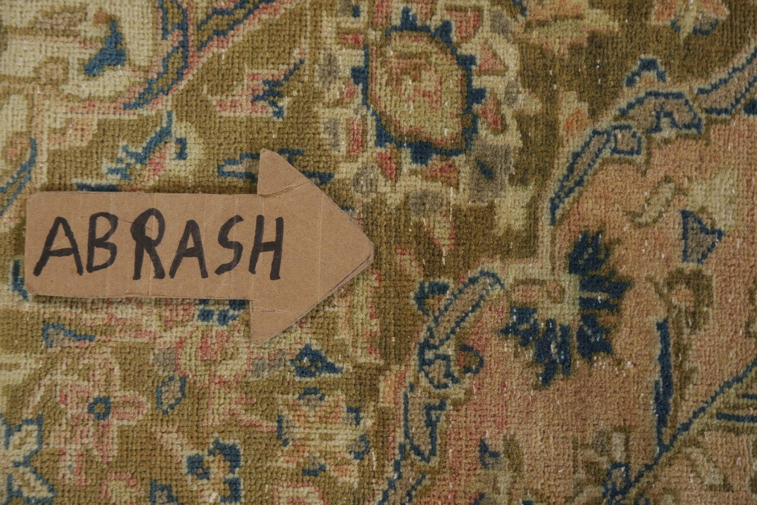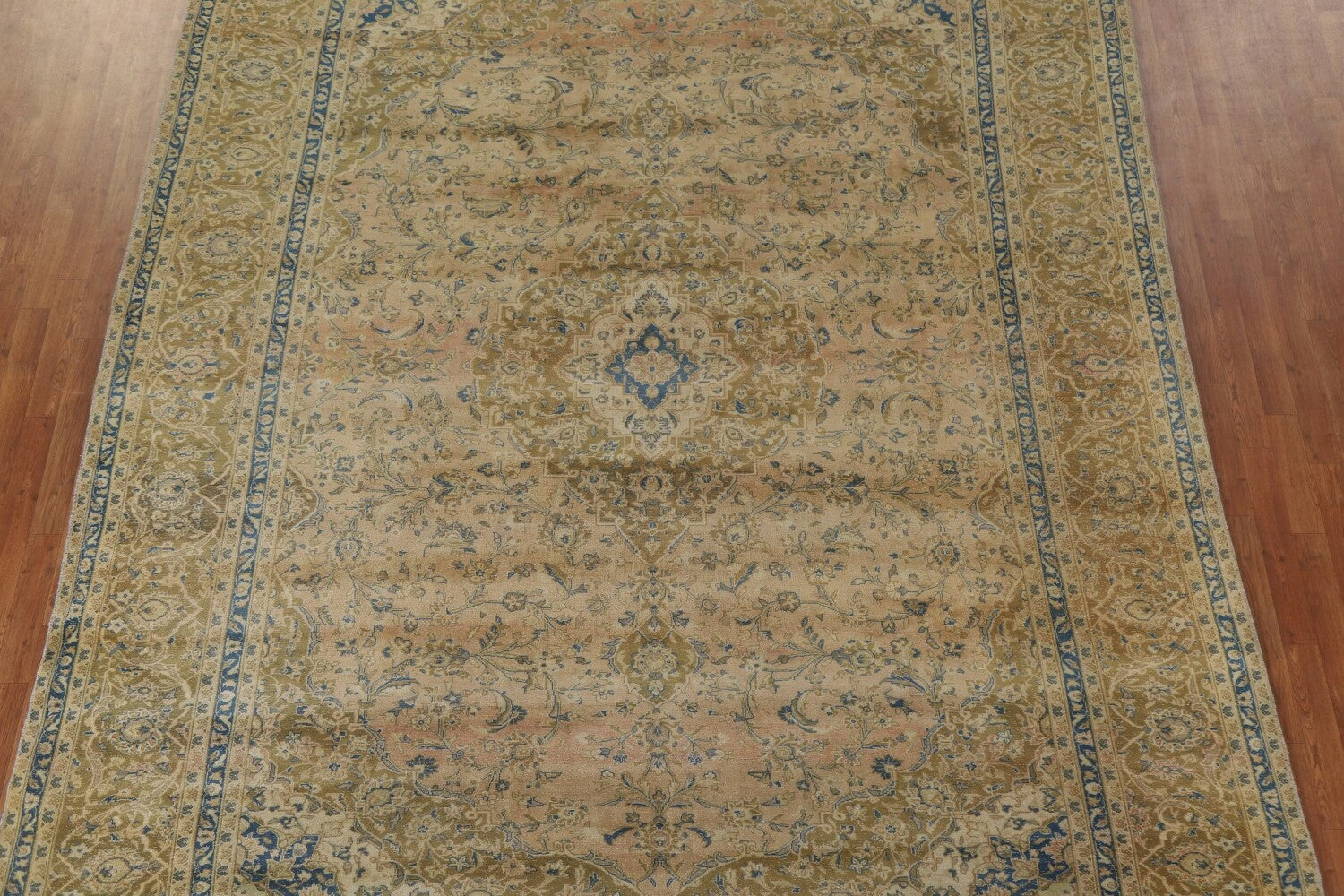 A Beautiful Genuine Persia ( Persia ) Kashan rug is Hand Knotted by skillful weavers in Persia ( Persia ) with 100% Wool Material. This rug is in Very Good (Evenly Low Pile-Abrash) condition. dimensions are 12' 8'' X 9' 9'' in foot and 386 X 297 in centimeter. the primary color is Peach.