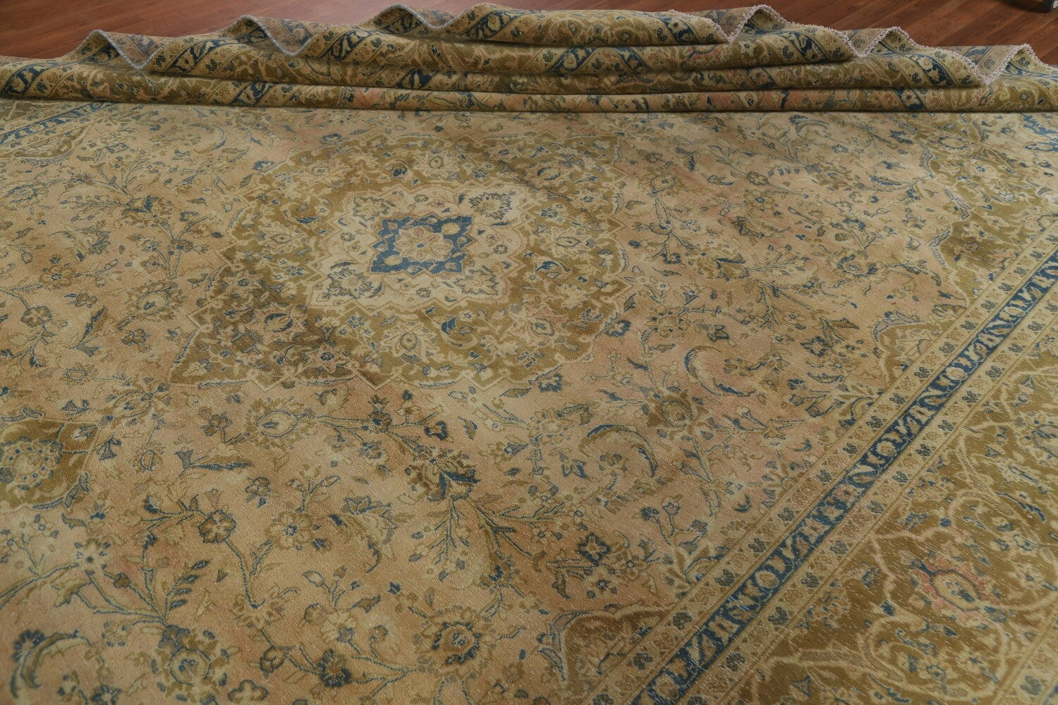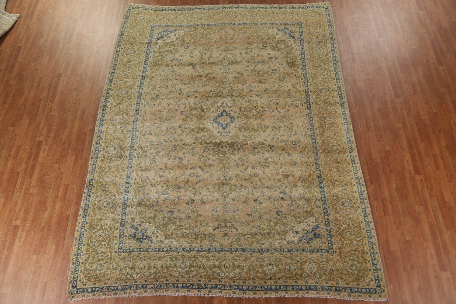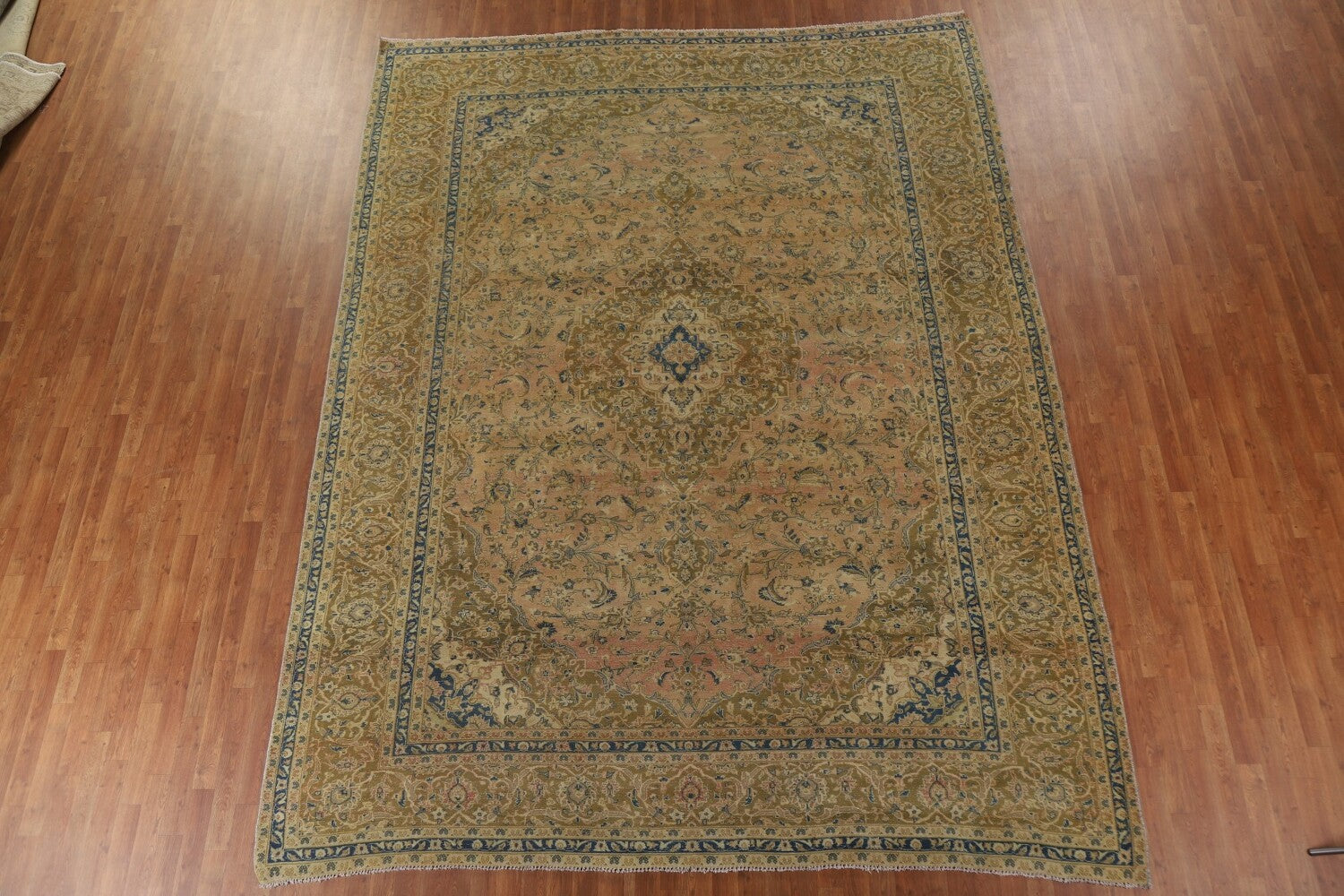 A Beautiful Genuine Persia ( Persia ) Kashan rug is Hand Knotted by skillful weavers in Persia ( Persia ) with 100% Wool Material. This rug is in Very Good (Evenly Low Pile-Abrash) condition. dimensions are 12' 8'' X 9' 9'' in foot and 386 X 297 in centimeter. the primary color is Peach.