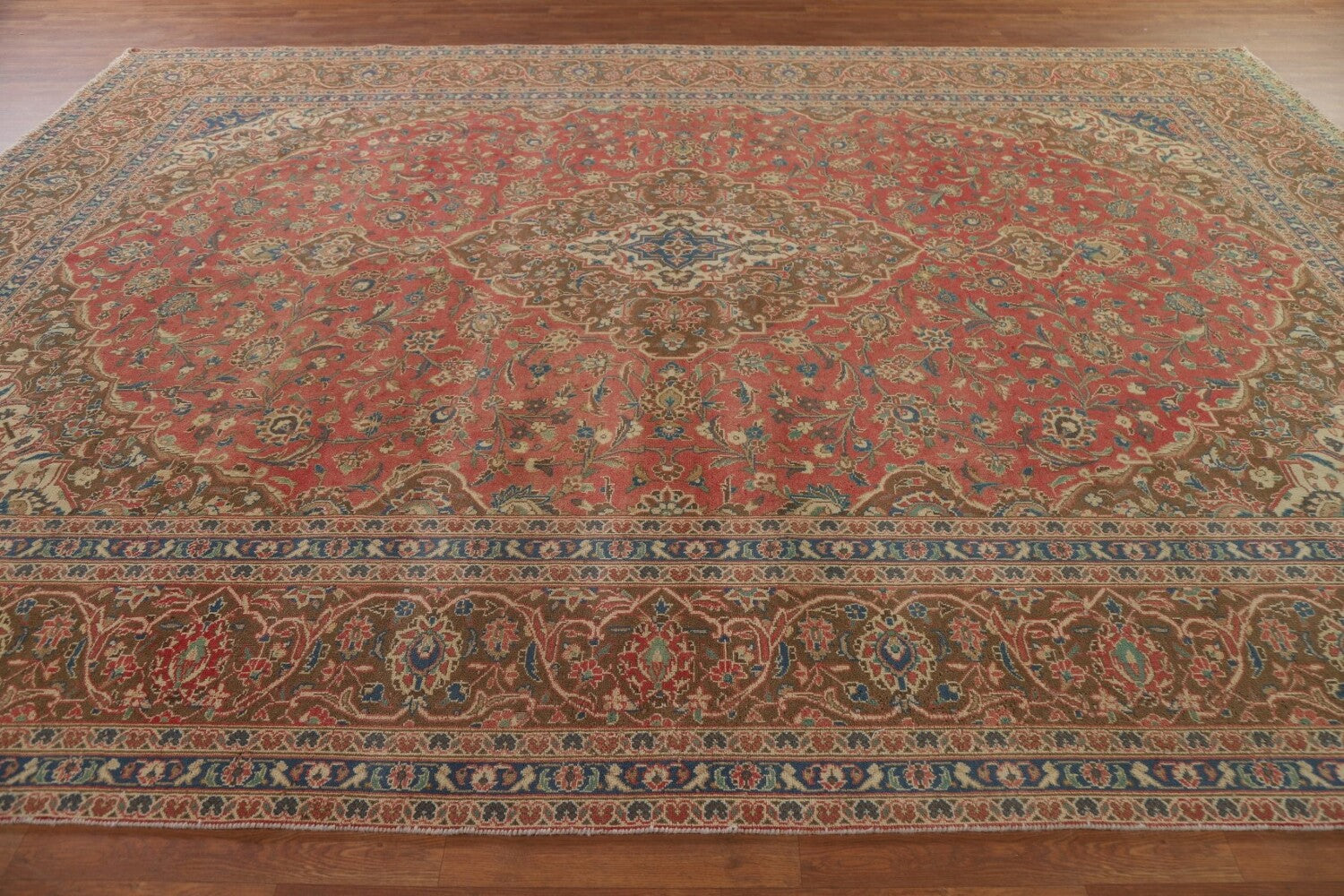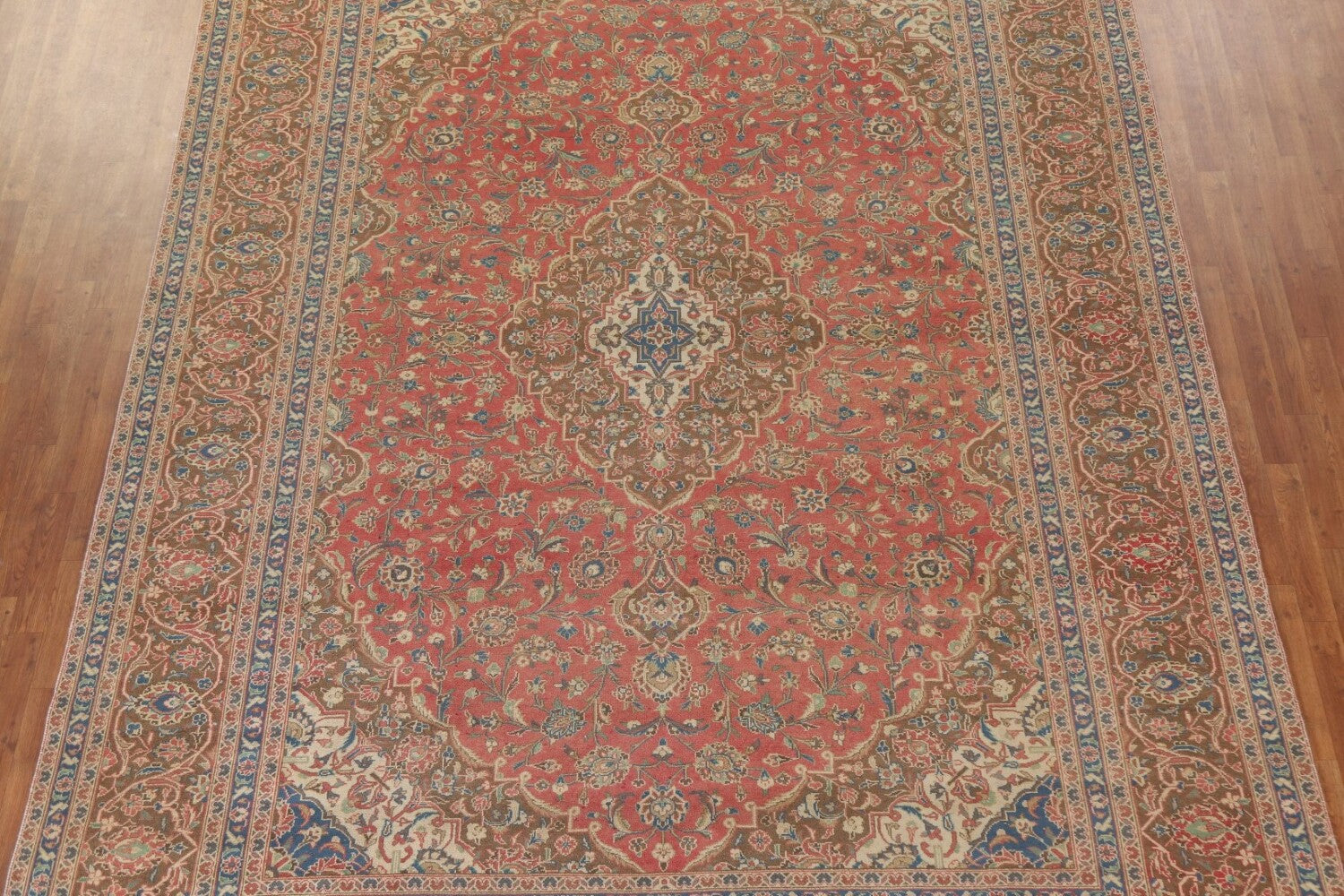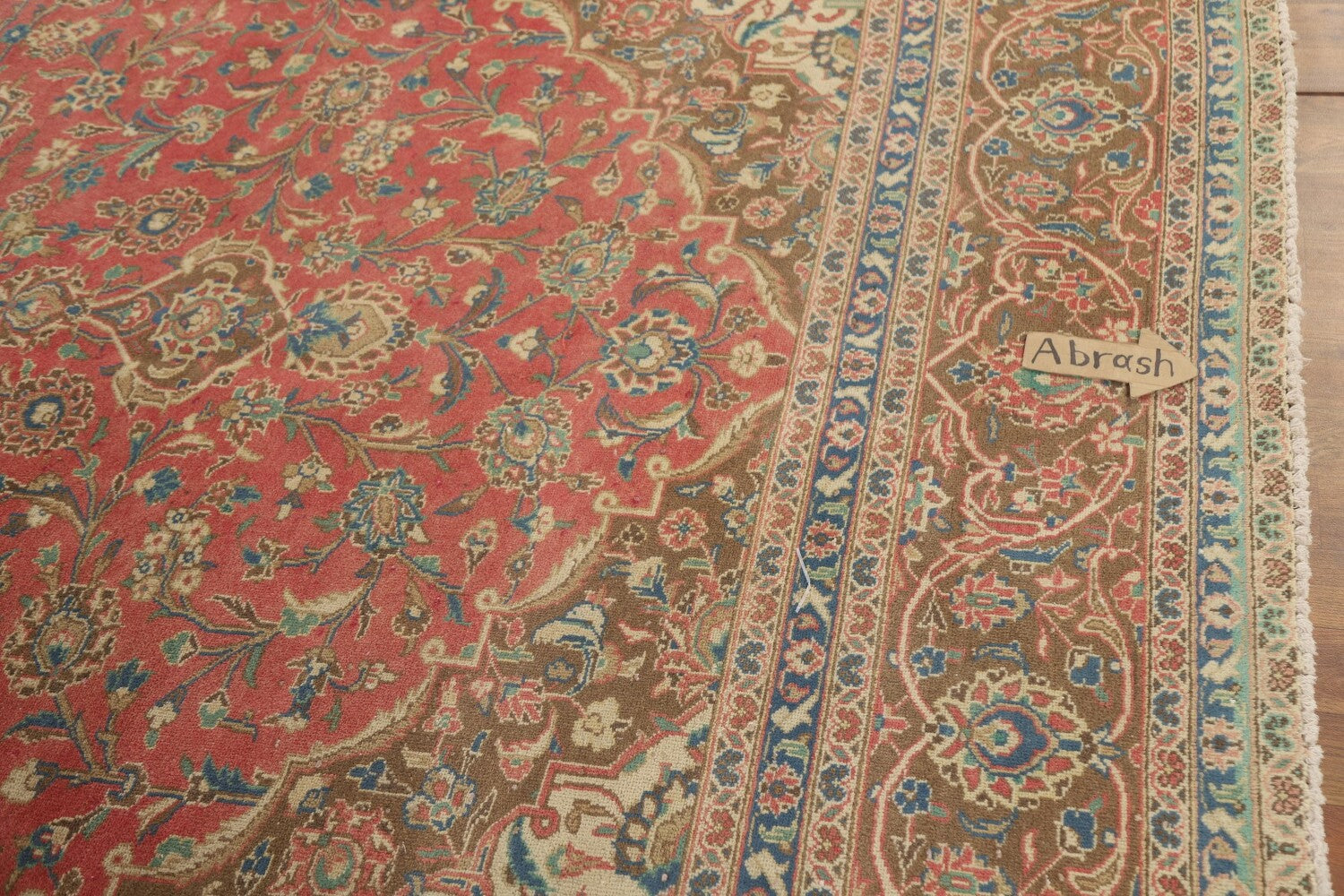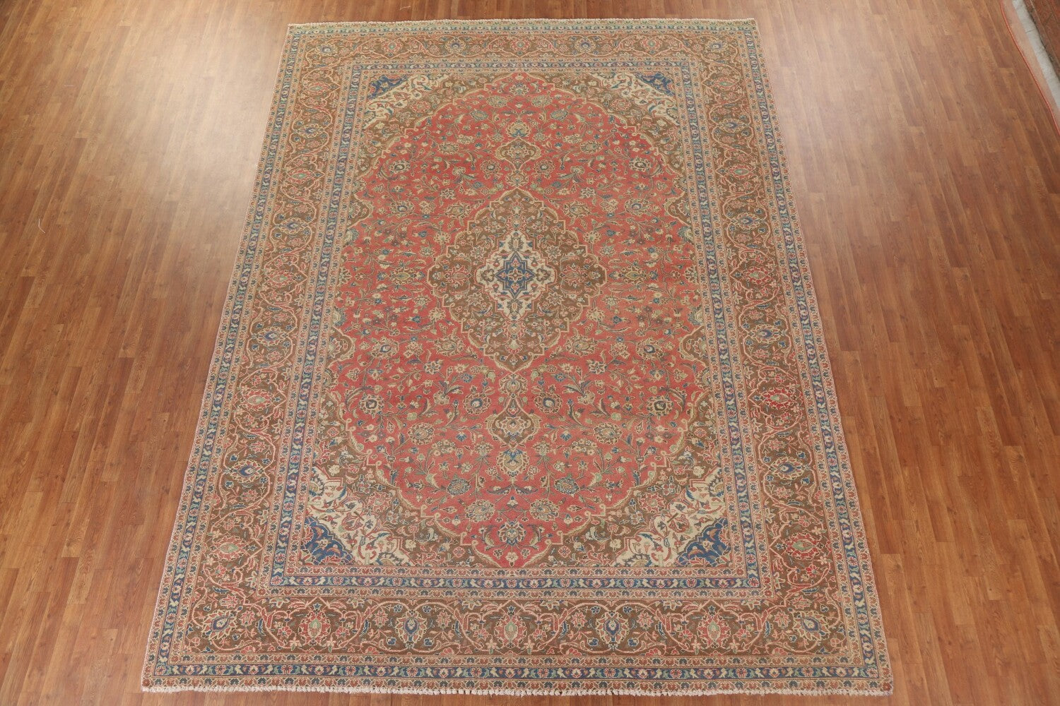 A Beautiful Genuine Persia ( Persia ) Kashan rug is Hand Knotted by skillful weavers in Persia ( Persia ) with 100% Wool Material. This rug is in Very Good (Missing Pile- Abrash) condition. dimensions are 13' 1'' X 9' 9'' in foot and 399 X 297 in centimeter. the primary color is Pink.