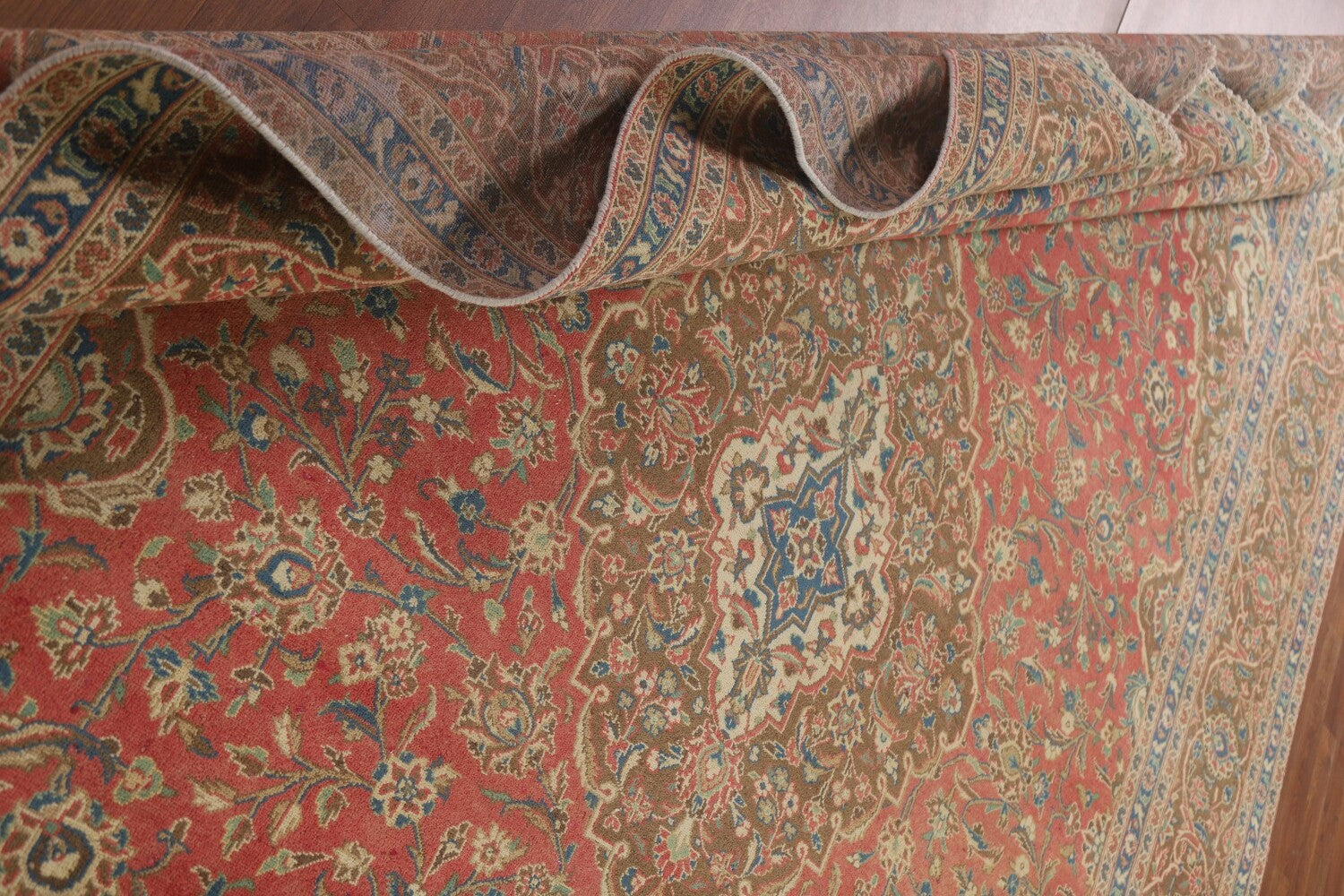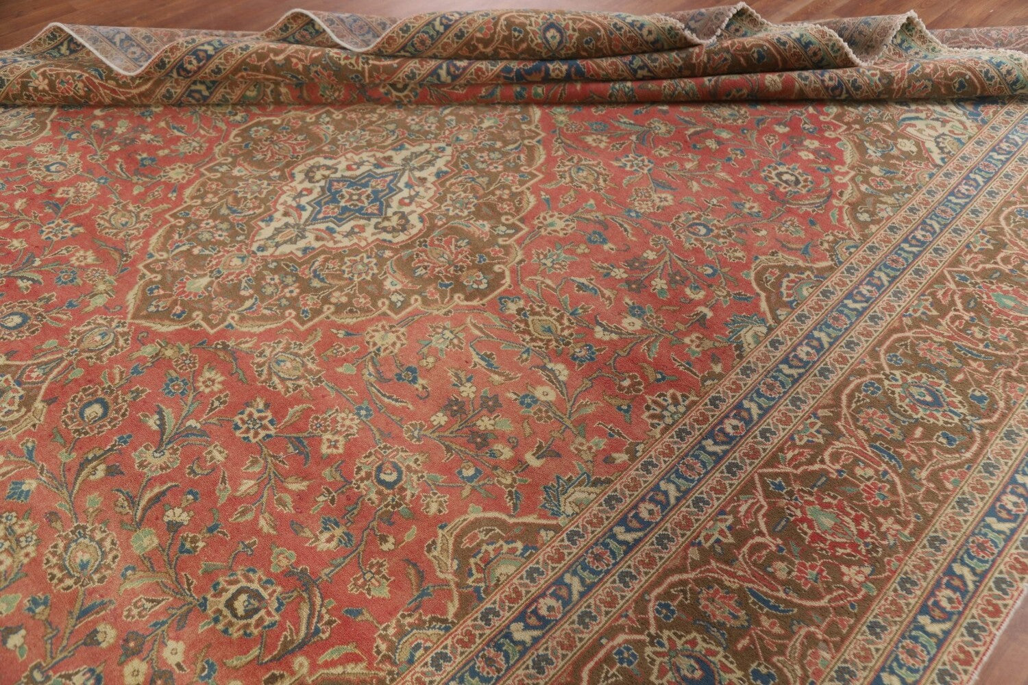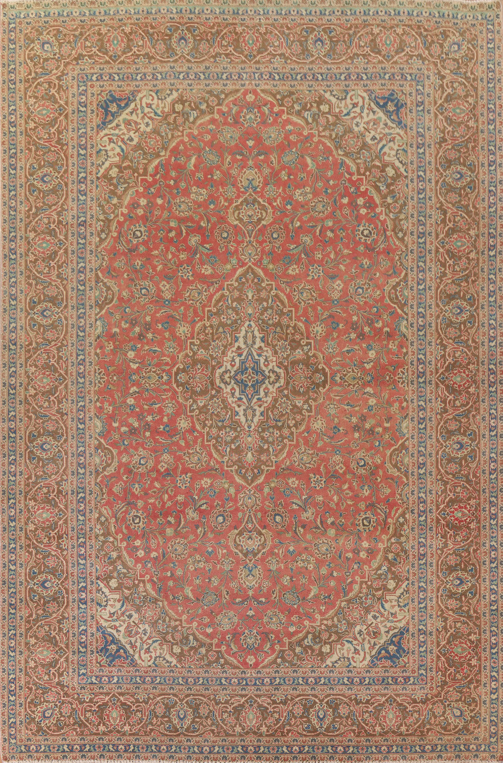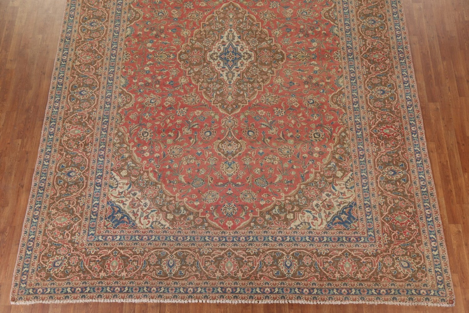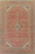 A Beautiful Genuine Persia ( Persia ) Kashan rug is Hand Knotted by skillful weavers in Persia ( Persia ) with 100% Wool Material. This rug is in Very Good (Missing Pile- Abrash) condition. dimensions are 13' 1'' X 9' 9'' in foot and 399 X 297 in centimeter. the primary color is Pink.