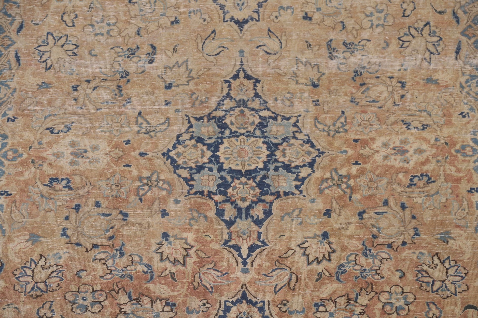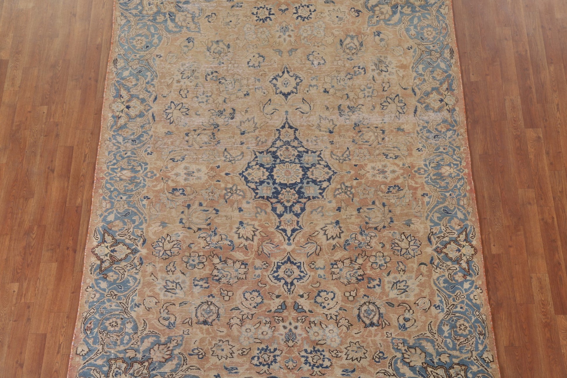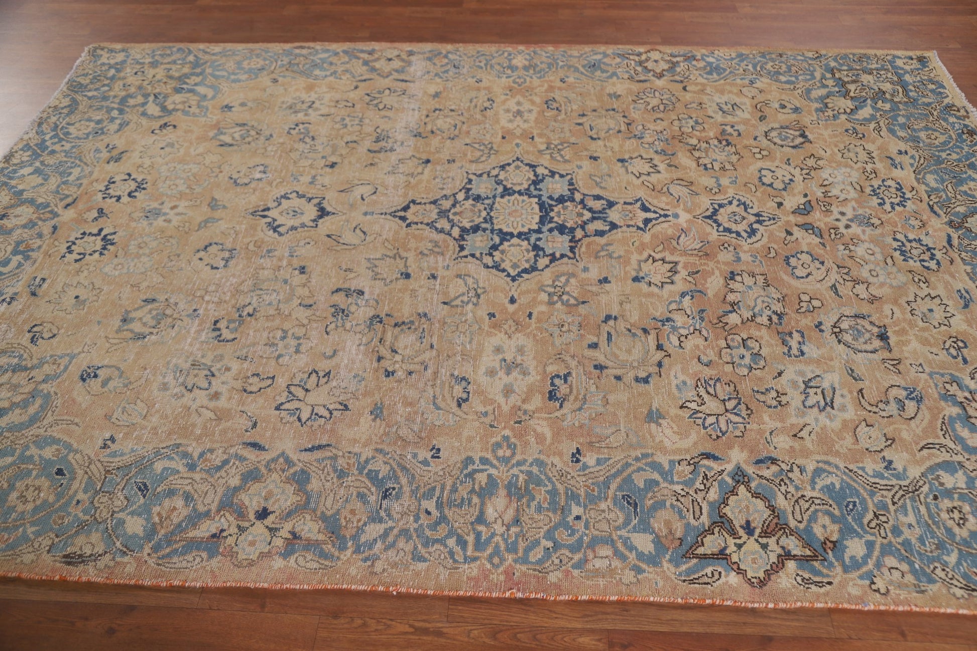 A Beautiful Genuine Persia ( Persia ) Kashan rug is Hand Knotted by skillful weavers in Persia ( Persia ) with 100% Wool Material. This rug is in Very Good (Evenly Low Pile) condition. dimensions are 8' 11'' X 6' 5'' in foot and 272 X 196 in centimeter. the primary color is Oranges & Rust.