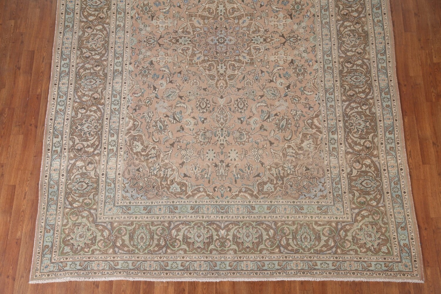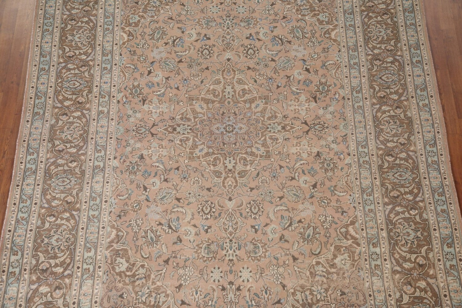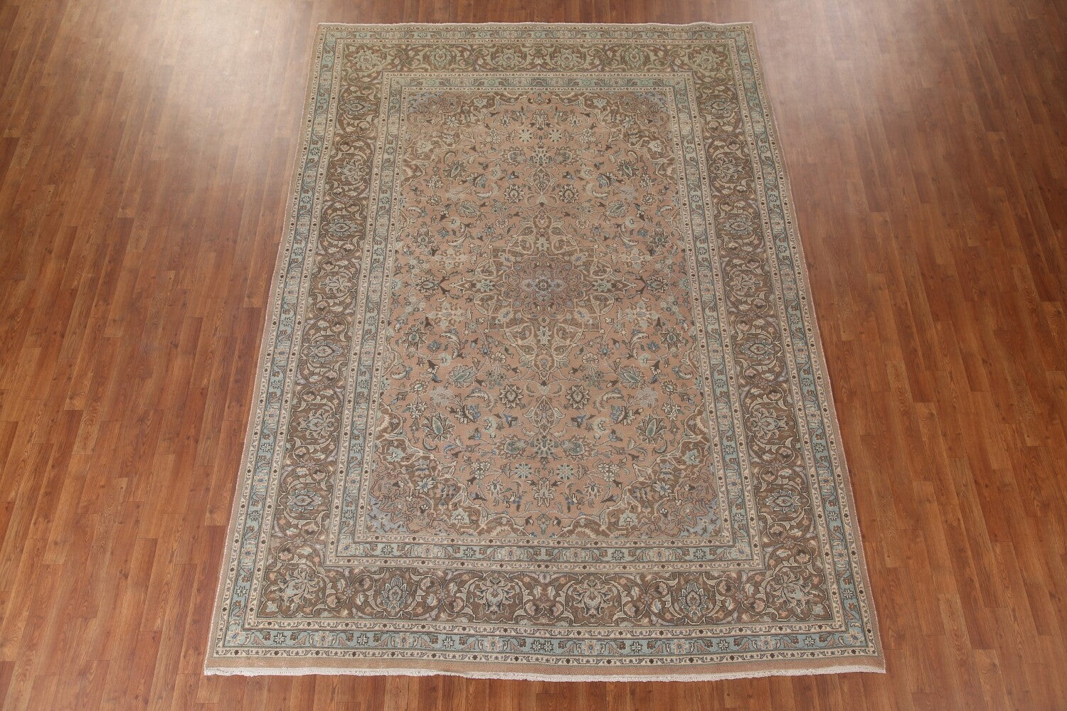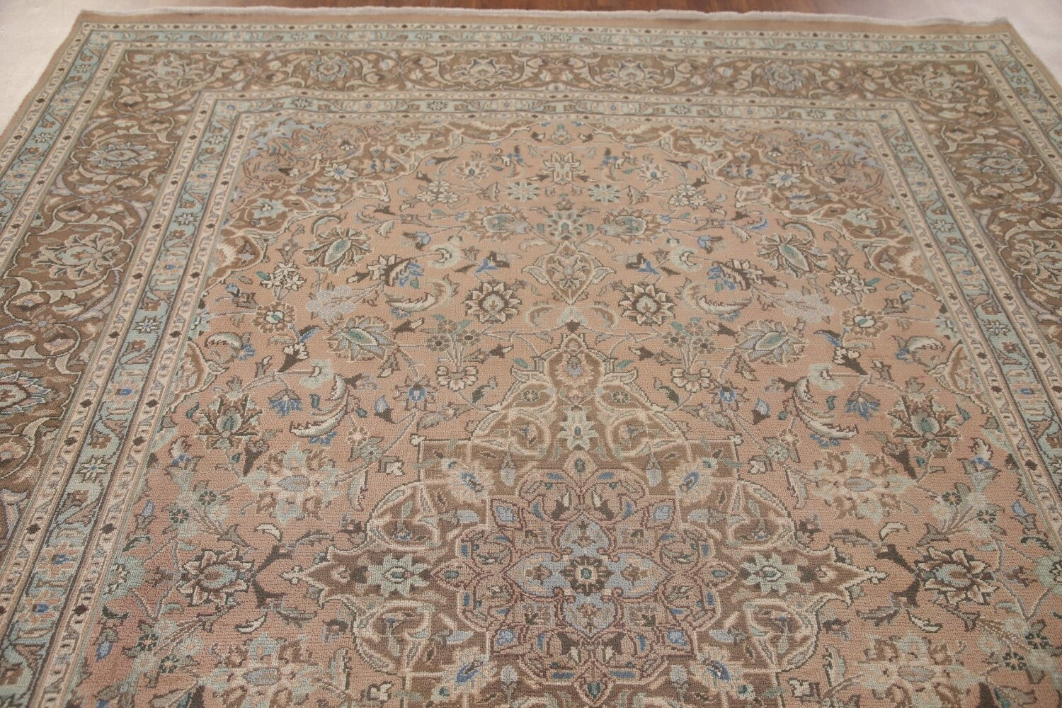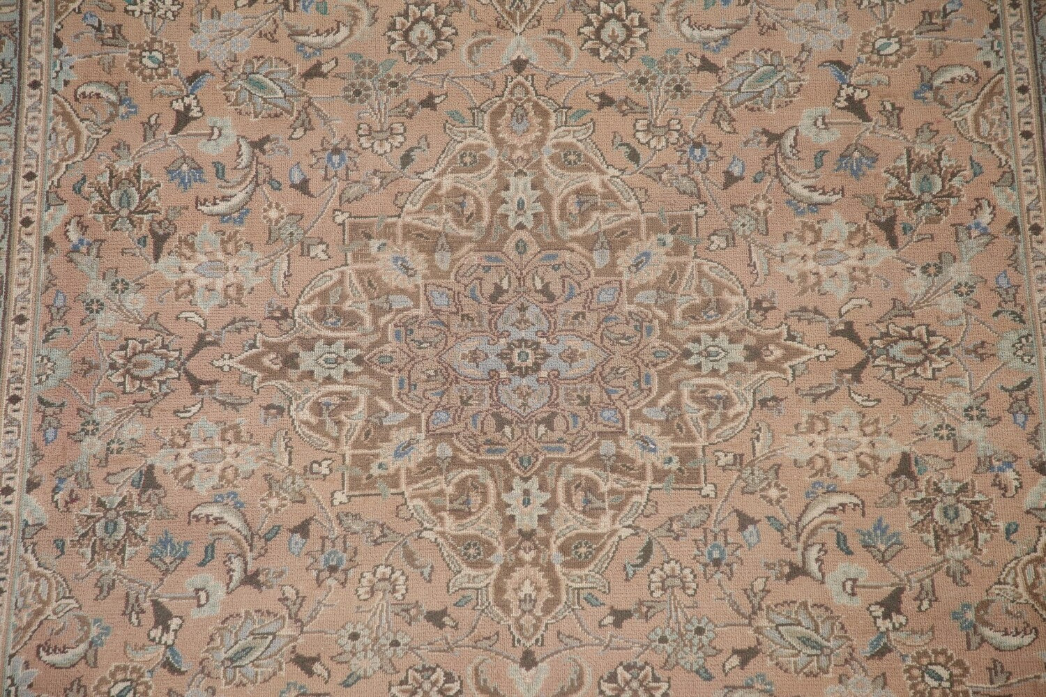 A Beautiful Genuine Persia ( Persia ) Kashan rug is Hand Knotted by skillful weavers in Persia ( Persia ) with 100% Wool Material. This rug is in Very Good (Low Pile) condition. dimensions are 11' 1'' X 7' 11'' in foot and 338 X 241 in centimeter. the primary color is Pink.