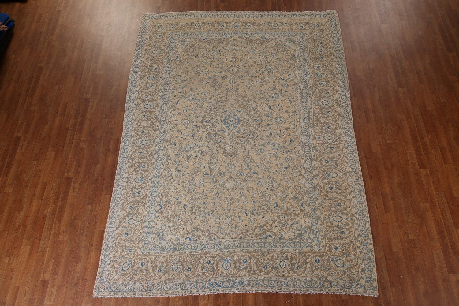 A Beautiful Genuine Persia ( Persia ) Kashan rug is Hand Knotted by skillful weavers in Persia ( Persia ) with 100% Wool Material. This rug is in Very Good (Abrash) condition. dimensions are 11' 4'' X 8' 1'' in foot and 345 X 246 in centimeter. the primary color is Peach.