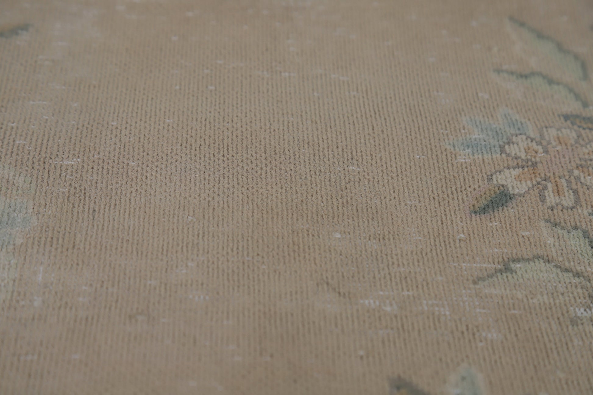 A Beautiful Genuine Persia ( Persia ) Kerman rug is Hand Knotted by skillful weavers in Persia ( Persia ) with 100% Wool Material. This rug is in Very Good (Evenly Low Pile) condition. dimensions are 14' 1'' X 10' 1'' in foot and 429 X 307 in centimeter. the primary color is Beige & Ivories.