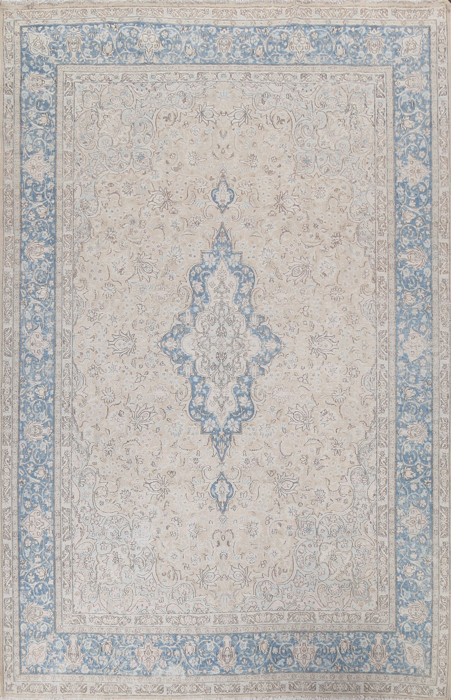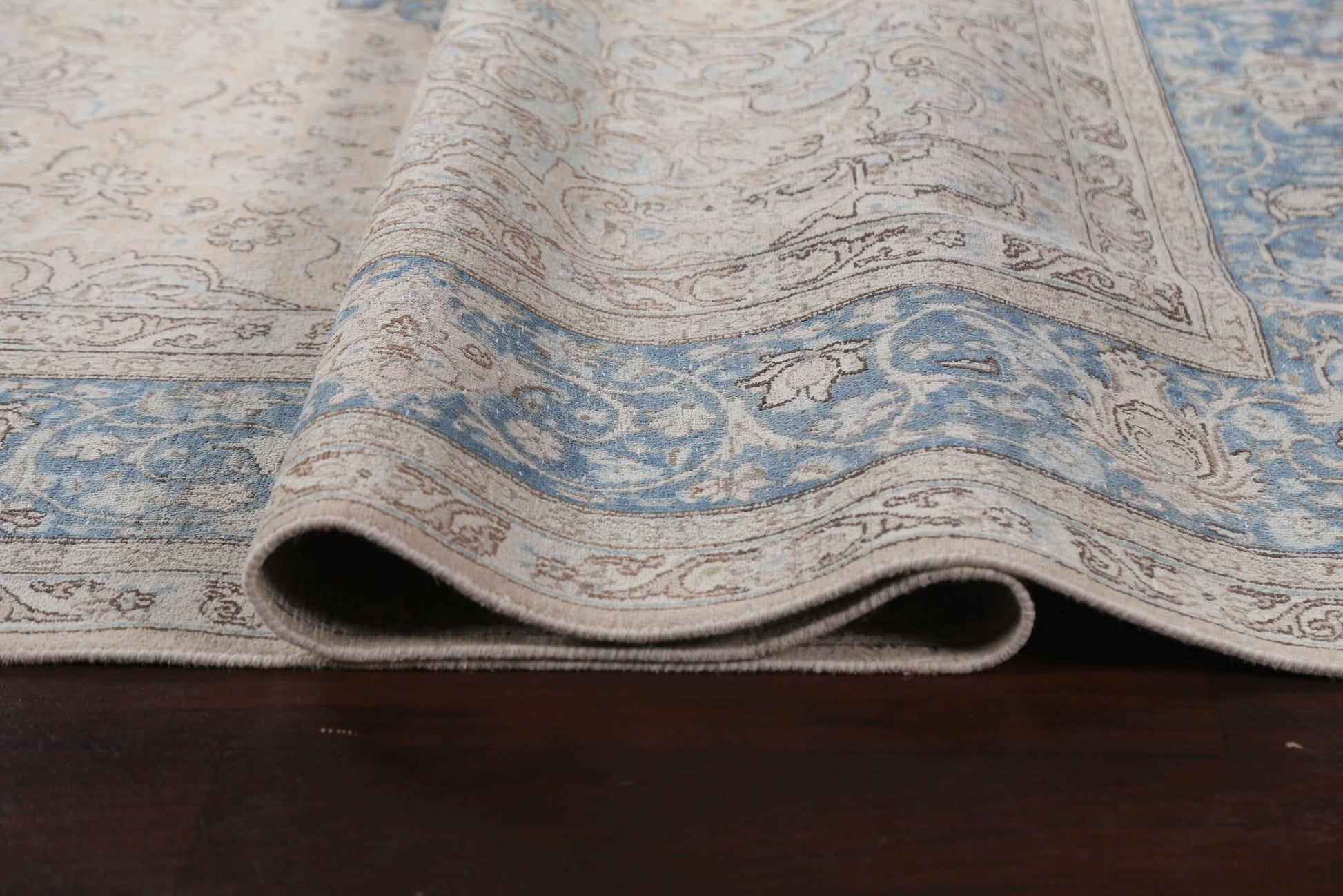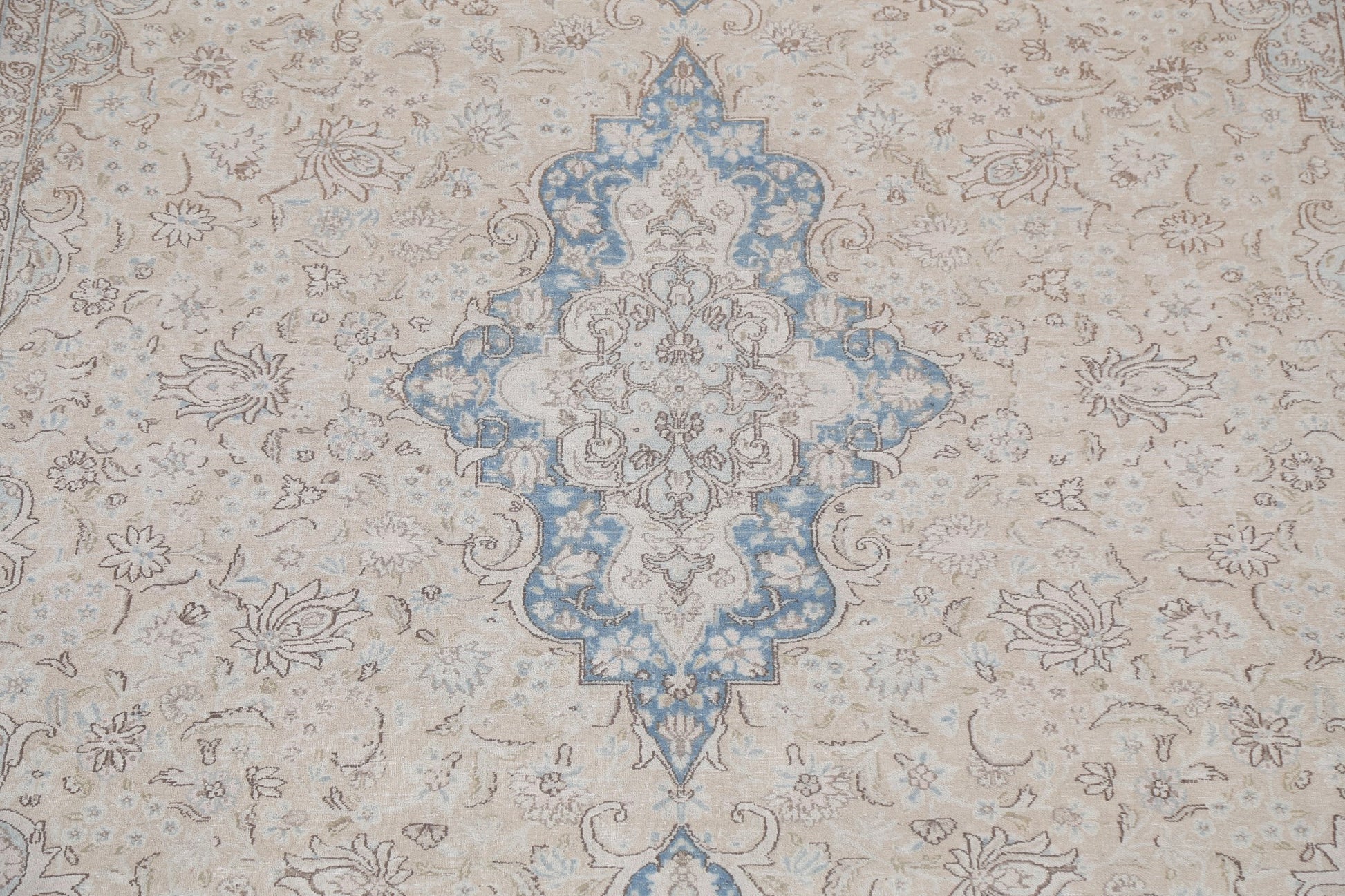 A Beautiful Genuine Persia ( Persia ) Kerman rug is Hand Knotted by skillful weavers in Persia ( Persia ) with 100% Wool Material. This rug is in Very Good (Evenly Low Pile) condition. dimensions are 11' 6'' X 8' 9'' in foot and 351 X 267 in centimeter. the primary color is Beige & Ivories.