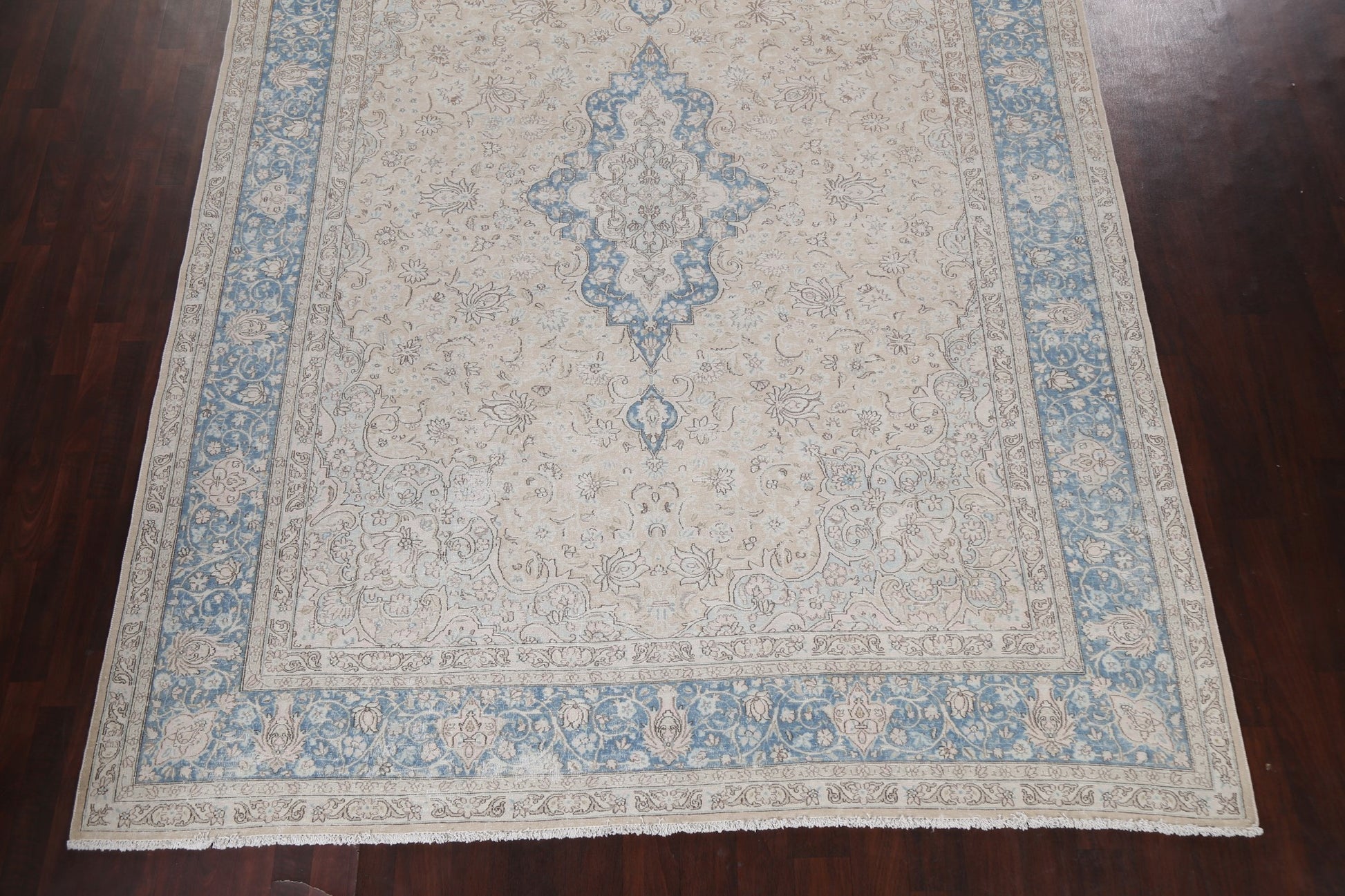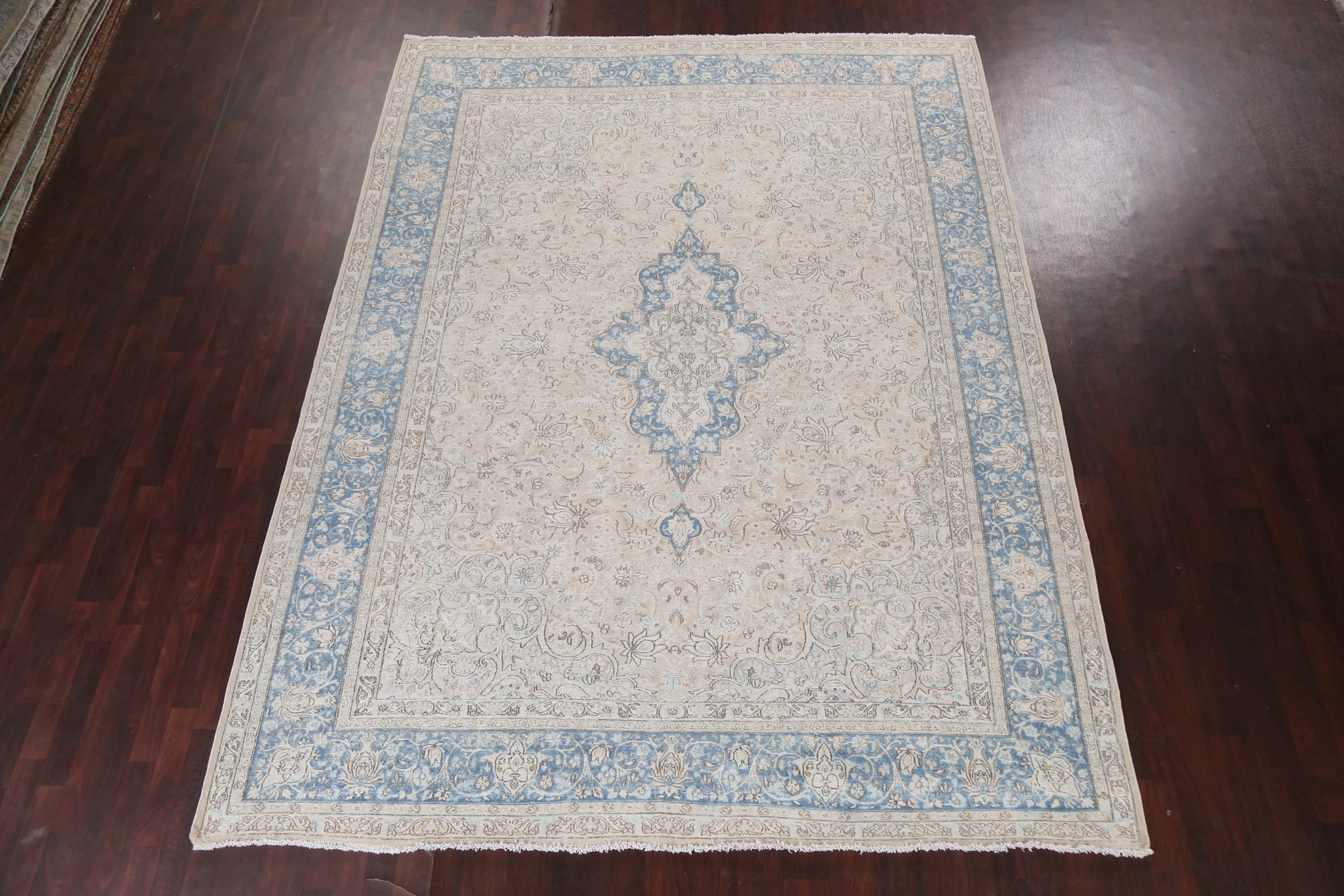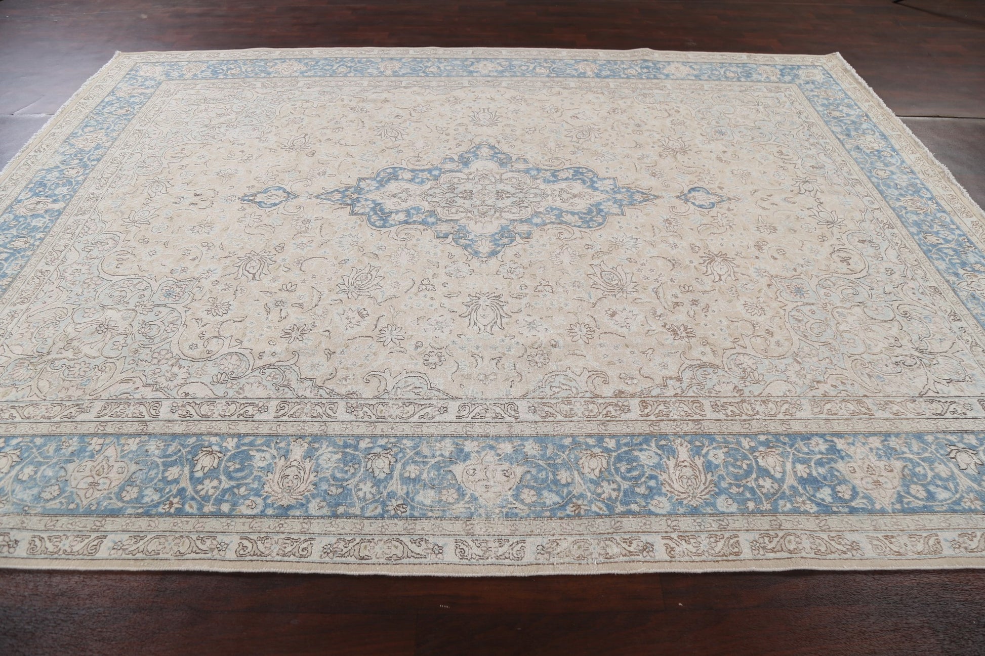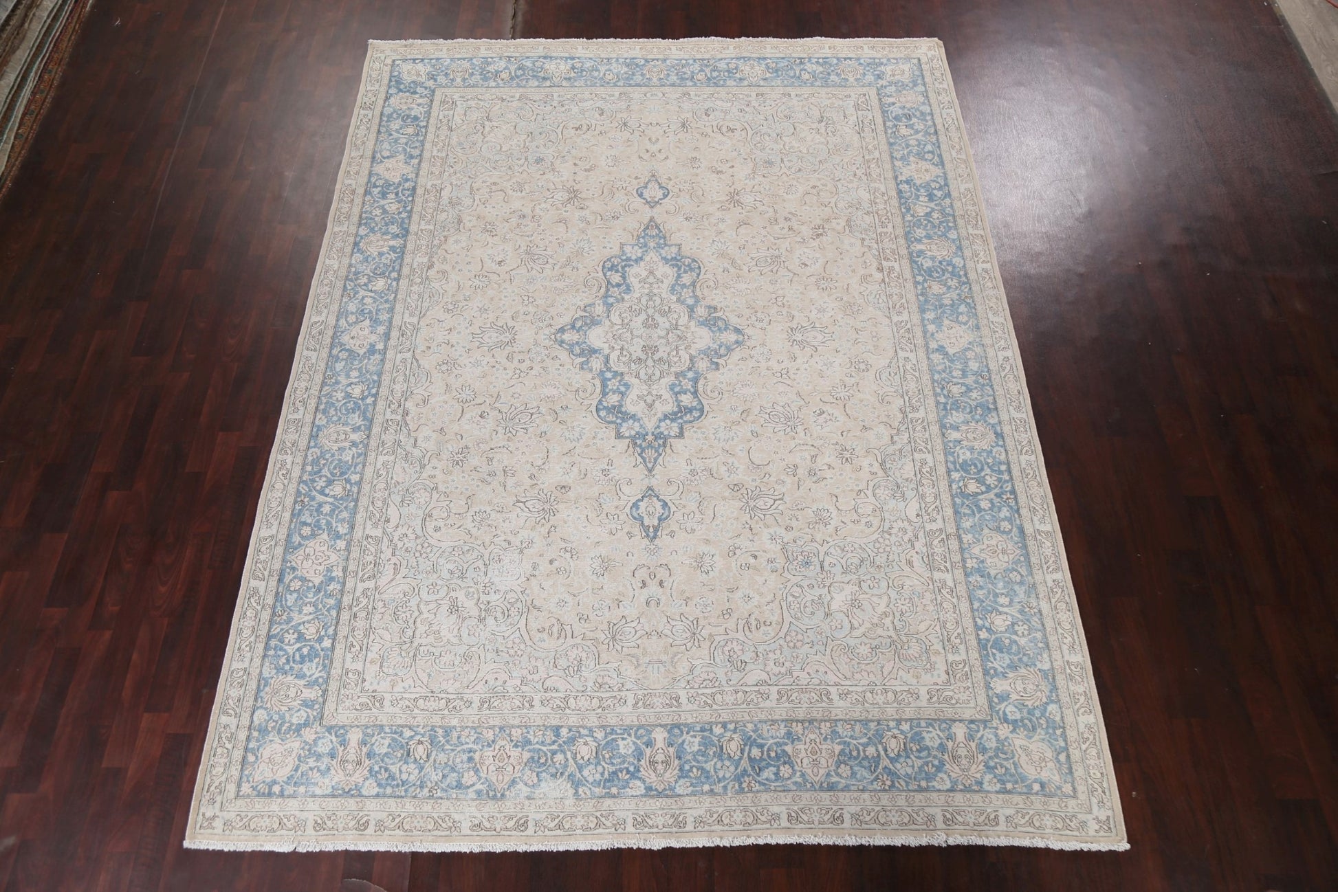 A Beautiful Genuine Persia ( Persia ) Kerman rug is Hand Knotted by skillful weavers in Persia ( Persia ) with 100% Wool Material. This rug is in Very Good (Evenly Low Pile) condition. dimensions are 11' 6'' X 8' 9'' in foot and 351 X 267 in centimeter. the primary color is Beige & Ivories.