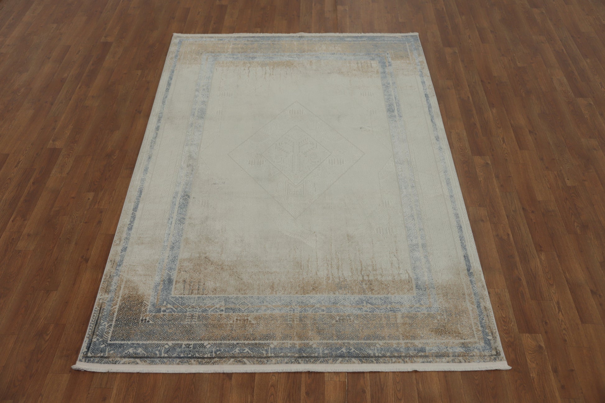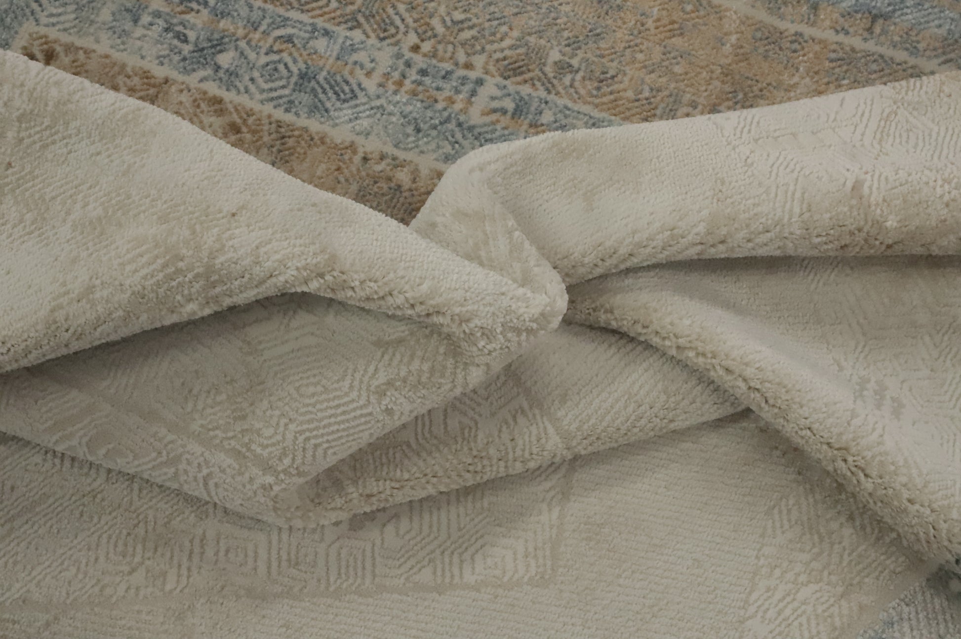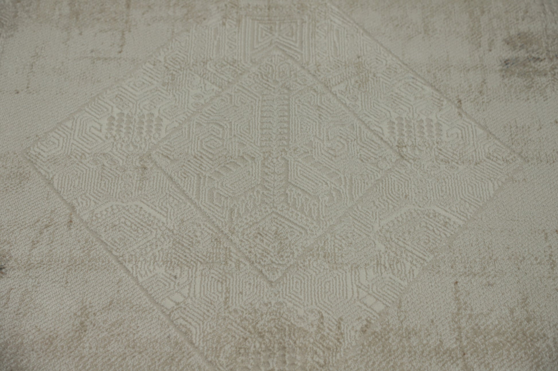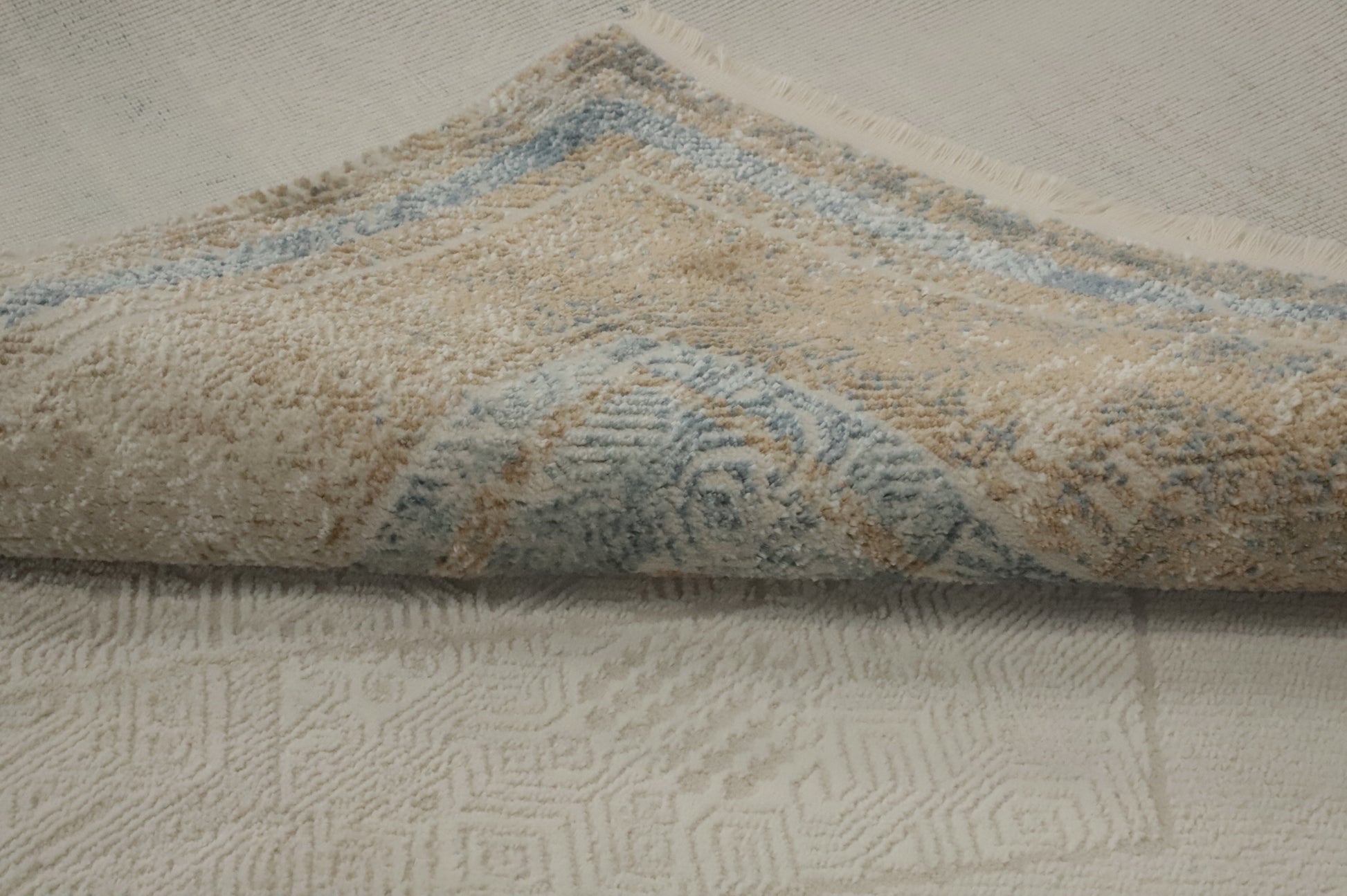 A Beautiful Genuine Turkey Tabriz rug is Machine Made by skillful weavers in Turkey with Polyester Material. This rug is in New, First Quality condition. dimensions are 7' 5'' X 5' 2'' in foot and 226 X 157 in centimeter. the primary color is Beige & Ivories.