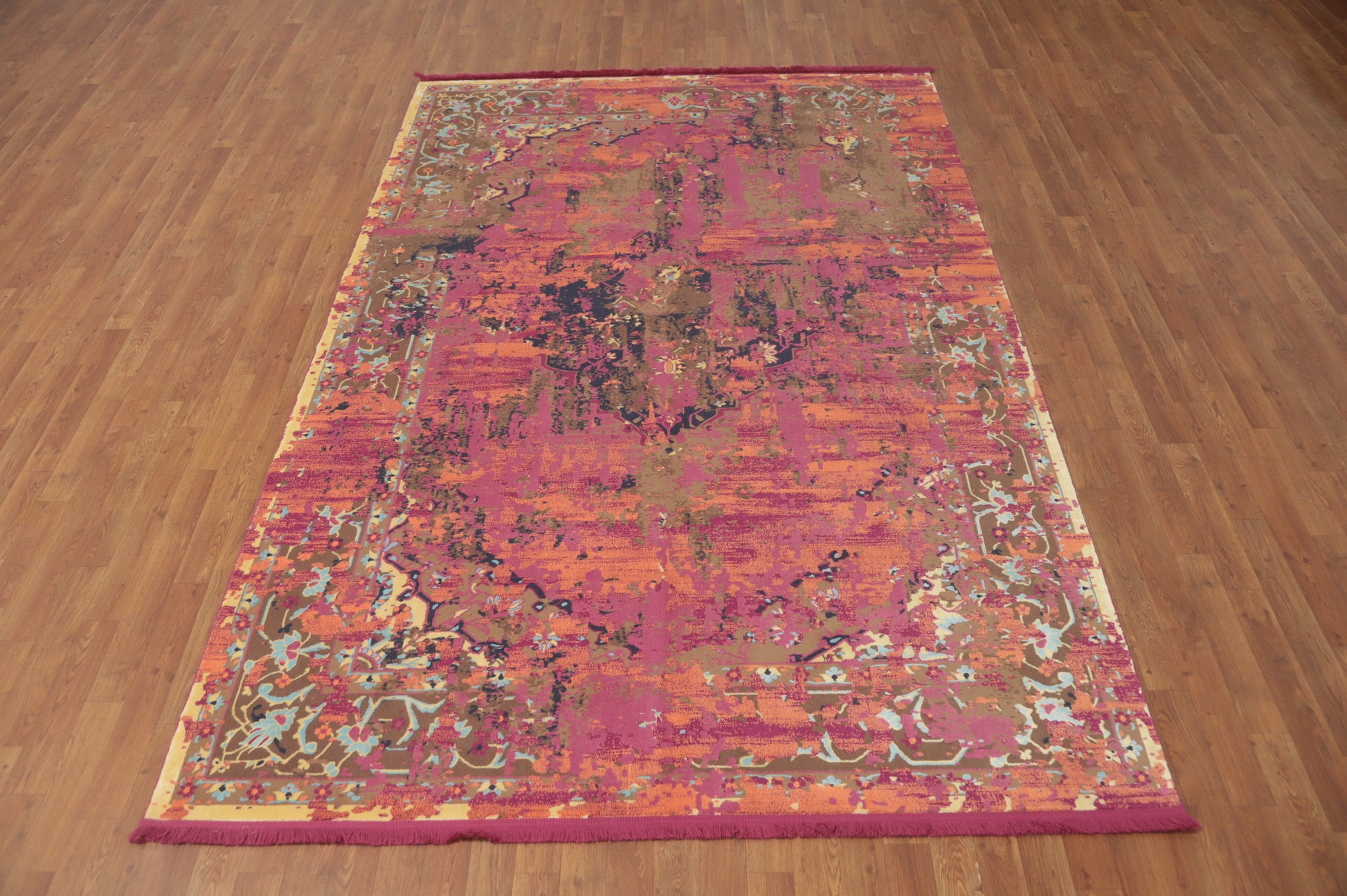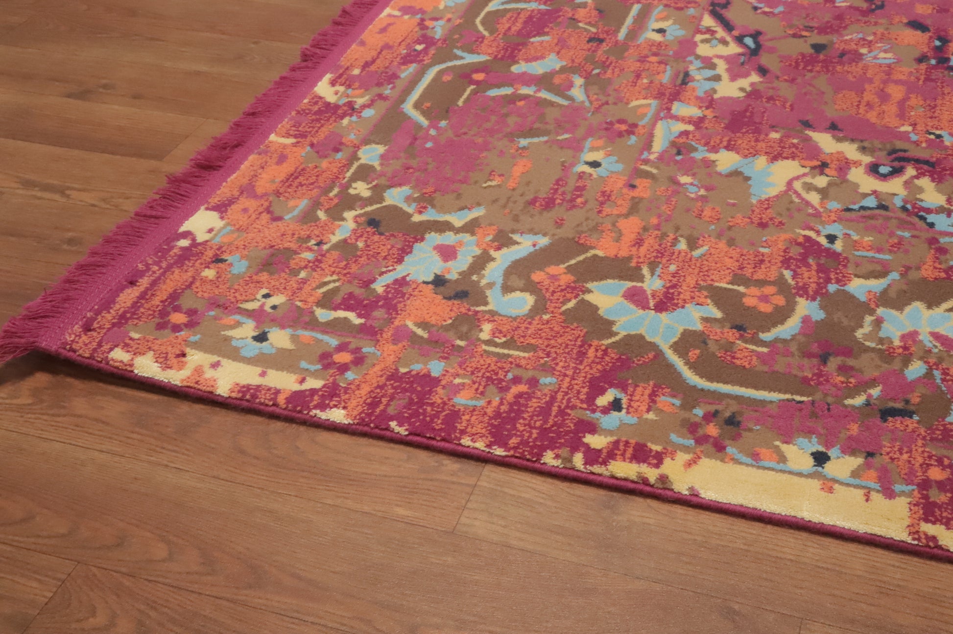 A Beautiful Genuine Turkey Heriz rug is Machine Made by skillful weavers in Turkey with 100% Wool Material. This rug is in New, First Quality condition. dimensions are 9' 5'' X 6' 5'' in foot and 287 X 196 in centimeter. the primary color is Pink.