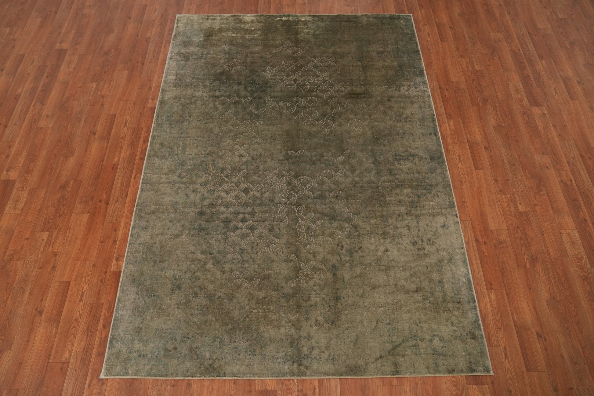 A Beautiful Genuine Turkey Distressed rug is Machine Made by skillful weavers in Turkey with Polyester Material. This rug is in New, First Quality condition. dimensions are 7' 5'' X 5' 2'' in foot and 226 X 157 in centimeter. the primary color is Green.