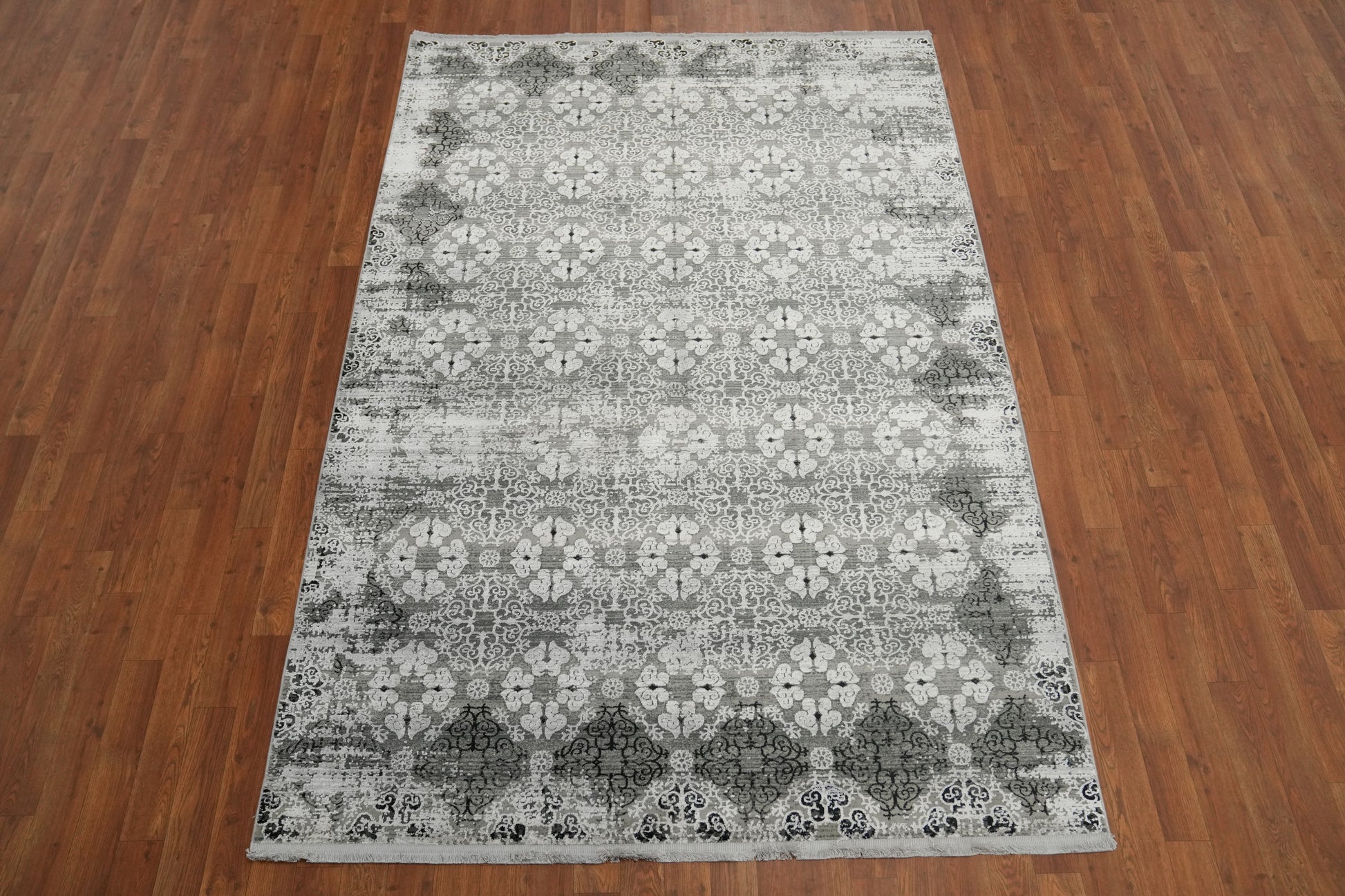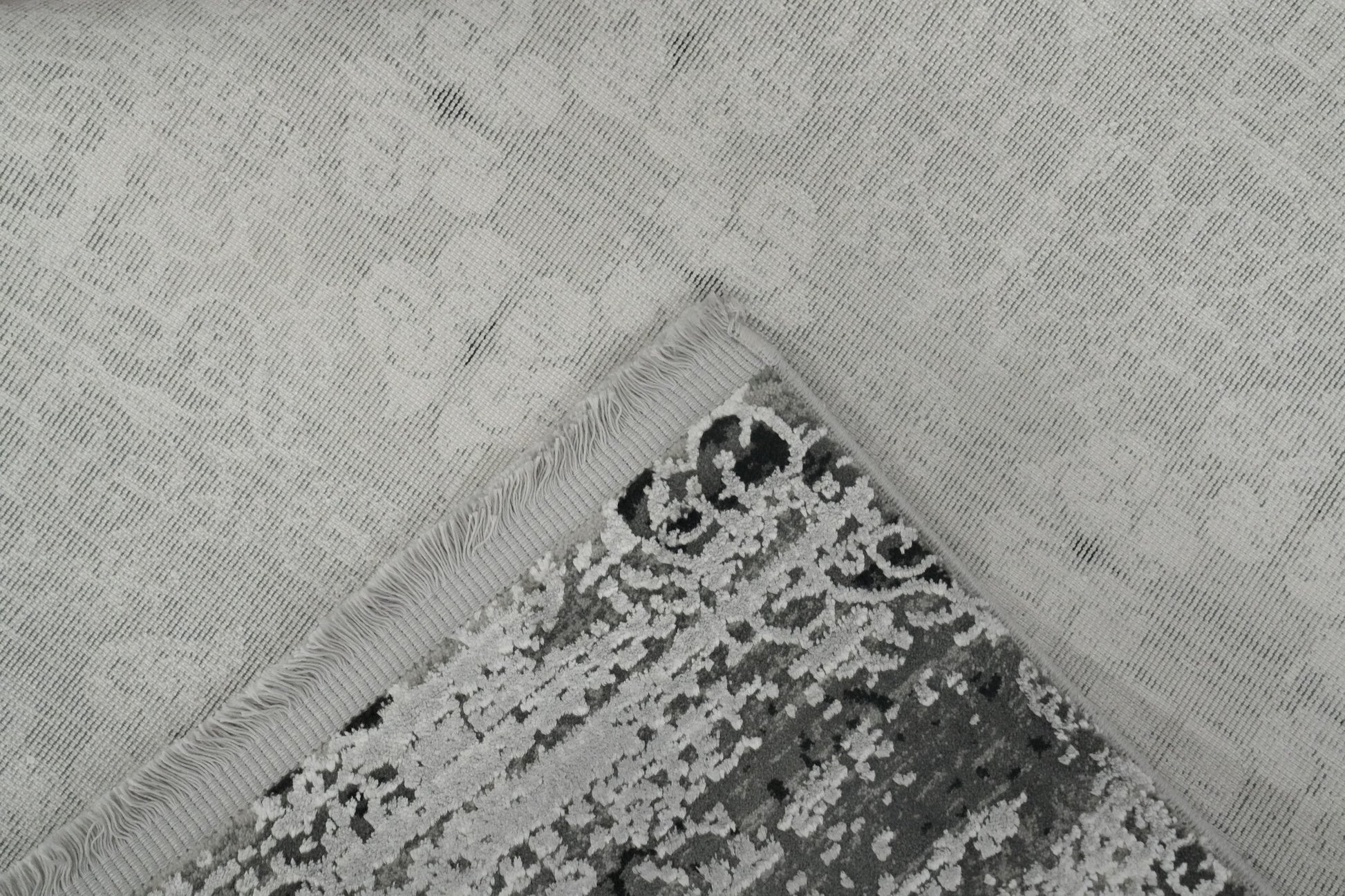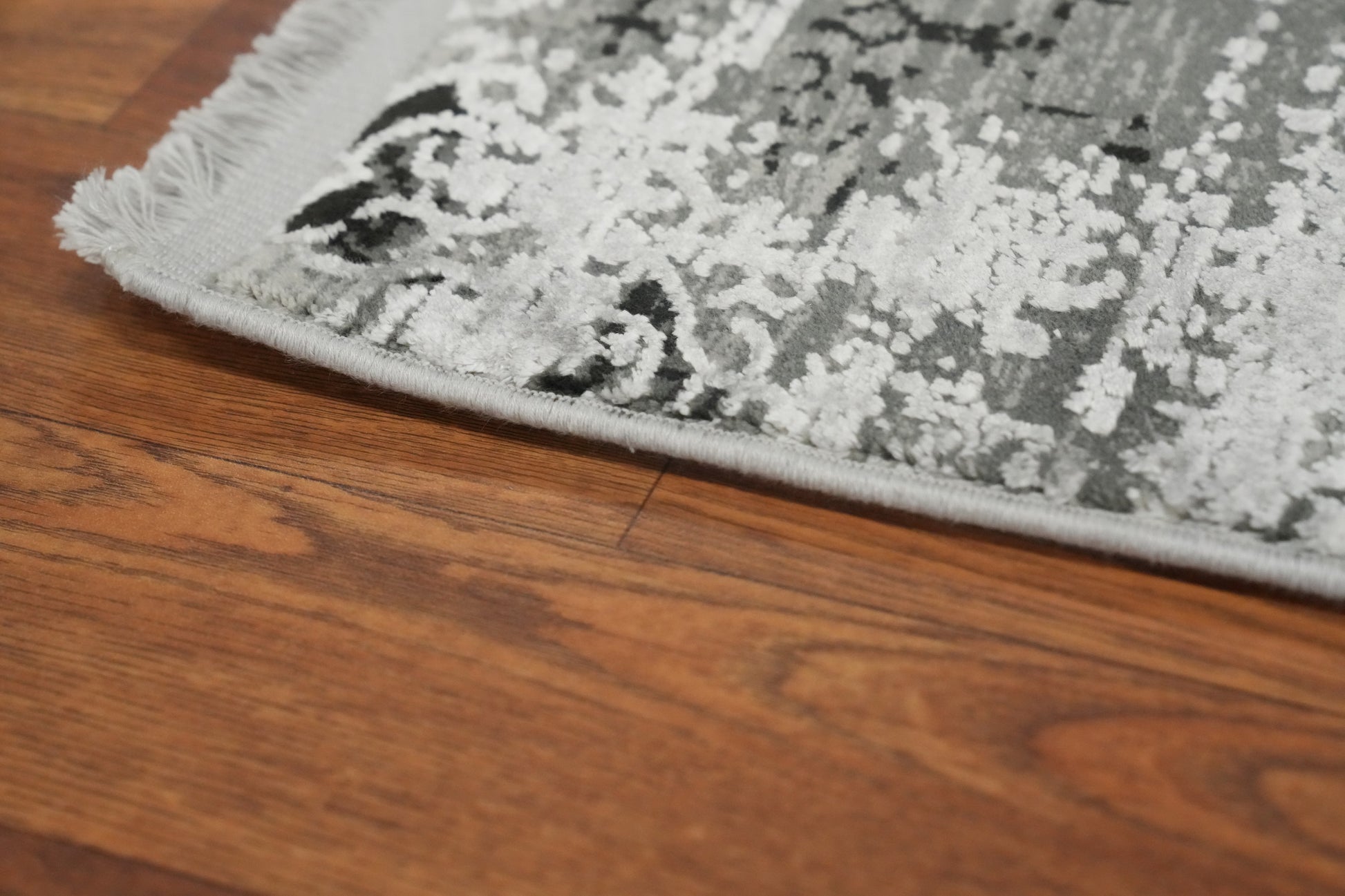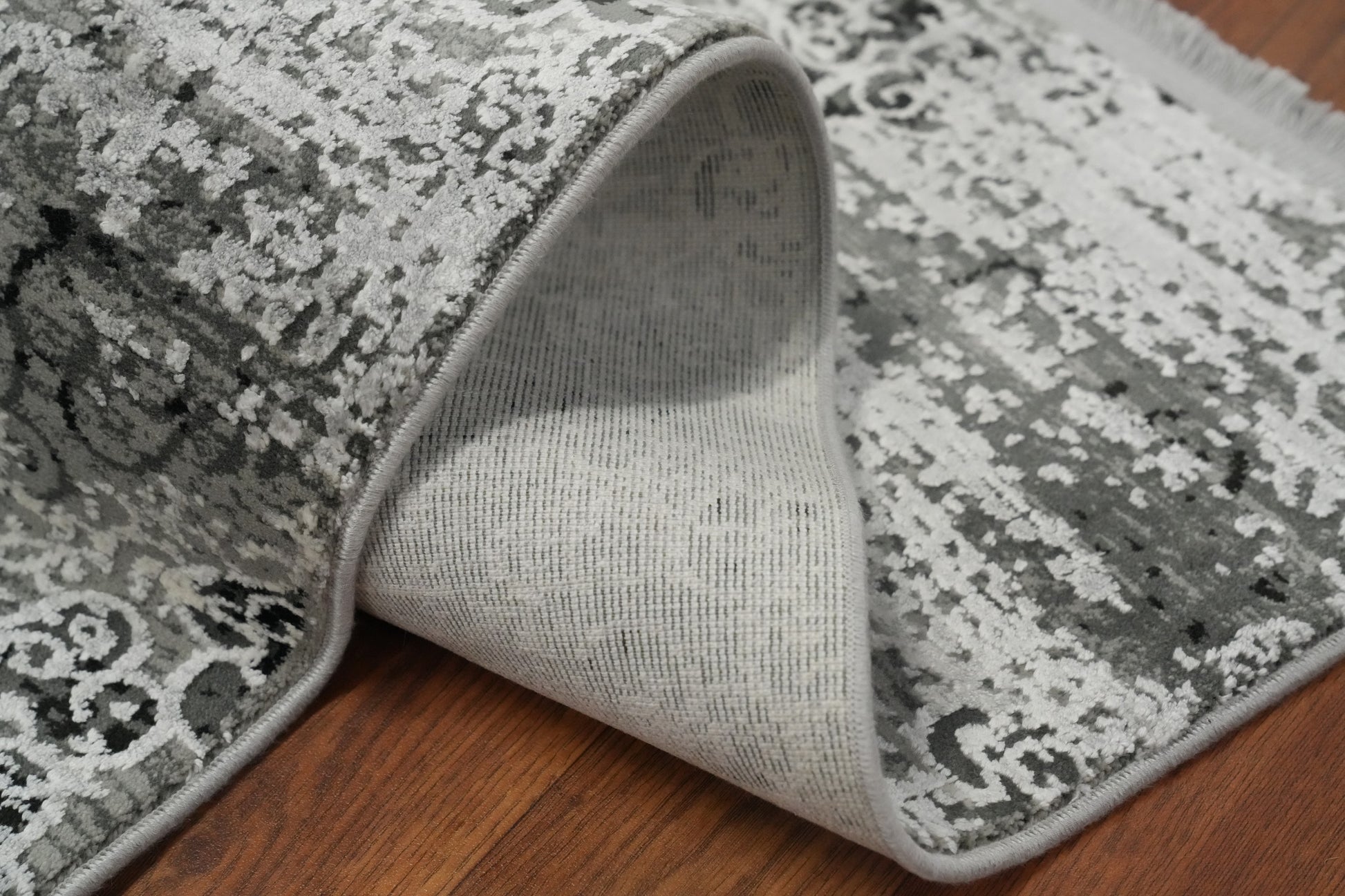 A Beautiful Genuine Turkey Distressed rug is Machine Made by skillful weavers in Turkey with Polyester Material. This rug is in New, First Quality condition. dimensions are 7' 5'' X 5' 2'' in foot and 226 X 157 in centimeter. the primary color is Greys & Charcoal.