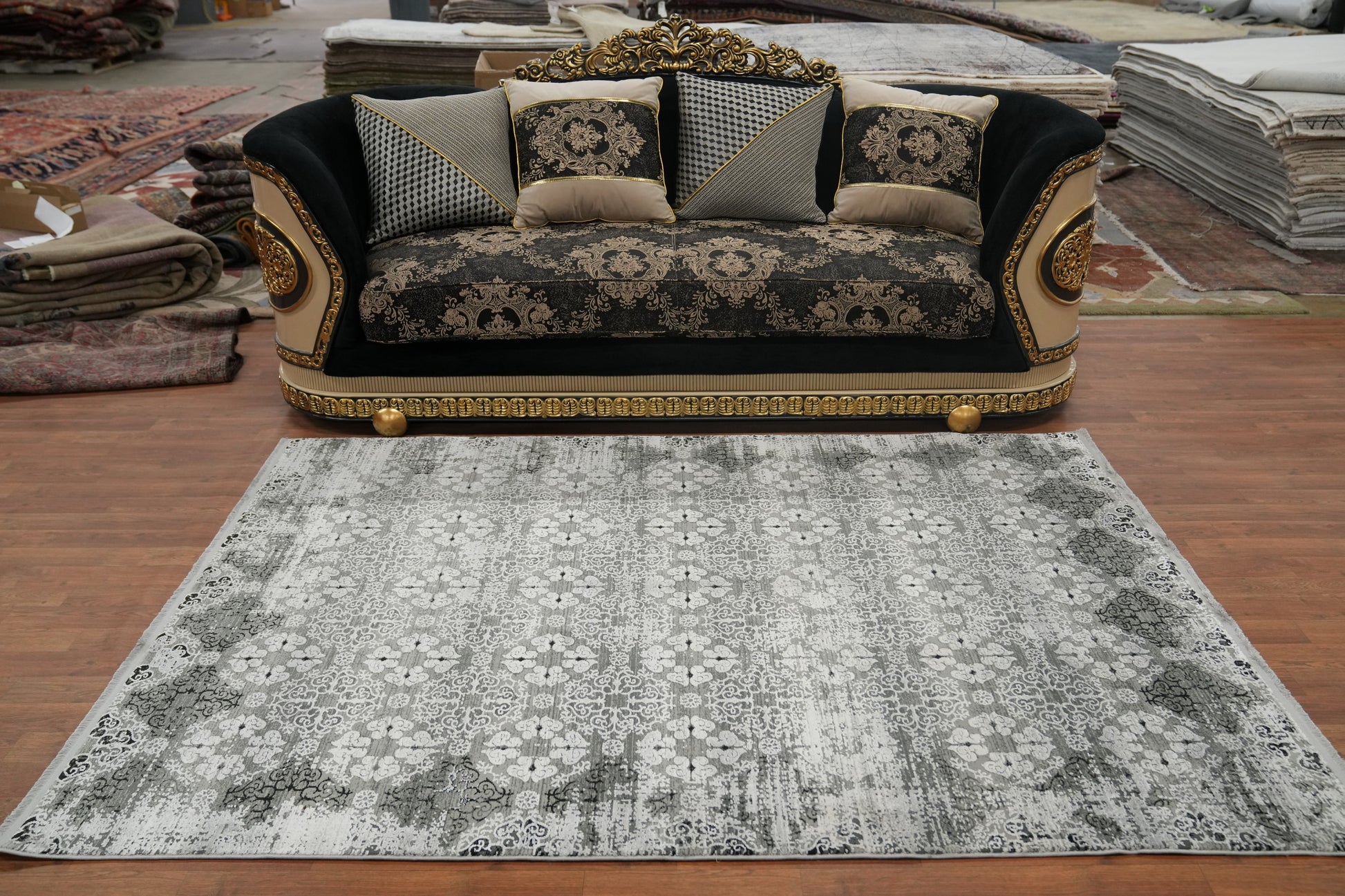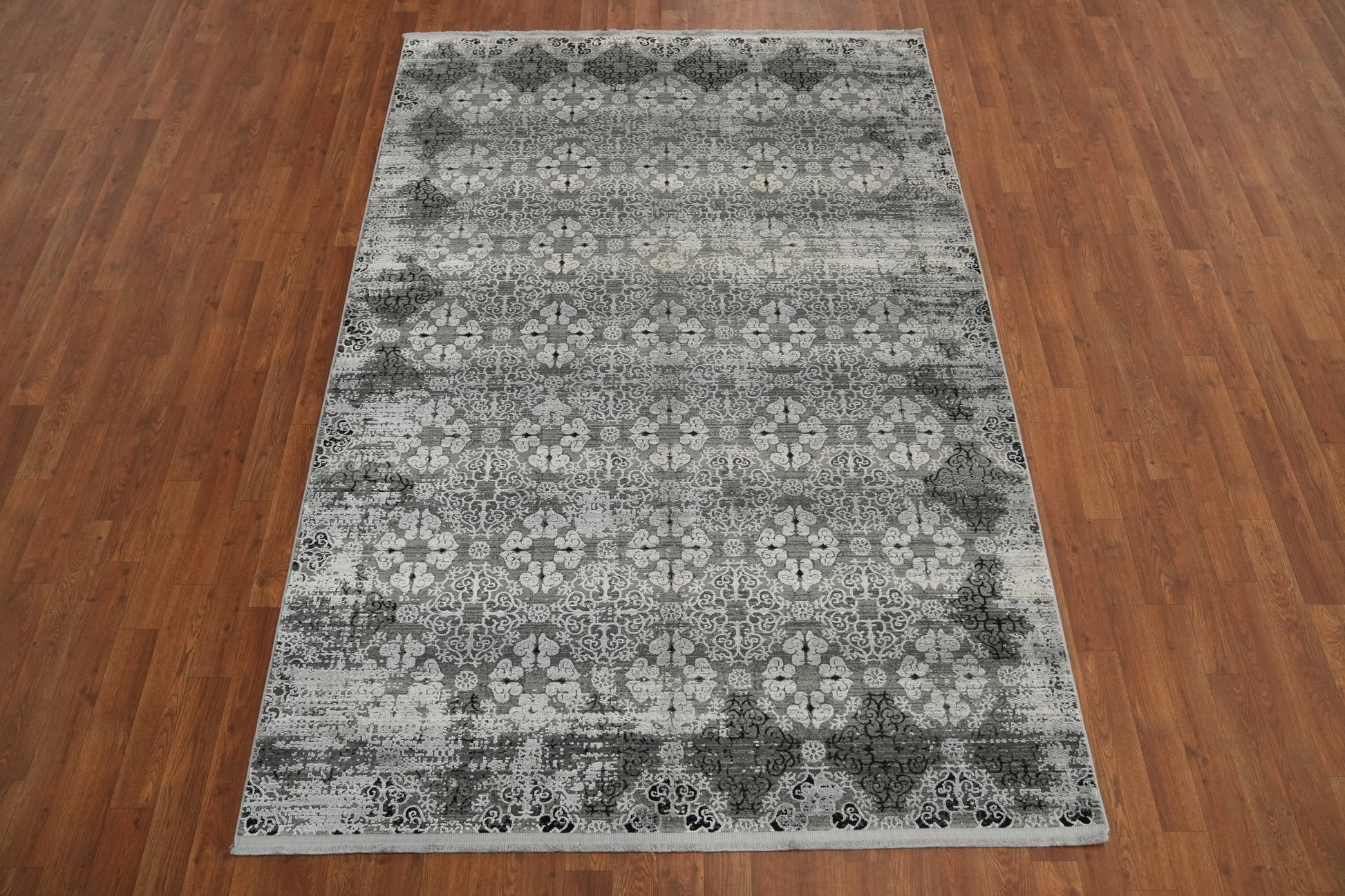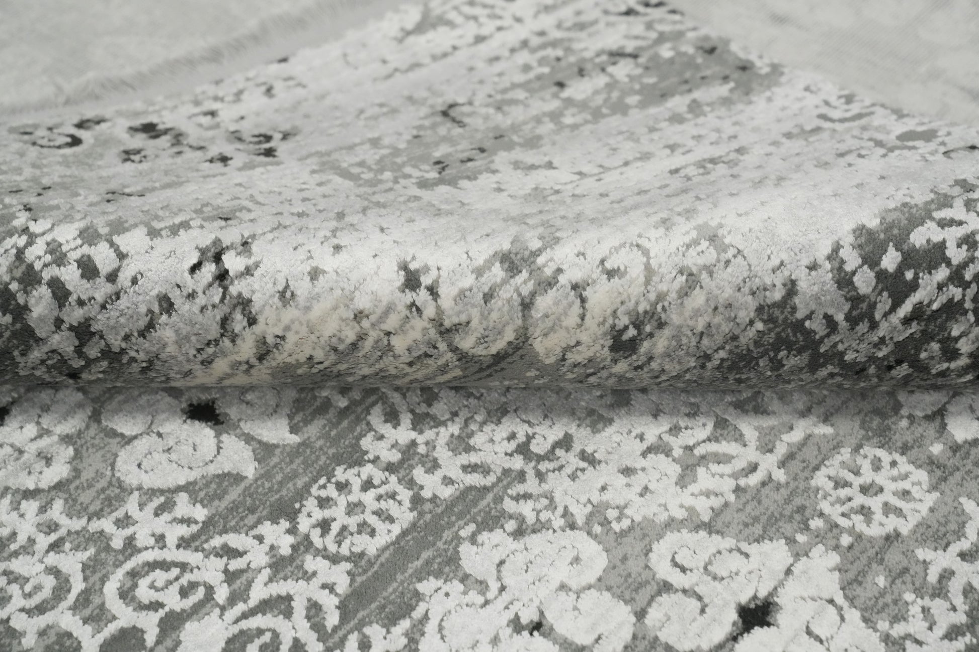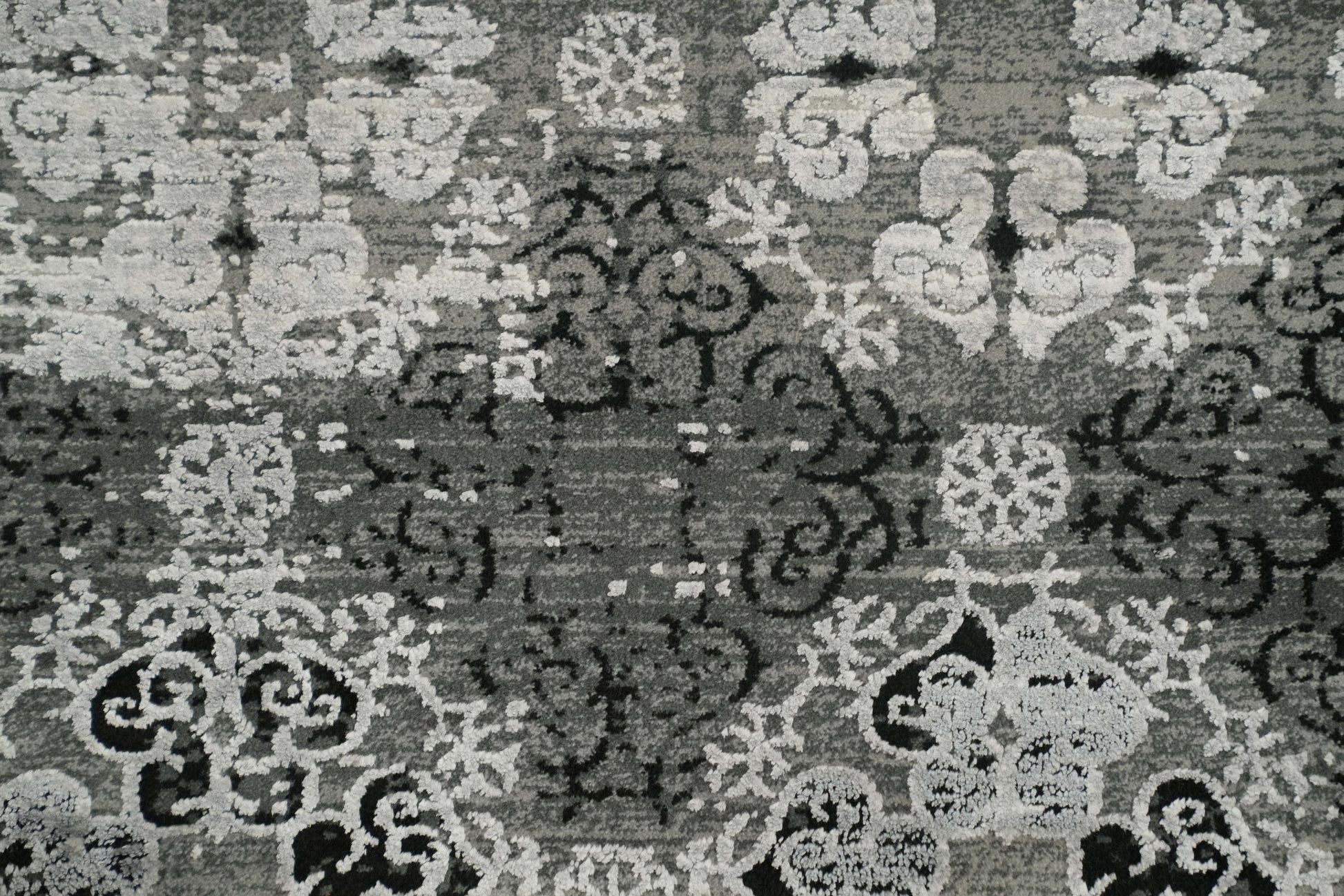 A Beautiful Genuine Turkey Distressed rug is Machine Made by skillful weavers in Turkey with Polyester Material. This rug is in New, First Quality condition. dimensions are 7' 5'' X 5' 2'' in foot and 226 X 157 in centimeter. the primary color is Greys & Charcoal.