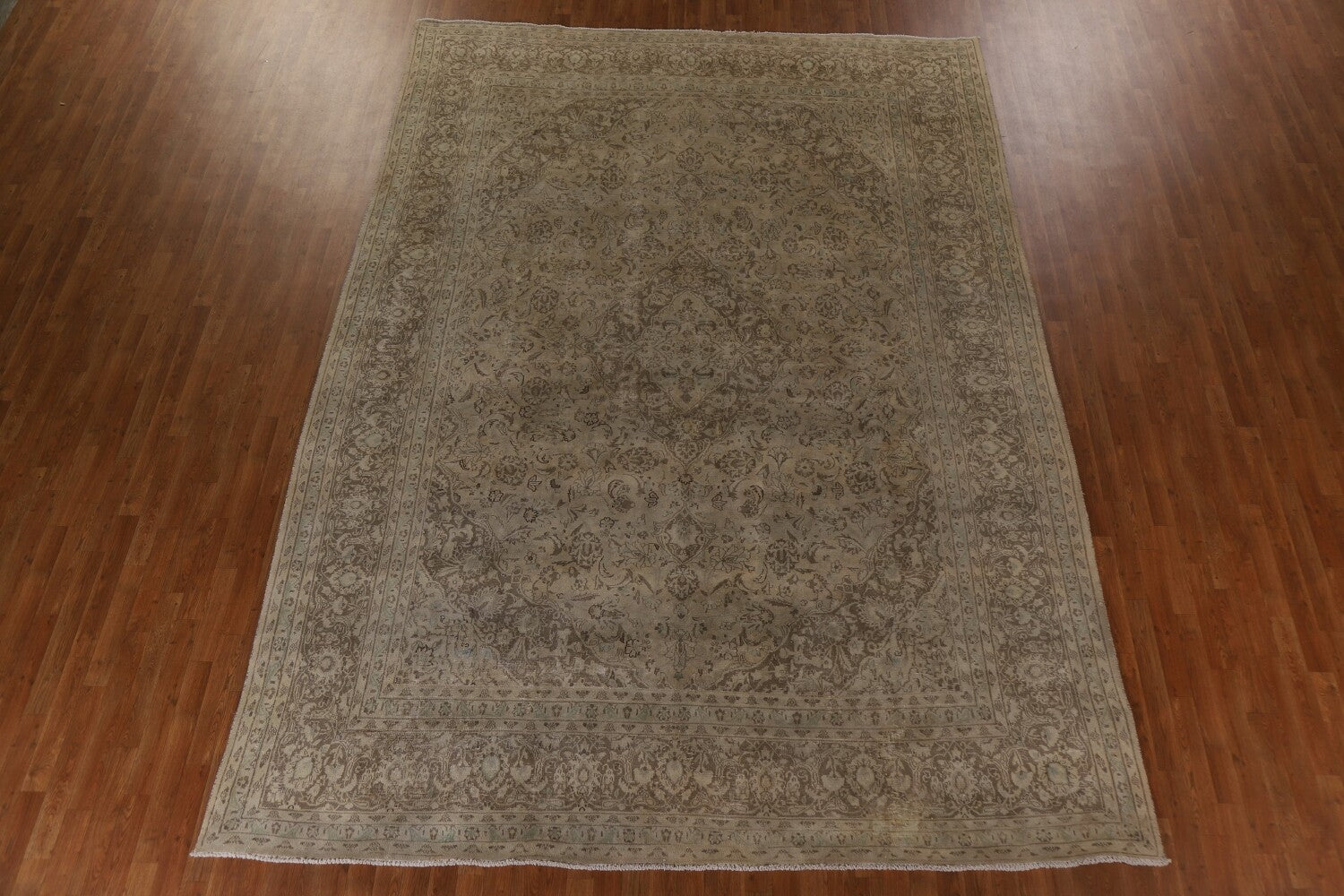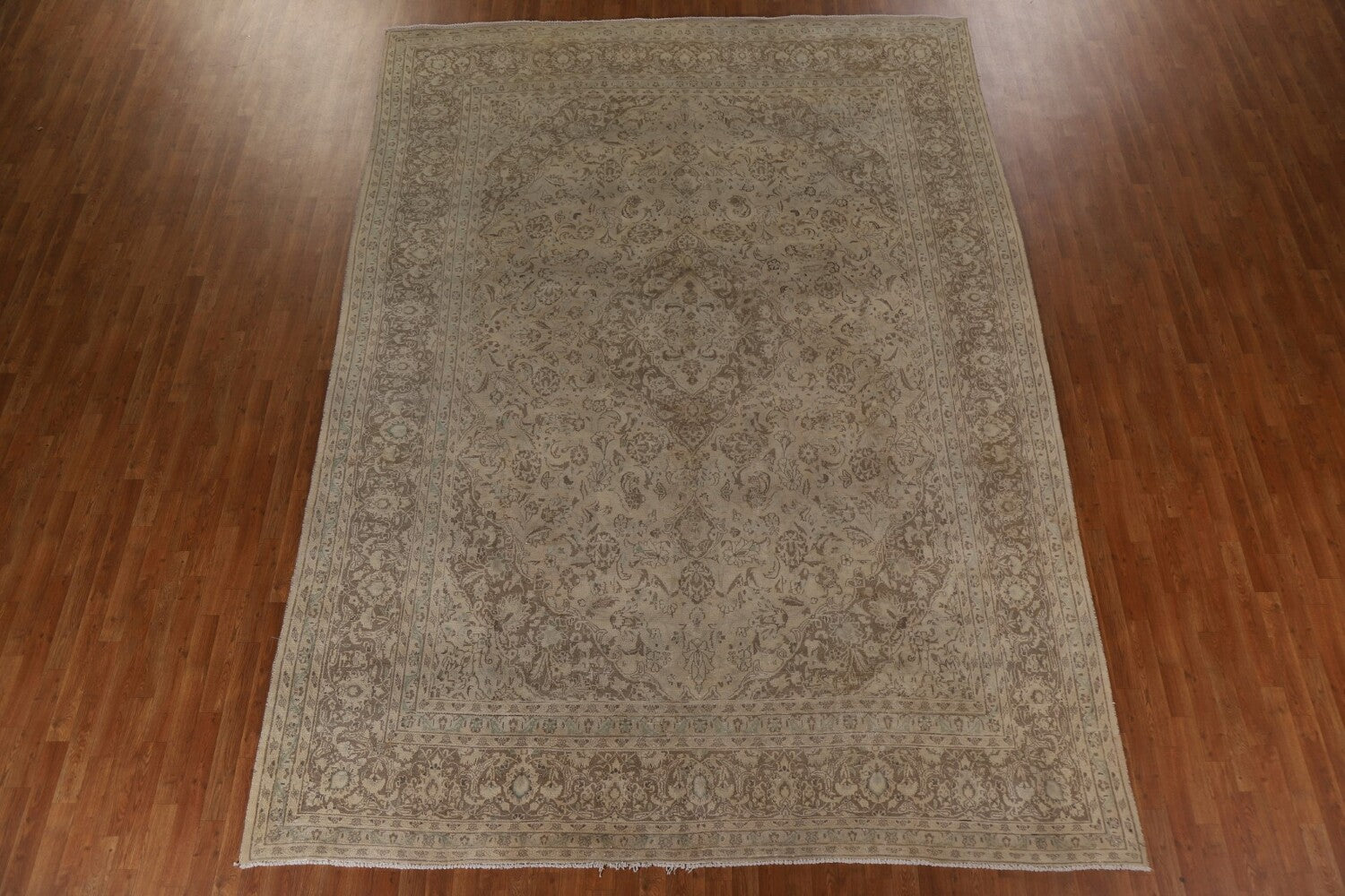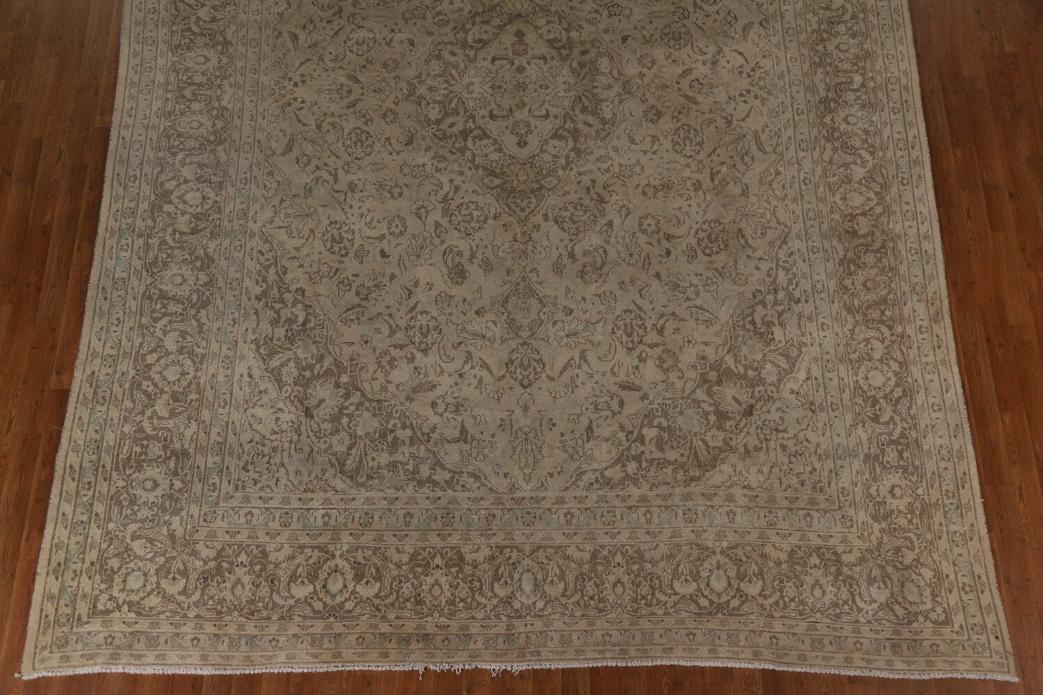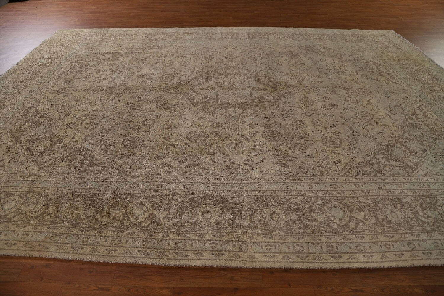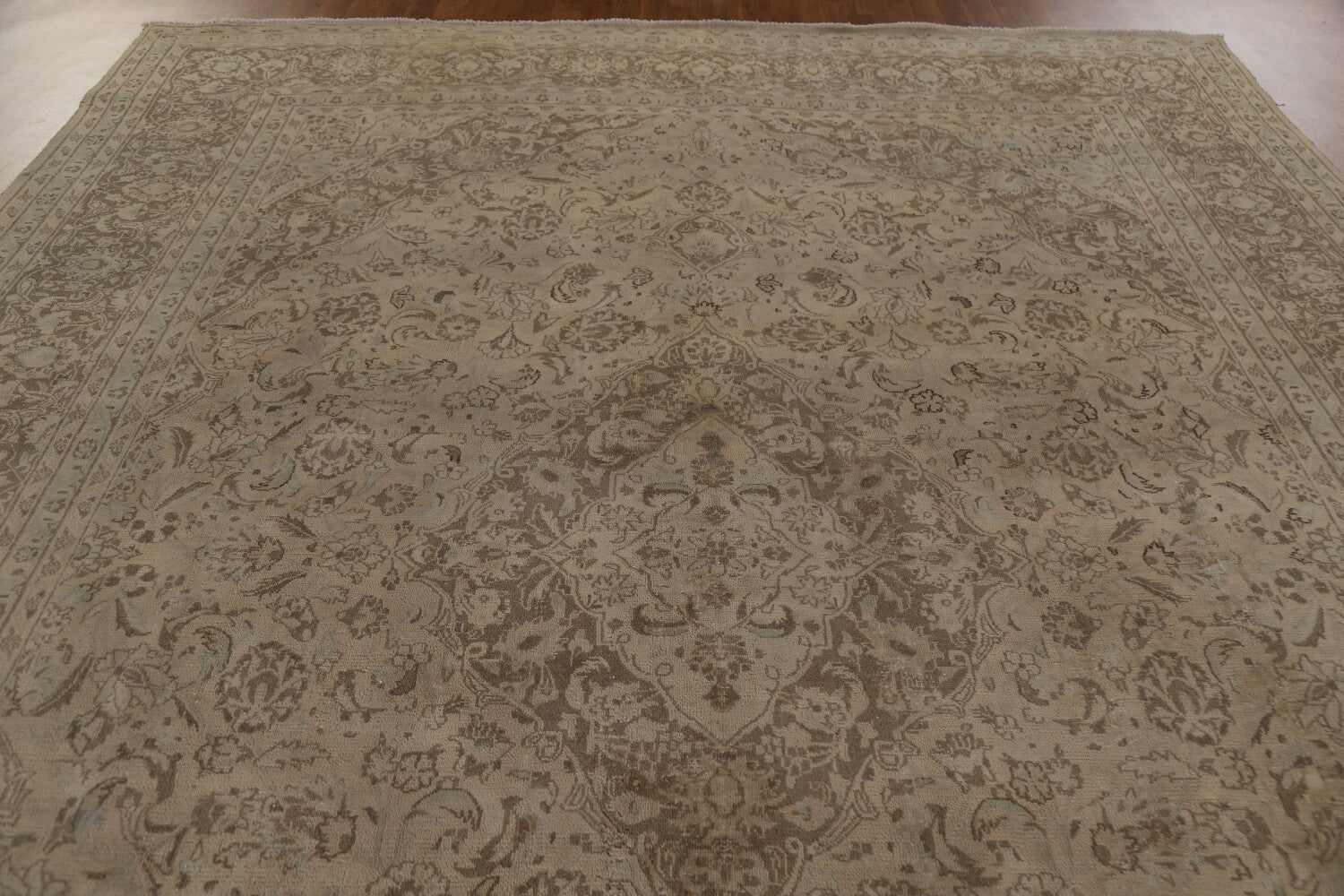 A Beautiful Genuine Persia ( Persia ) Mashad rug is Hand Knotted by skillful weavers in Persia ( Persia ) with 100% Wool Material. This rug is in Very Good (Evenly Low Pile) condition. dimensions are 13' 2'' X 9' 6'' in foot and 401 X 290 in centimeter. the primary color is Brown.