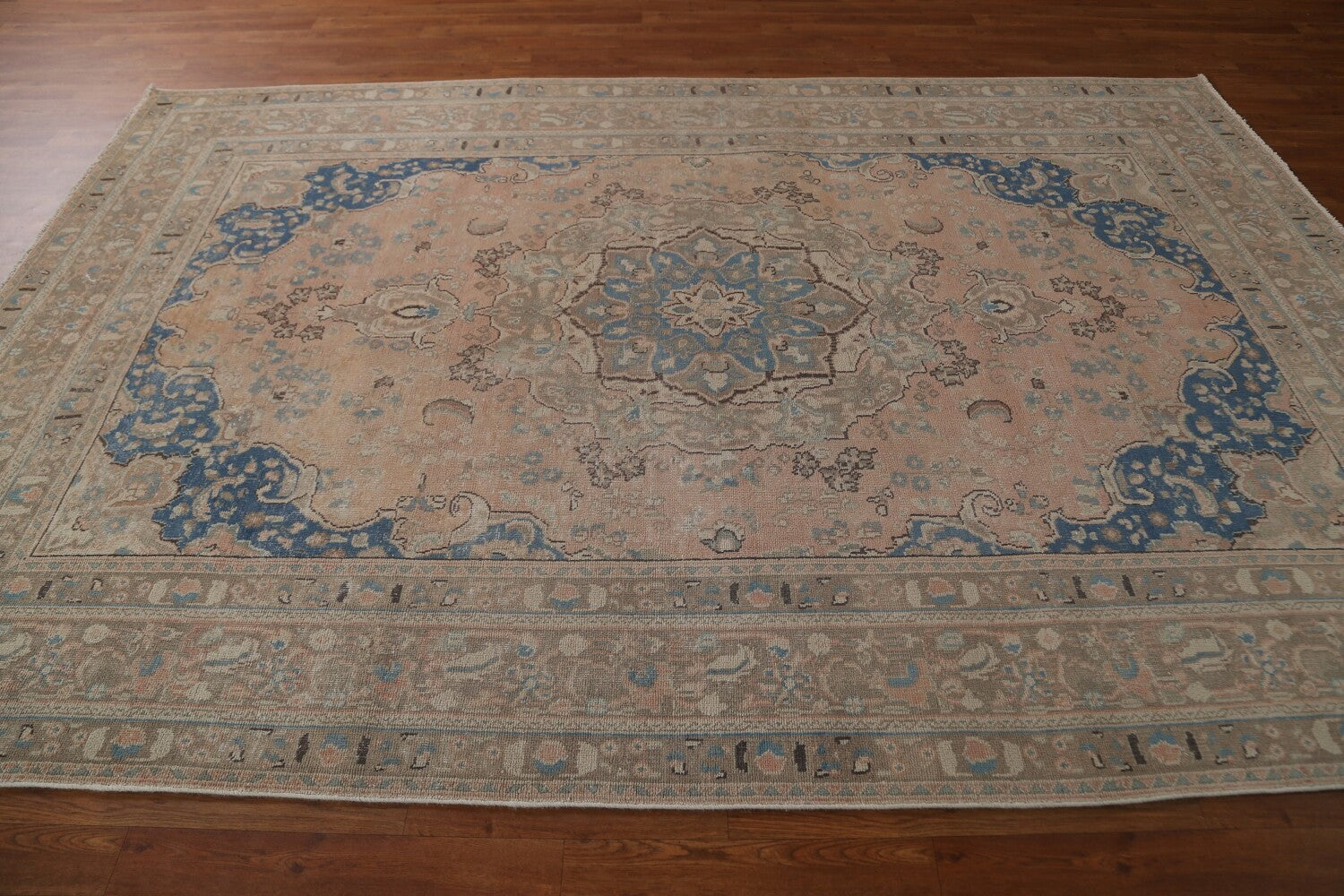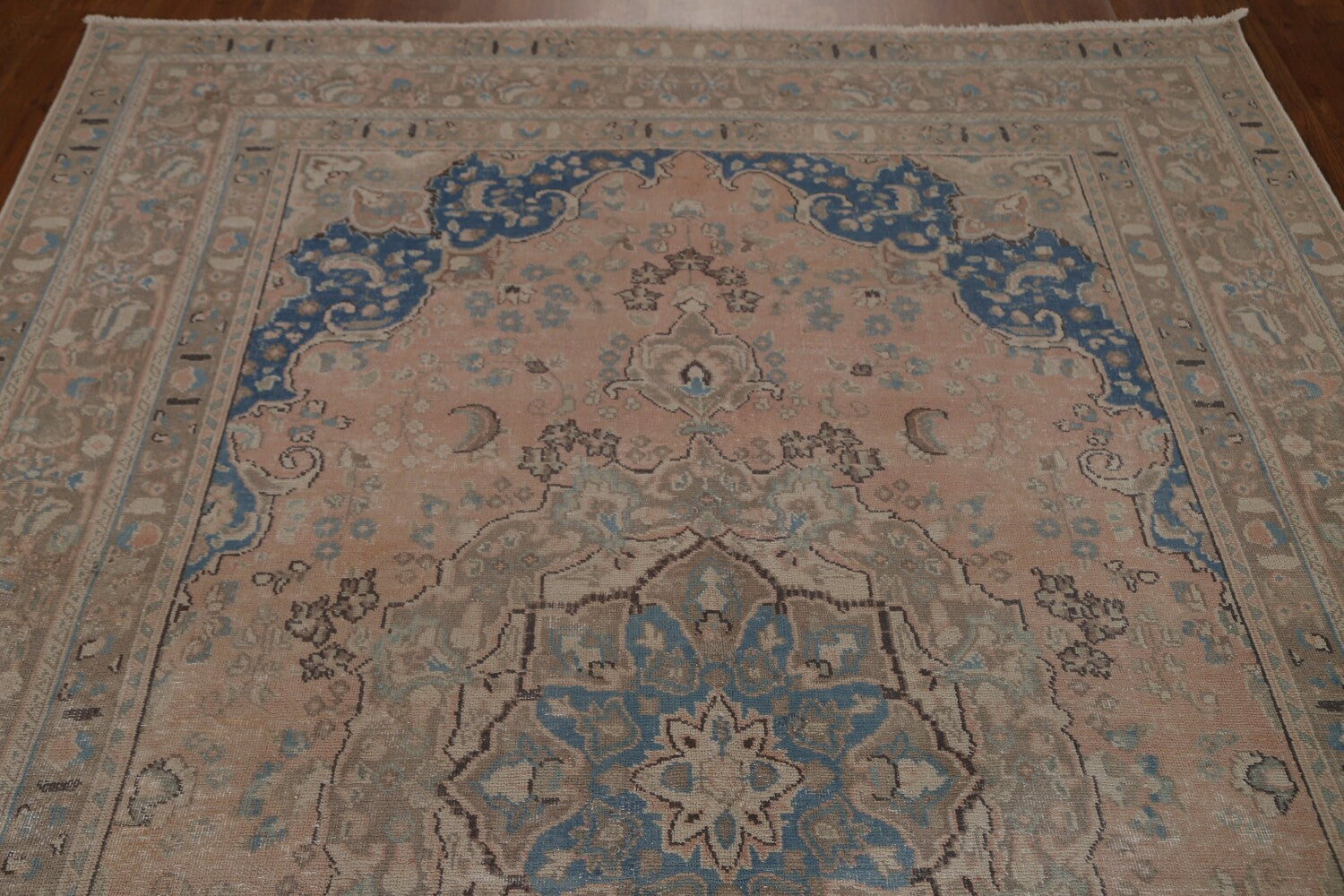 A Beautiful Genuine Persia ( Persia ) Mashad rug is Hand Knotted by skillful weavers in Persia ( Persia ) with 100% Wool Material. This rug is in Very Good (Low Pile) condition. dimensions are 9' 6'' X 6' 4'' in foot and 290 X 193 in centimeter. the primary color is Pink.