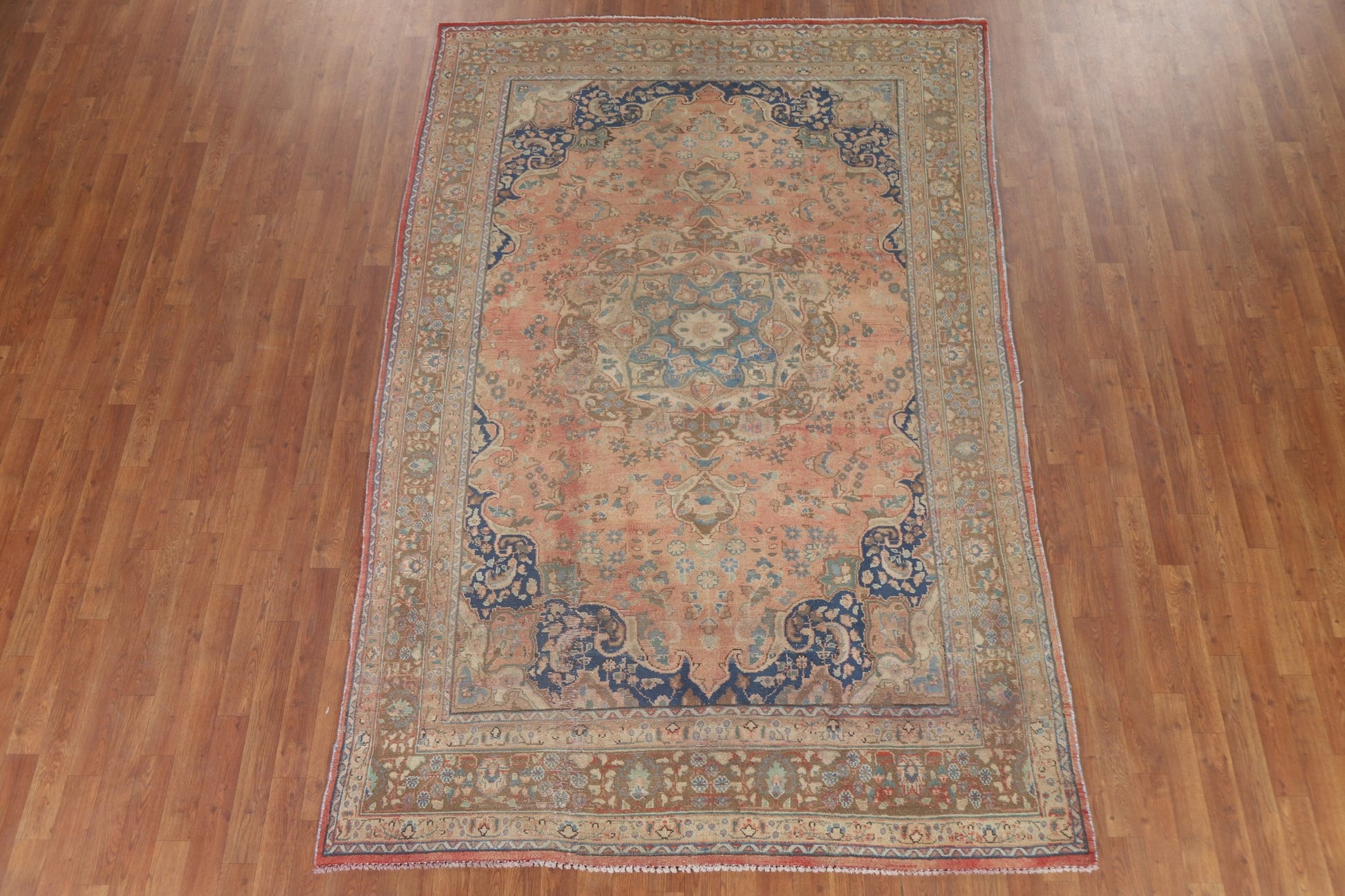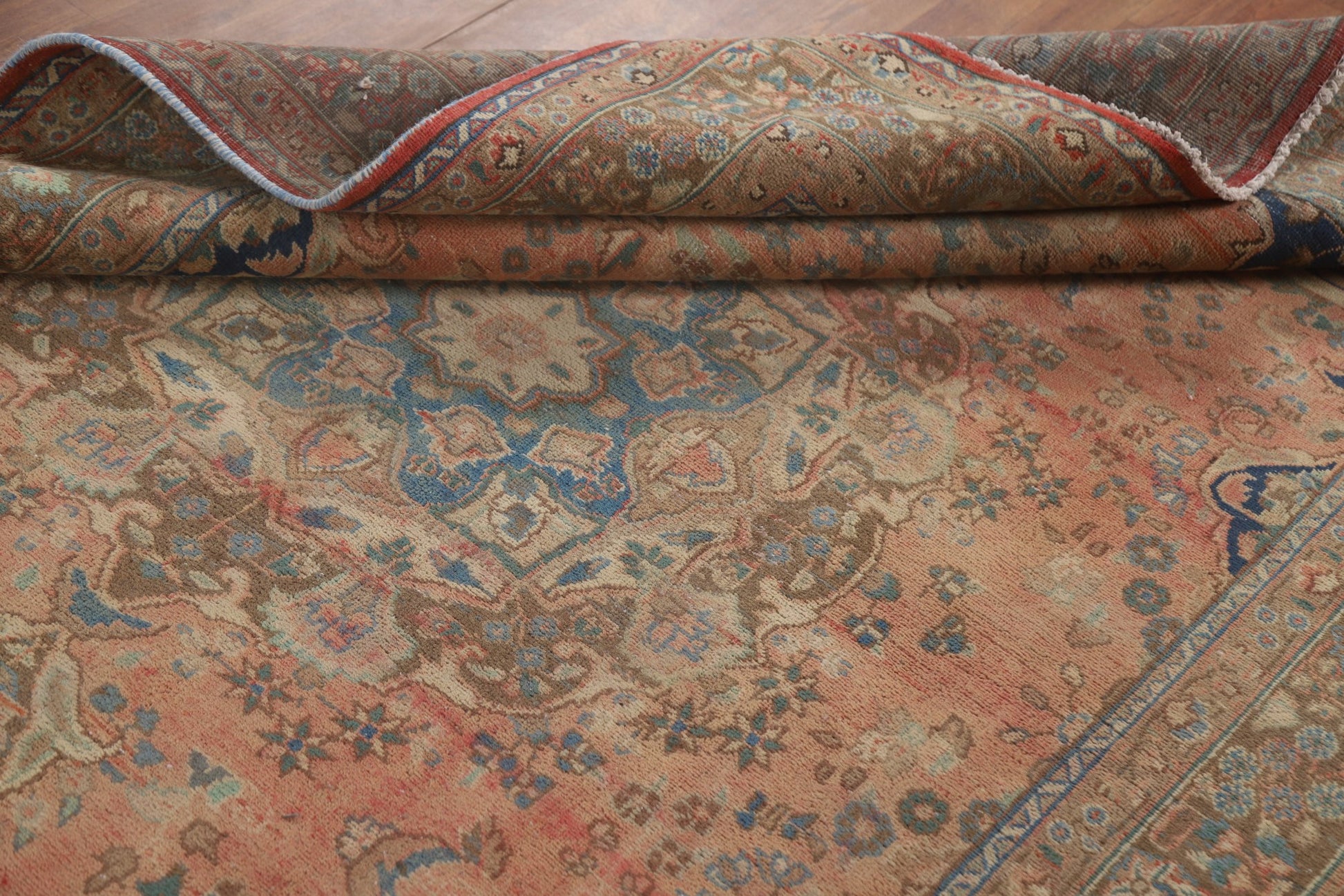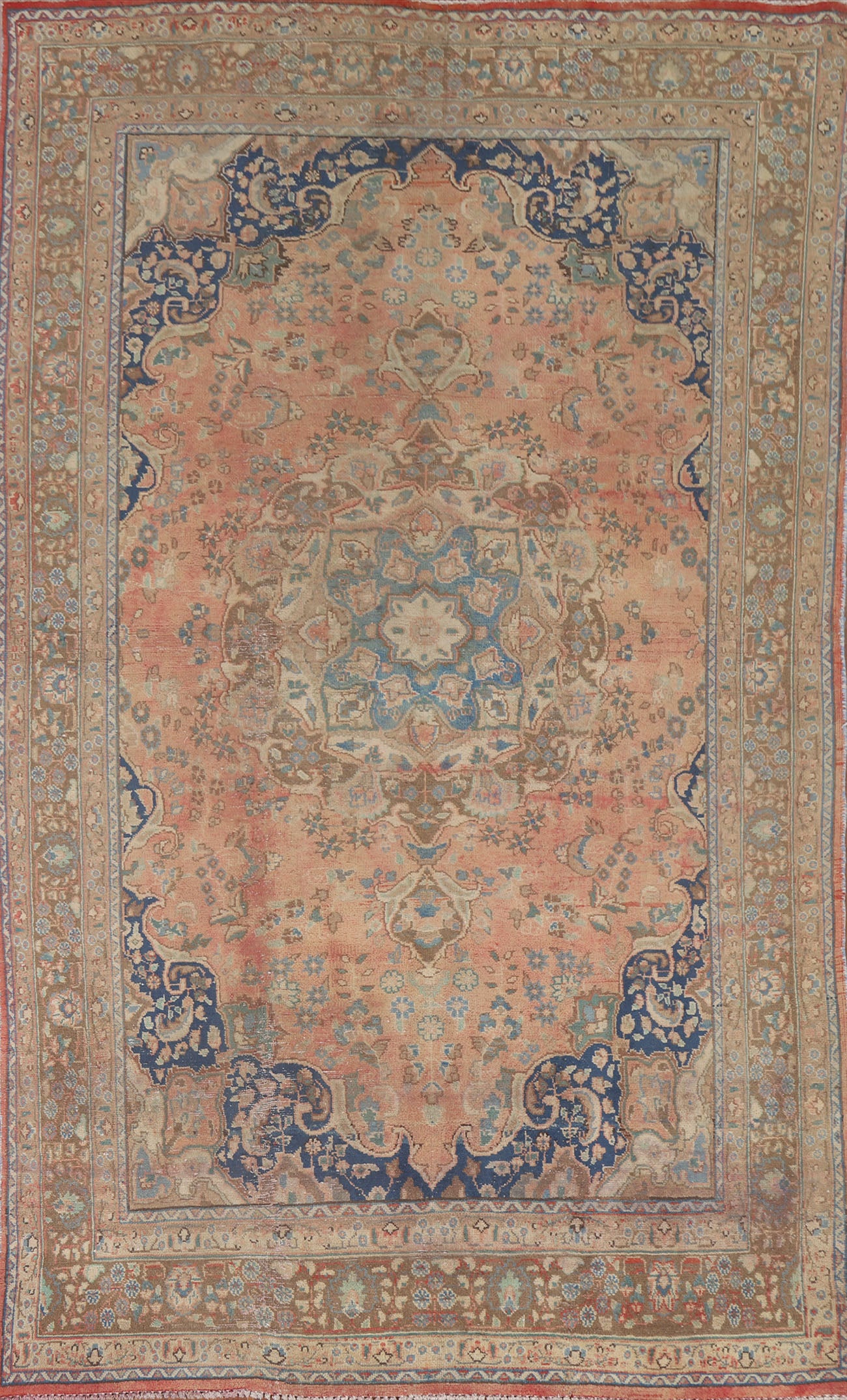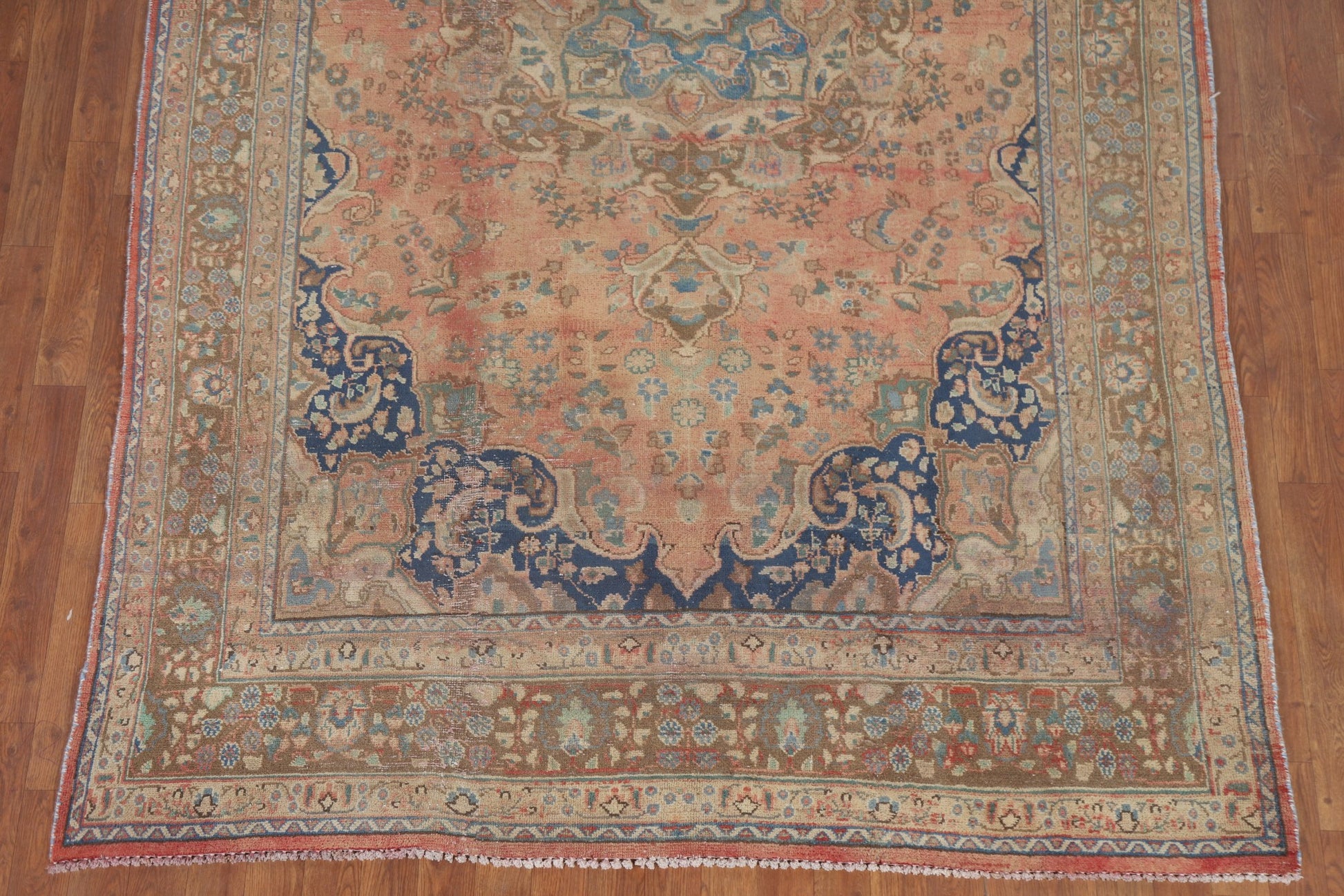 A Beautiful Genuine Persia ( Persia ) Mashad rug is Hand Knotted by skillful weavers in Persia ( Persia ) with 100% Wool Material. This rug is in Very Good (Low Pile-Abrash) condition. dimensions are 9' 3'' X 6' 1'' in foot and 282 X 185 in centimeter. the primary color is Coral.