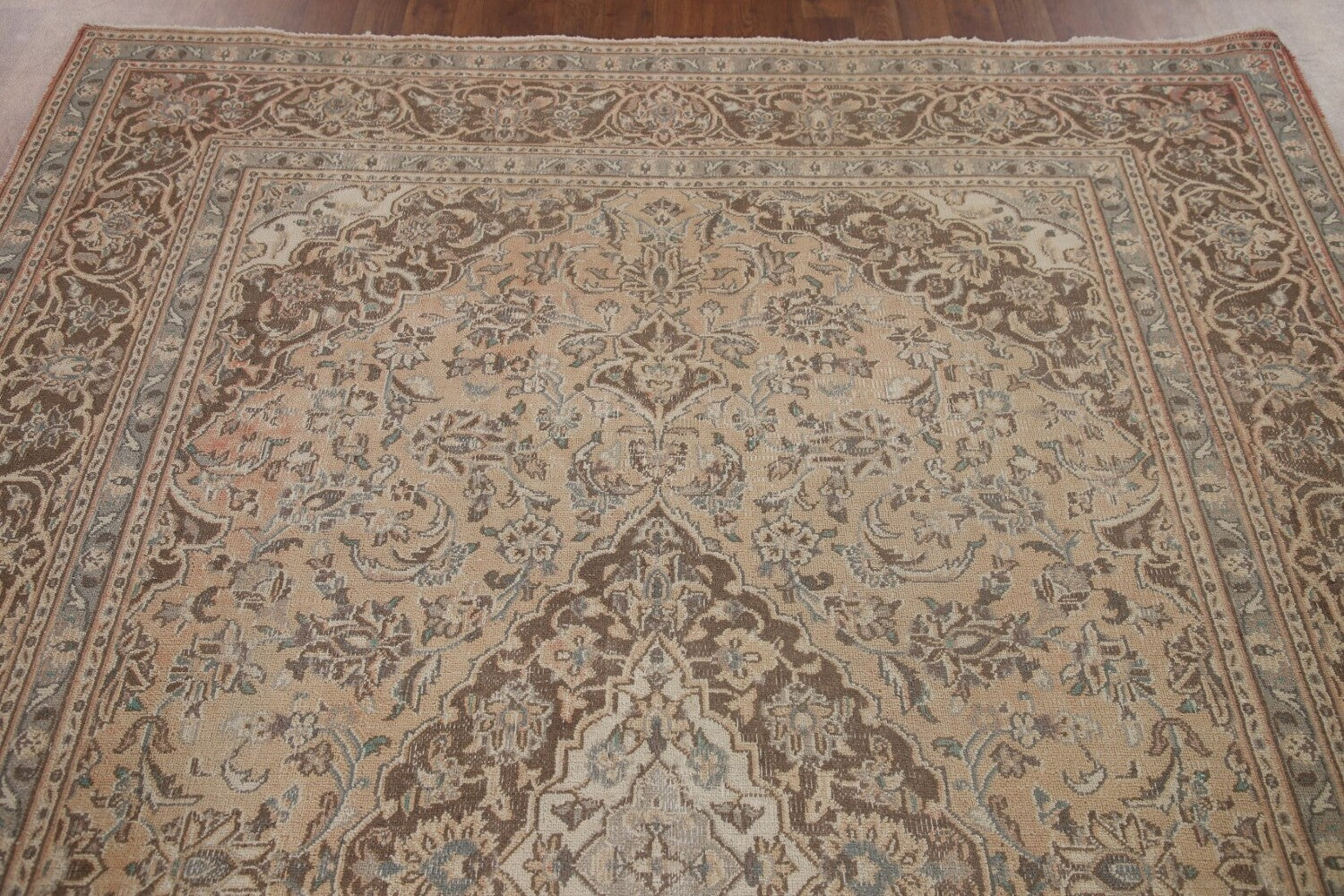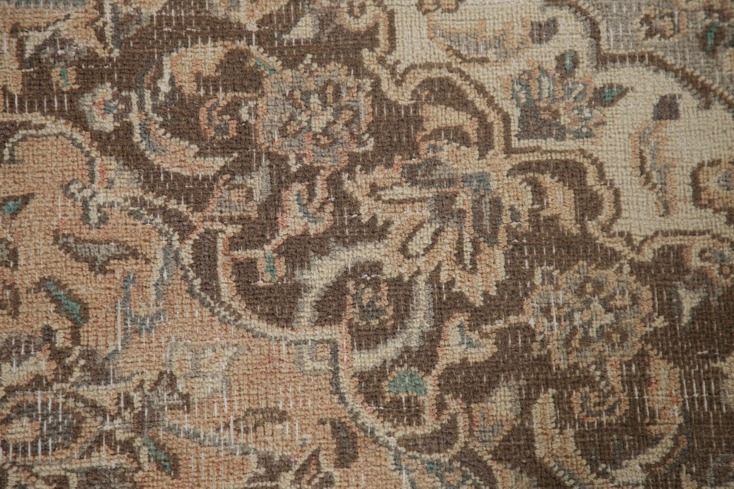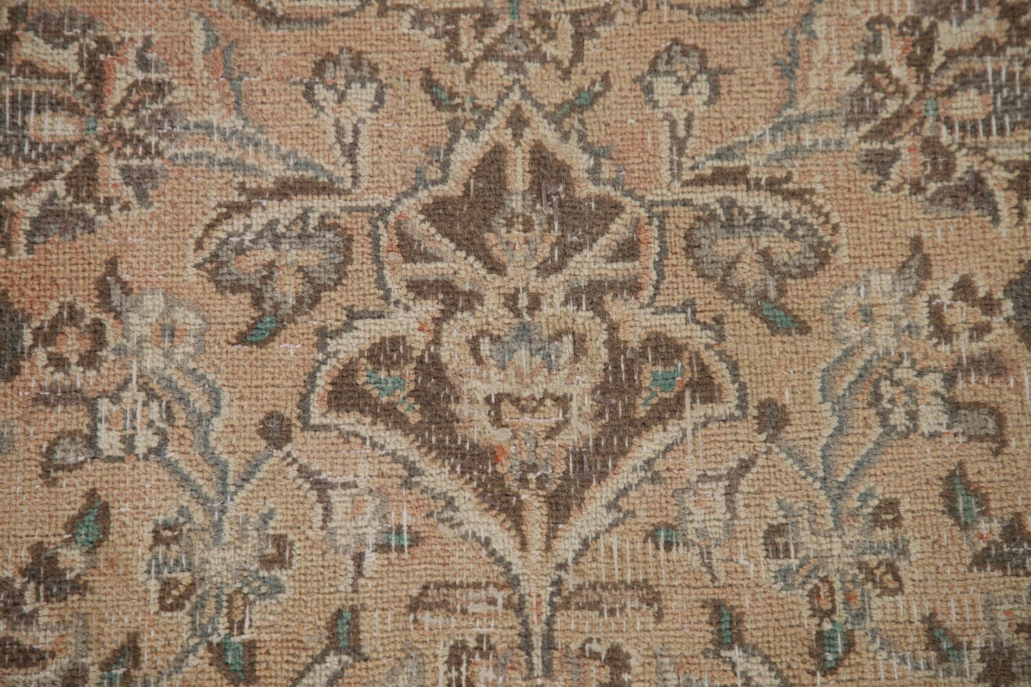 A Beautiful Genuine Persia ( Persia ) Mashad rug is Hand Knotted by skillful weavers in Persia ( Persia ) with 100% Wool Material. This rug is in Very Good (Evenly Low Pile) condition. dimensions are 9' 0'' X 6' 3'' in foot and 274 X 191 in centimeter. the primary color is Peach.