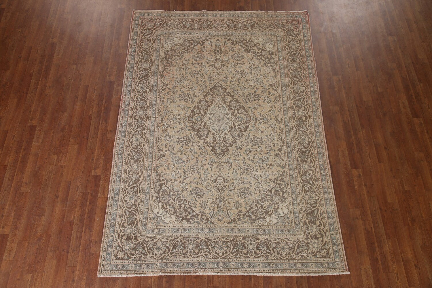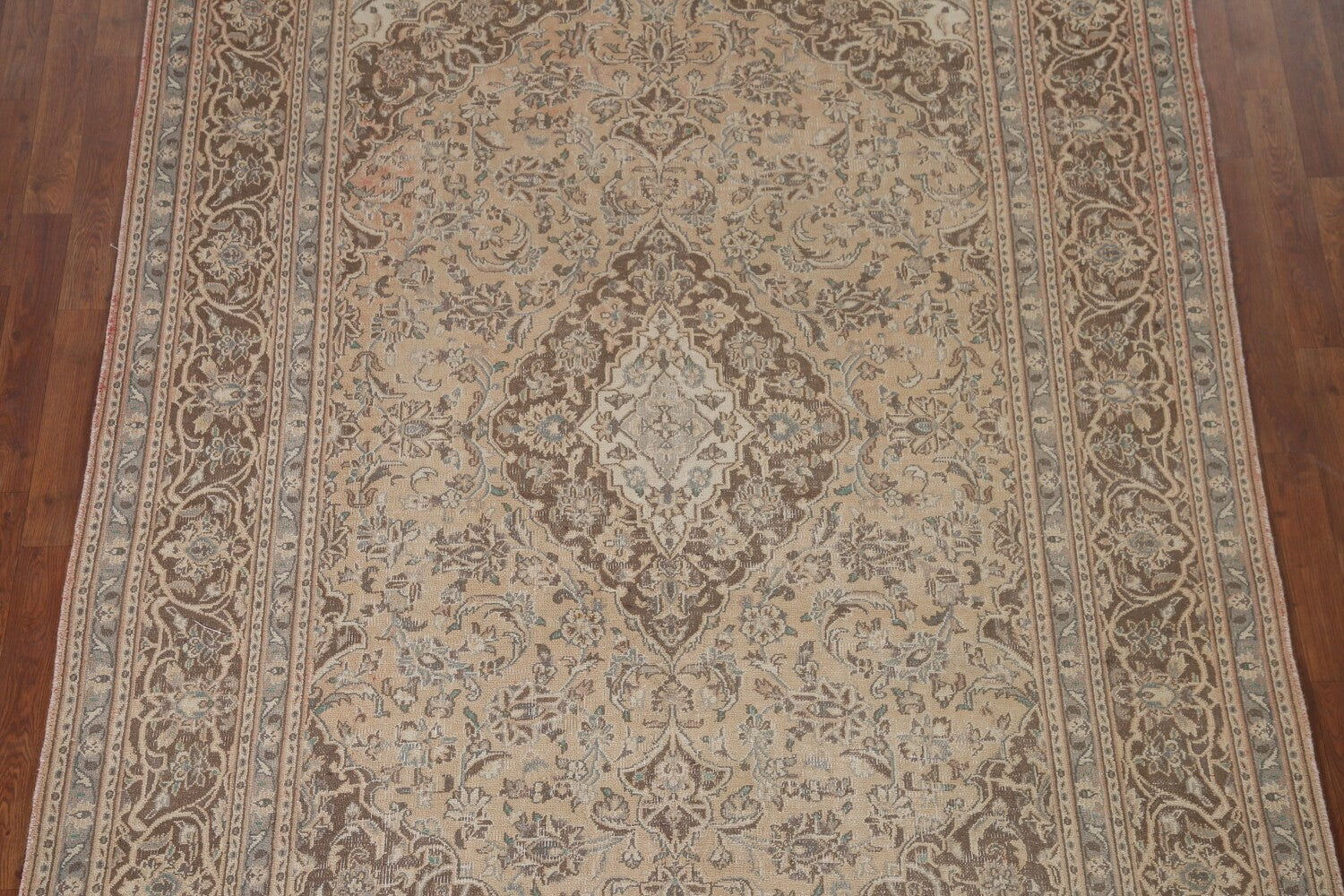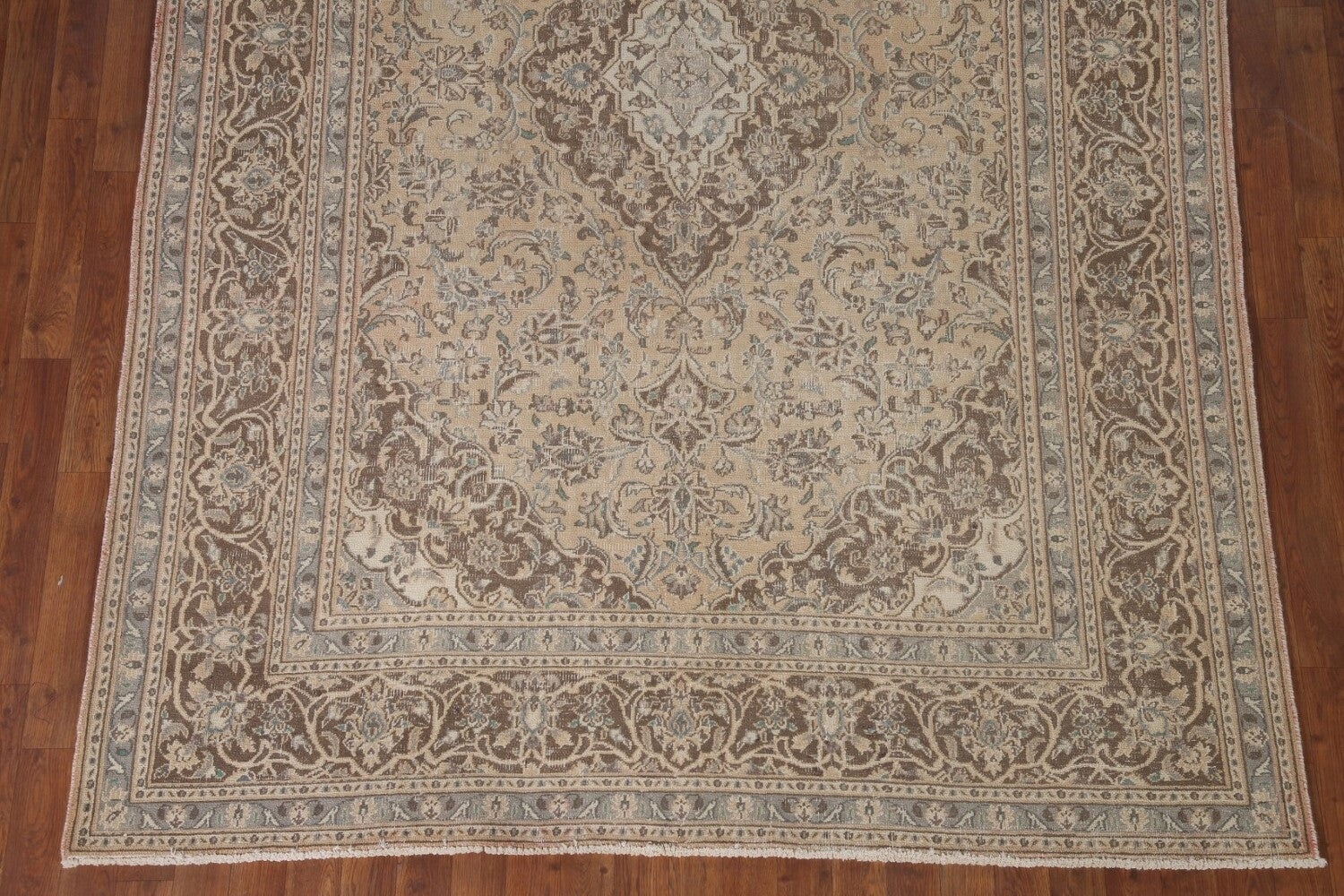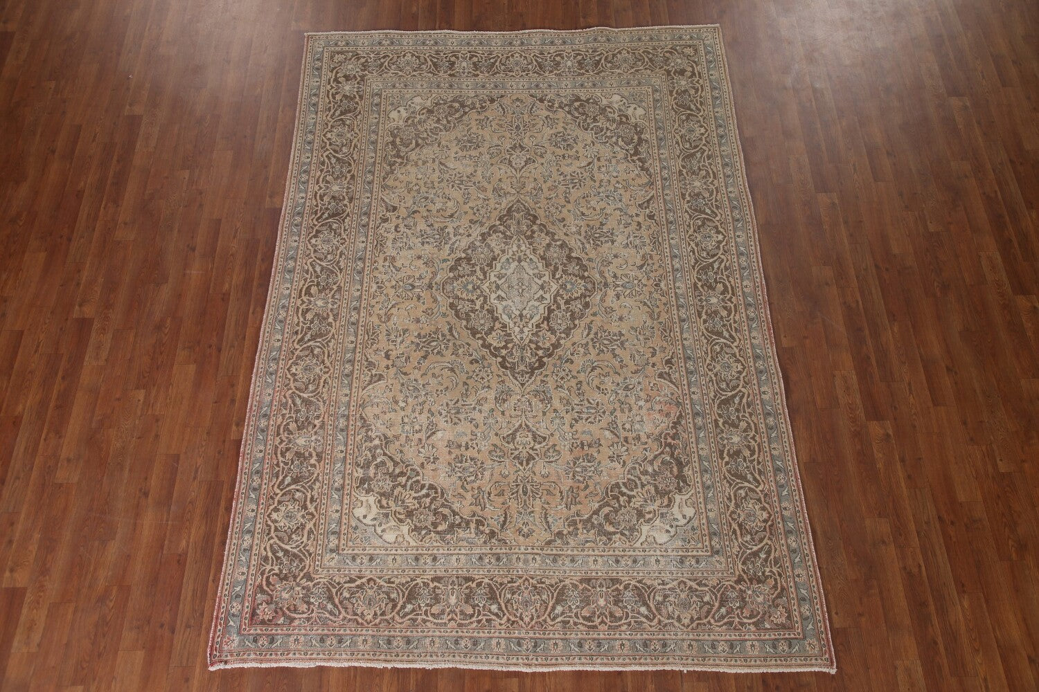 A Beautiful Genuine Persia ( Persia ) Mashad rug is Hand Knotted by skillful weavers in Persia ( Persia ) with 100% Wool Material. This rug is in Very Good (Evenly Low Pile) condition. dimensions are 9' 0'' X 6' 3'' in foot and 274 X 191 in centimeter. the primary color is Peach.