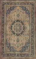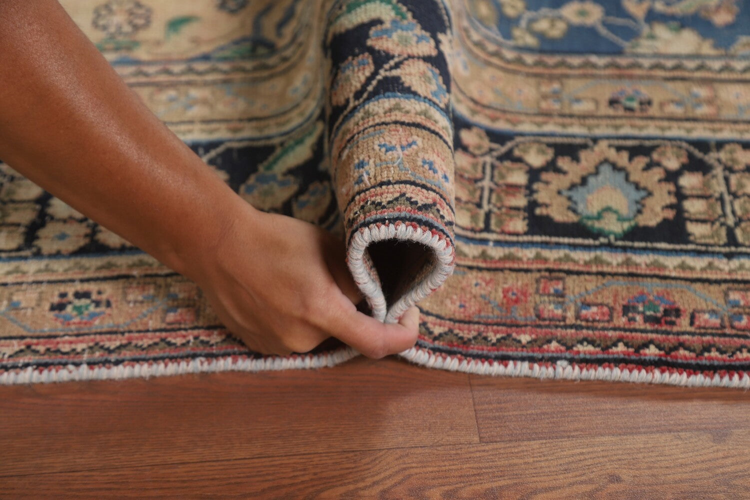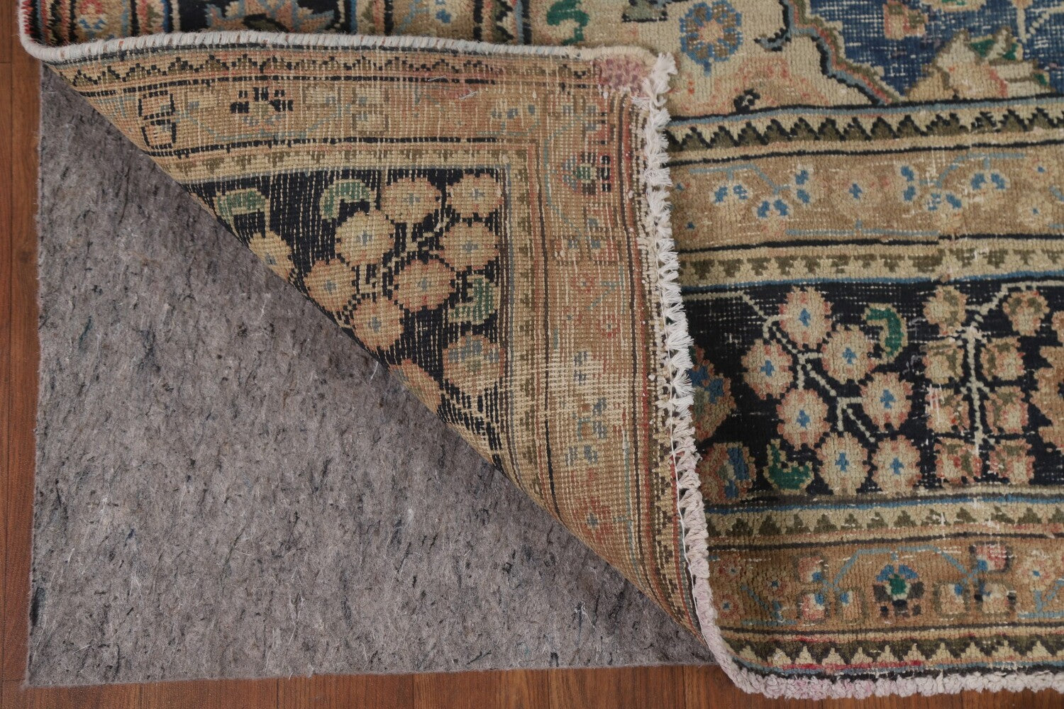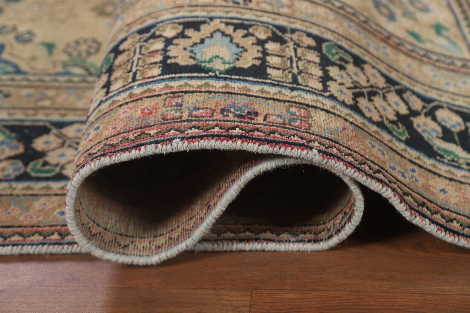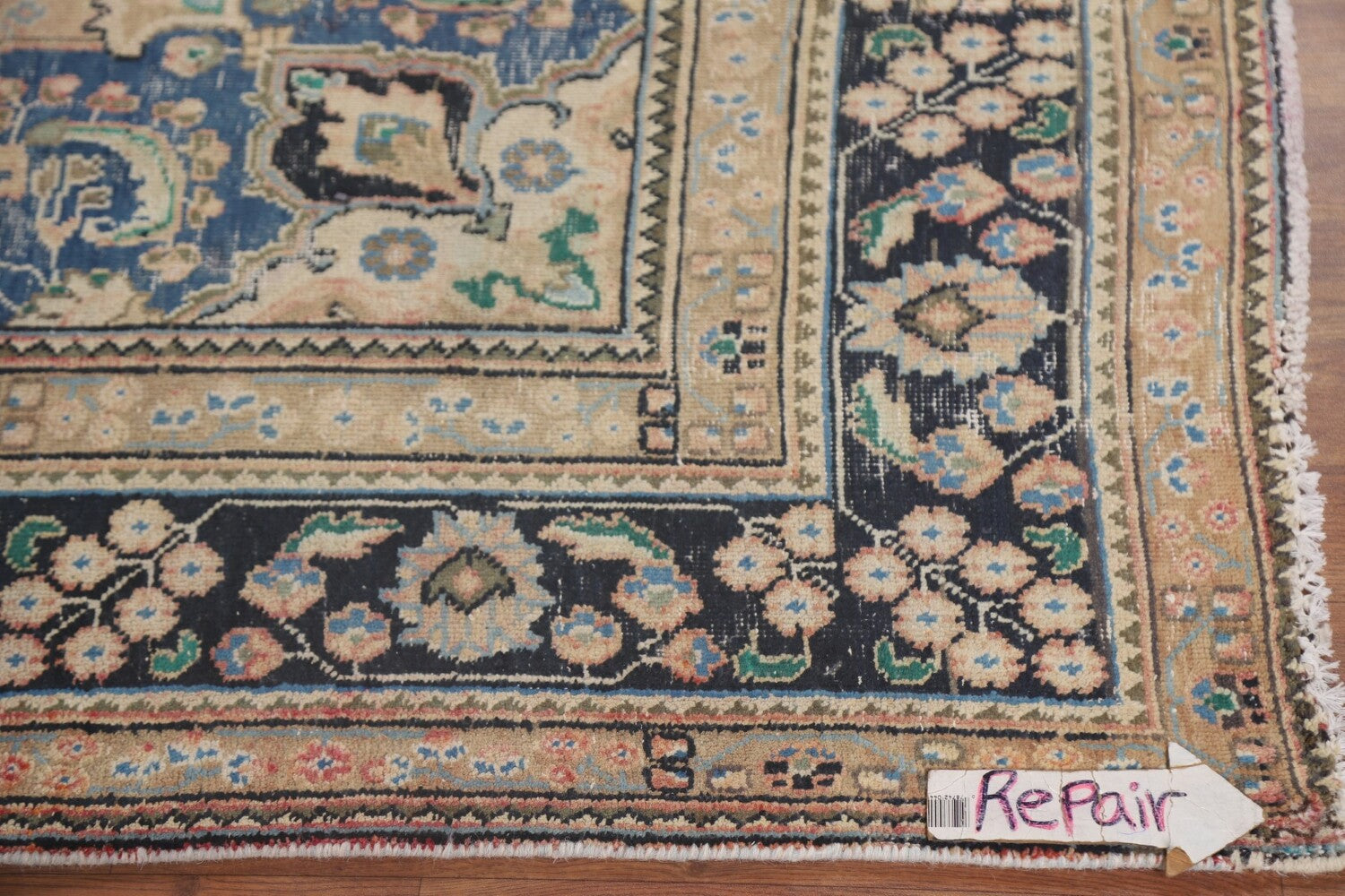 A Beautiful Genuine Persia ( Persia ) Mashad rug is Hand Knotted by skillful weavers in Persia ( Persia ) with 100% Wool Material. This rug is in Very Good (Low Pile-Small Repair) condition. dimensions are 9' 5'' X 6' 2'' in foot and 287 X 188 in centimeter. the primary color is Peach.