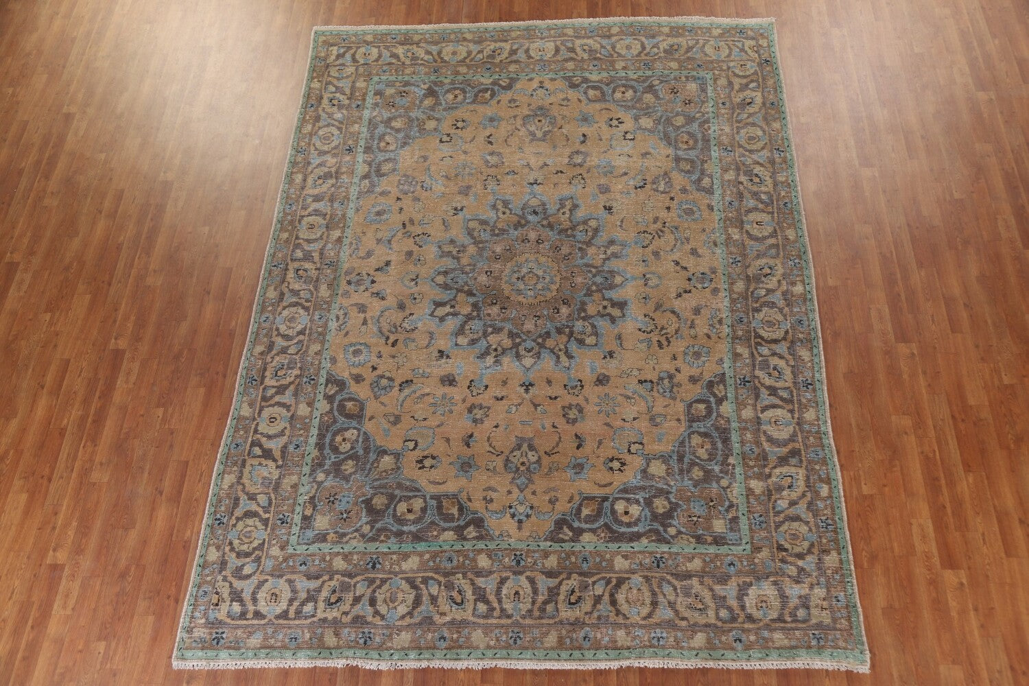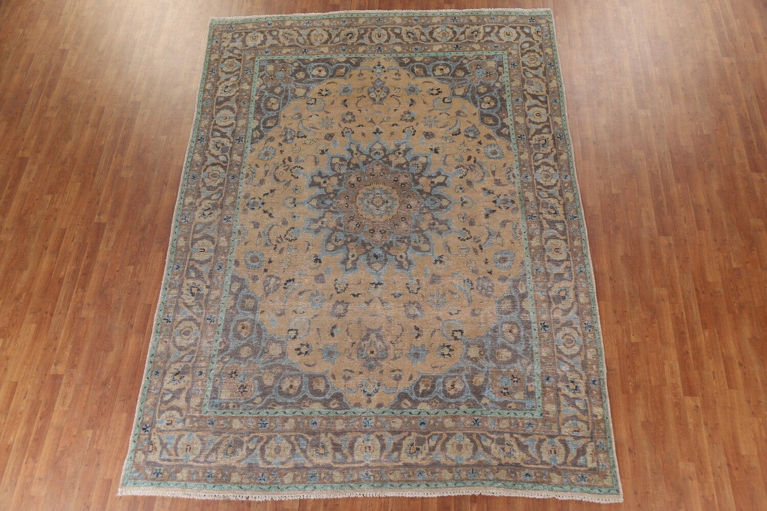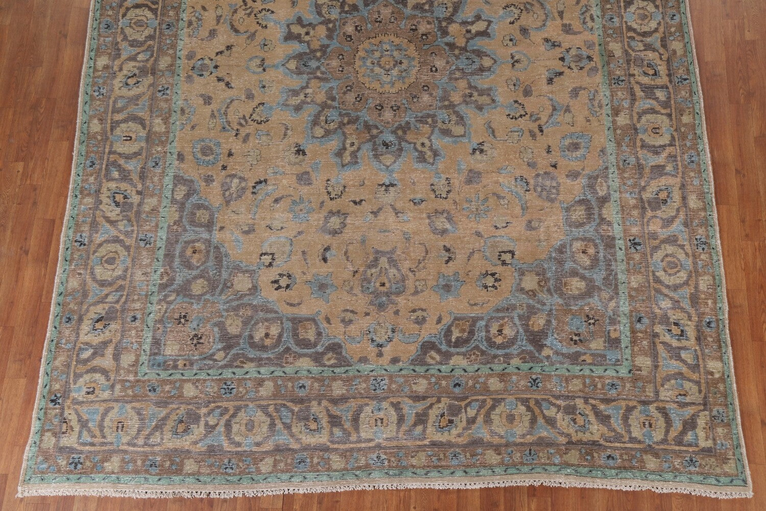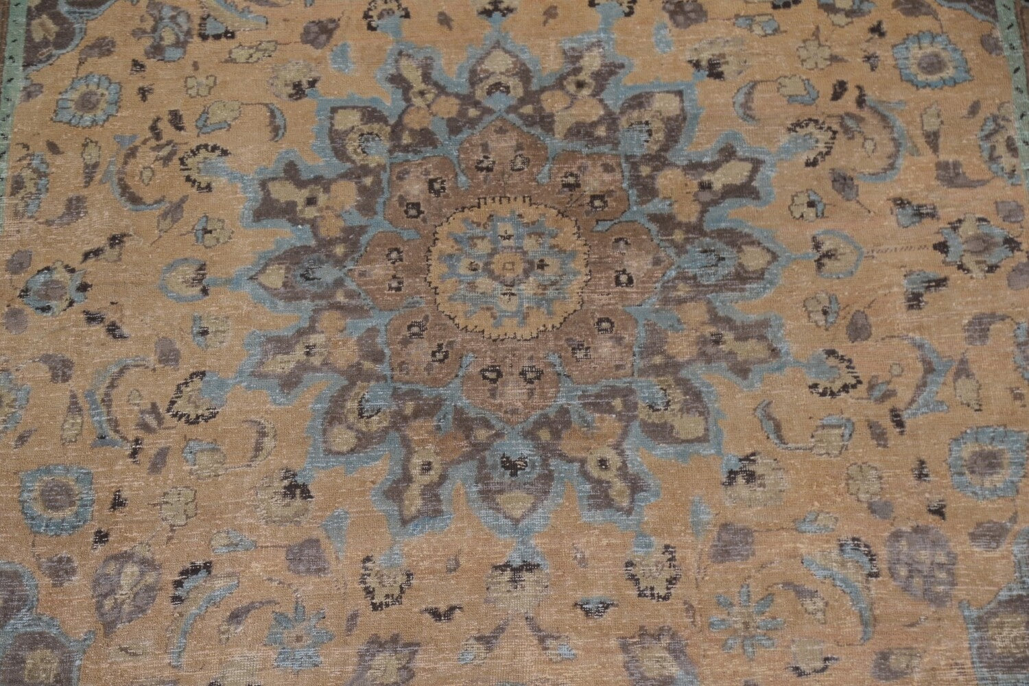 A Beautiful Genuine Persia ( Persia ) Mashad rug is Hand Knotted by skillful weavers in Persia ( Persia ) with 100% Wool Material. This rug is in Good (Evenly Low Pile-Worn) condition. dimensions are 11' 5'' X 8' 5'' in foot and 348 X 257 in centimeter. the primary color is Peach.