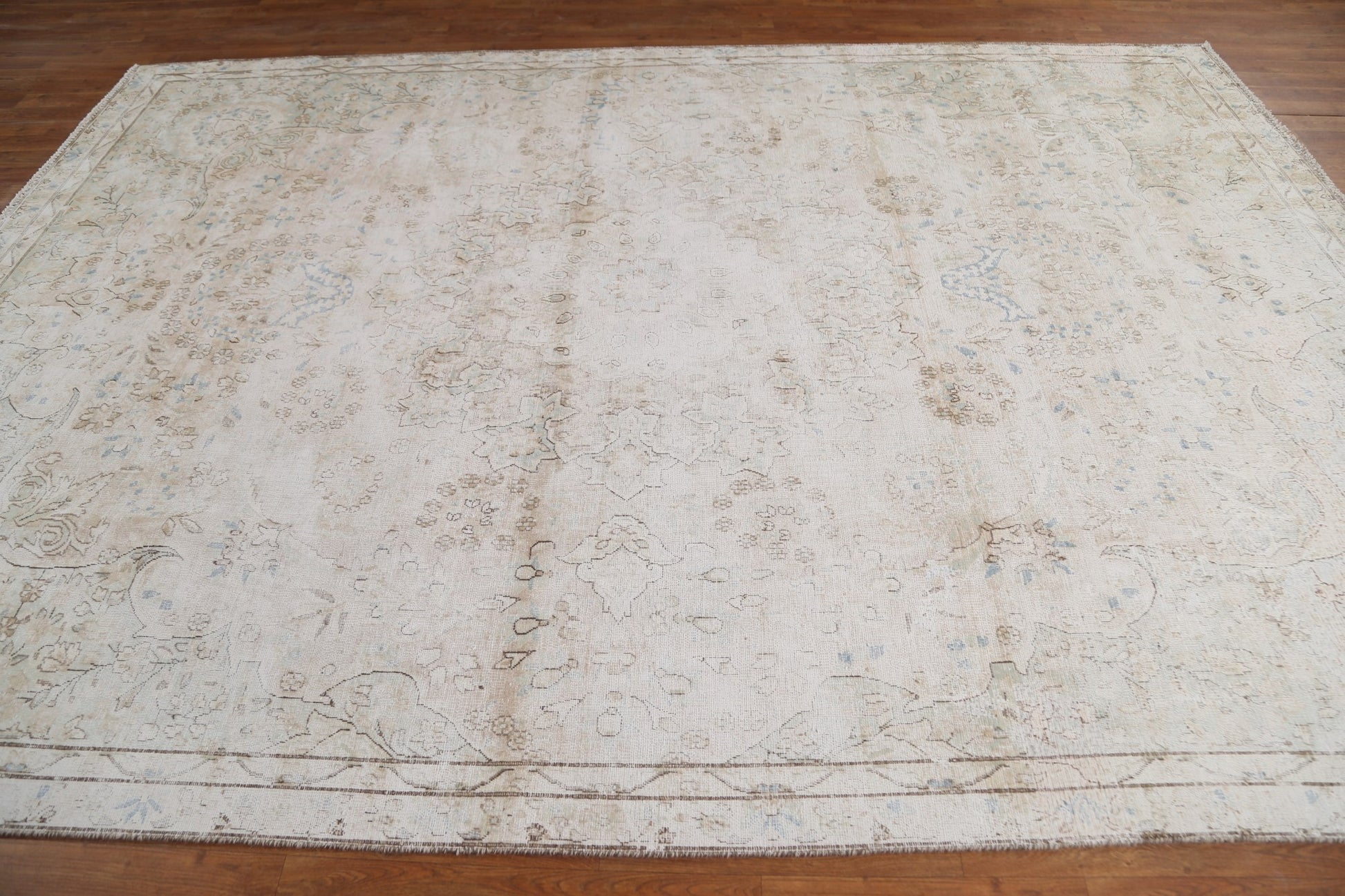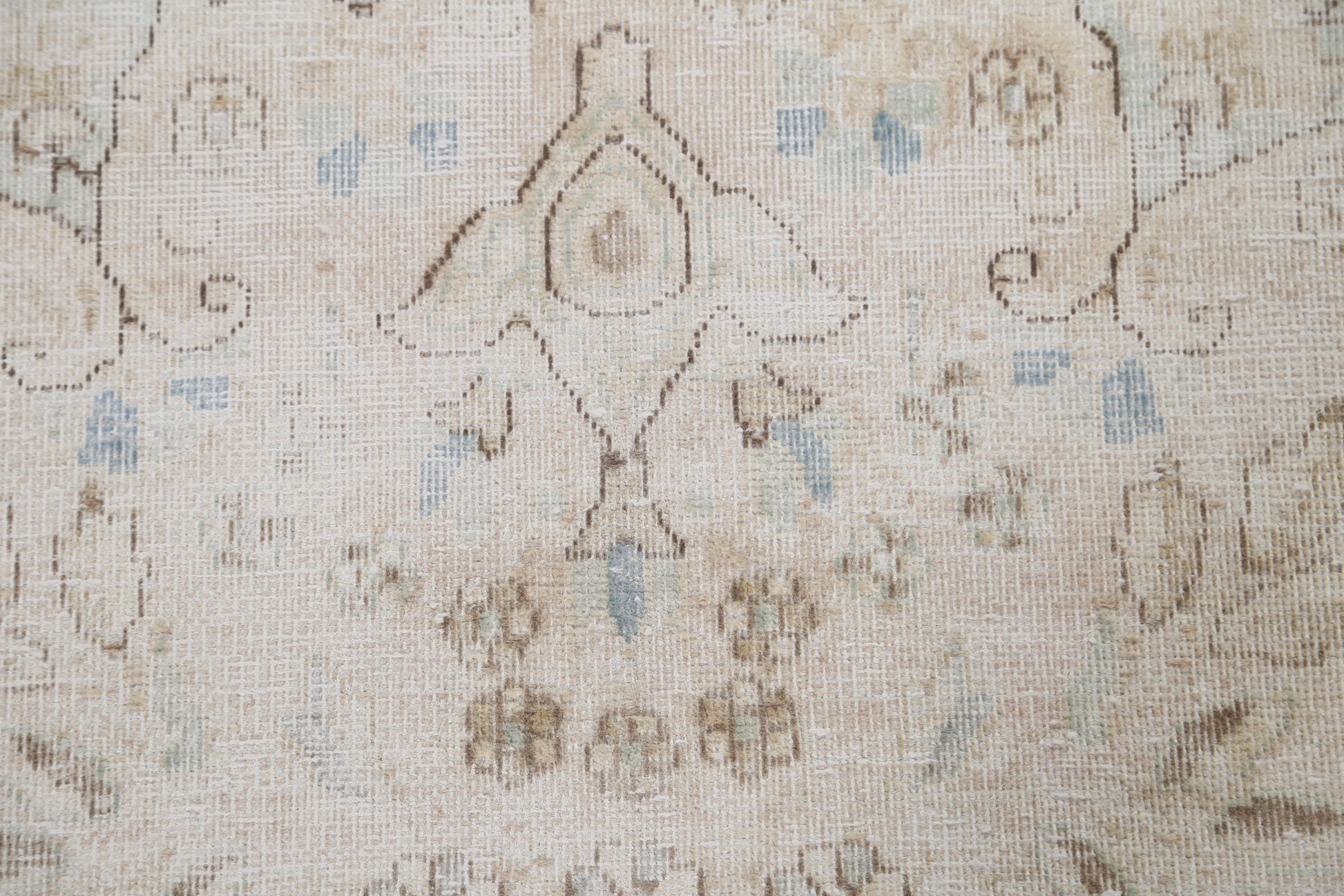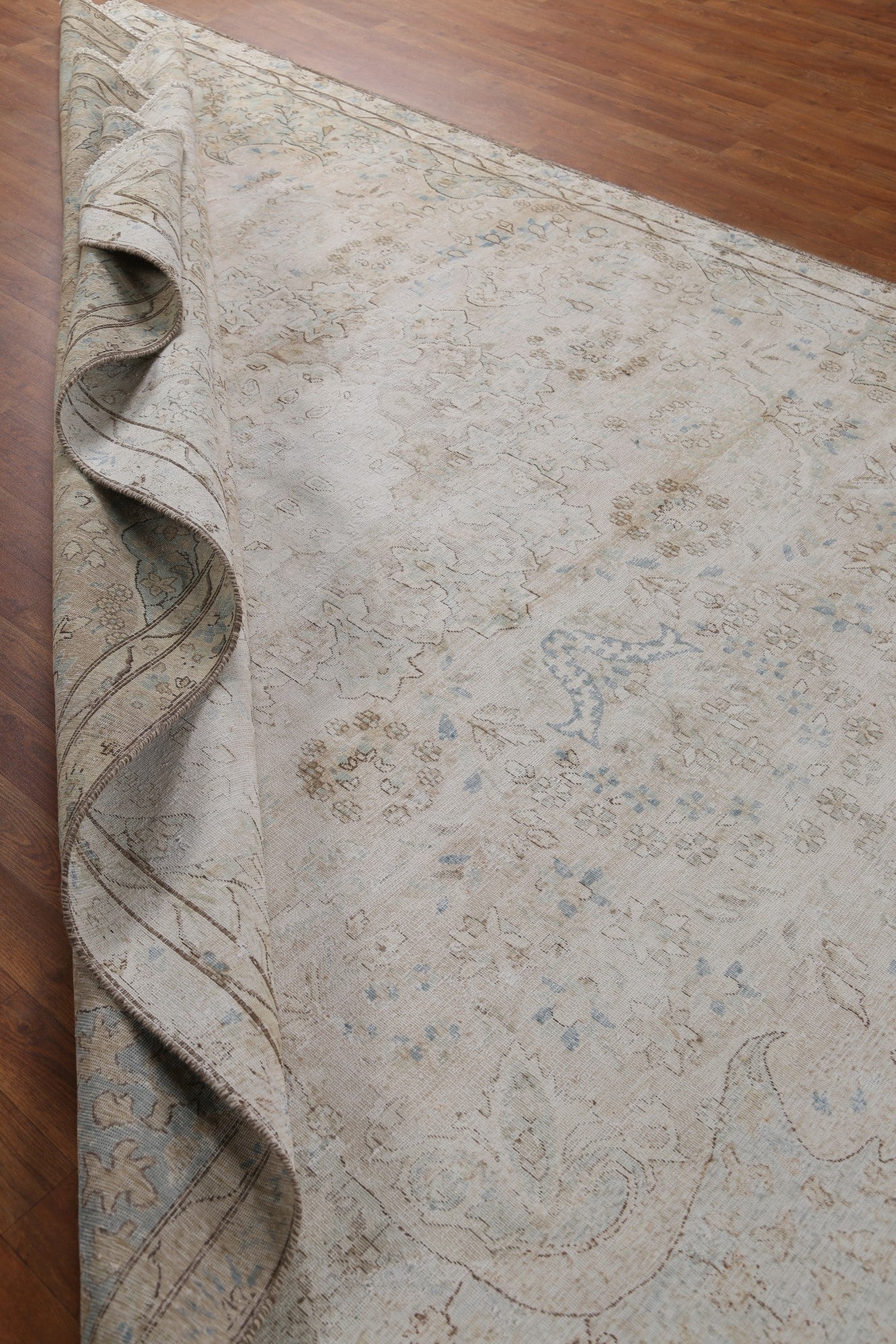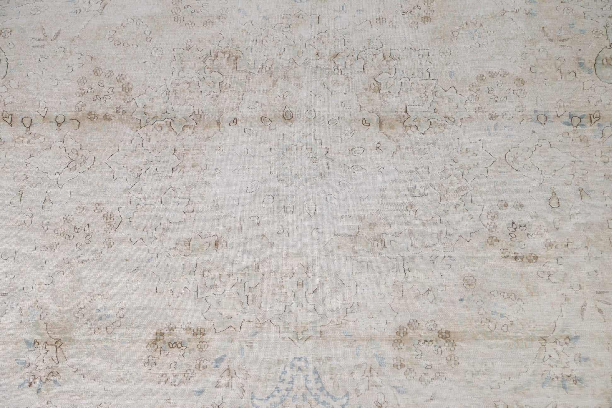 A Beautiful Genuine Persia ( Persia ) Kerman rug is Hand Knotted by skillful weavers in Persia ( Persia ) with 100% Wool Material. This rug is in Very Good (Evenly Low Pile) condition. dimensions are 10' 5'' X 7' 5'' in foot and 318 X 226 in centimeter. the primary color is Beige & Ivories.