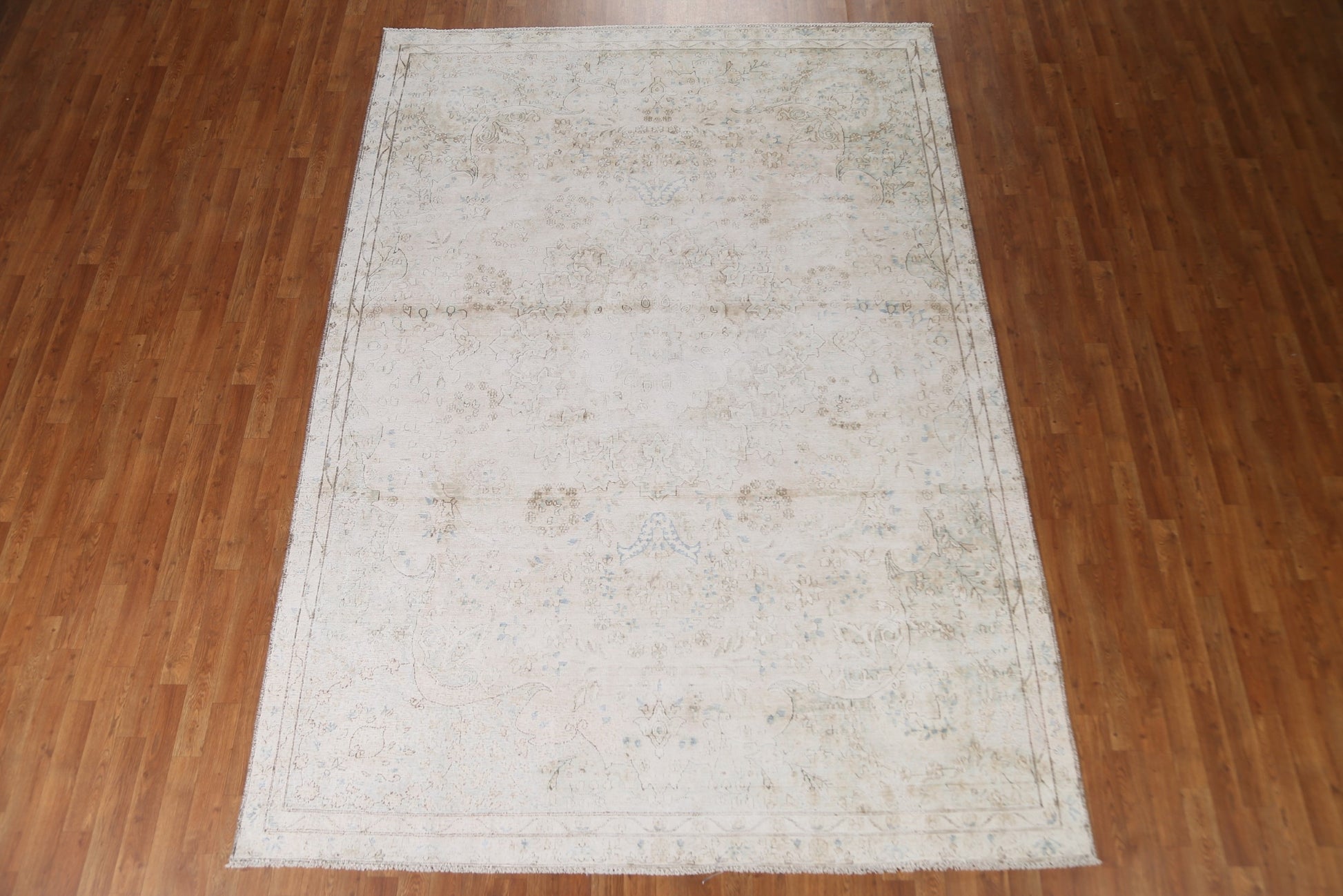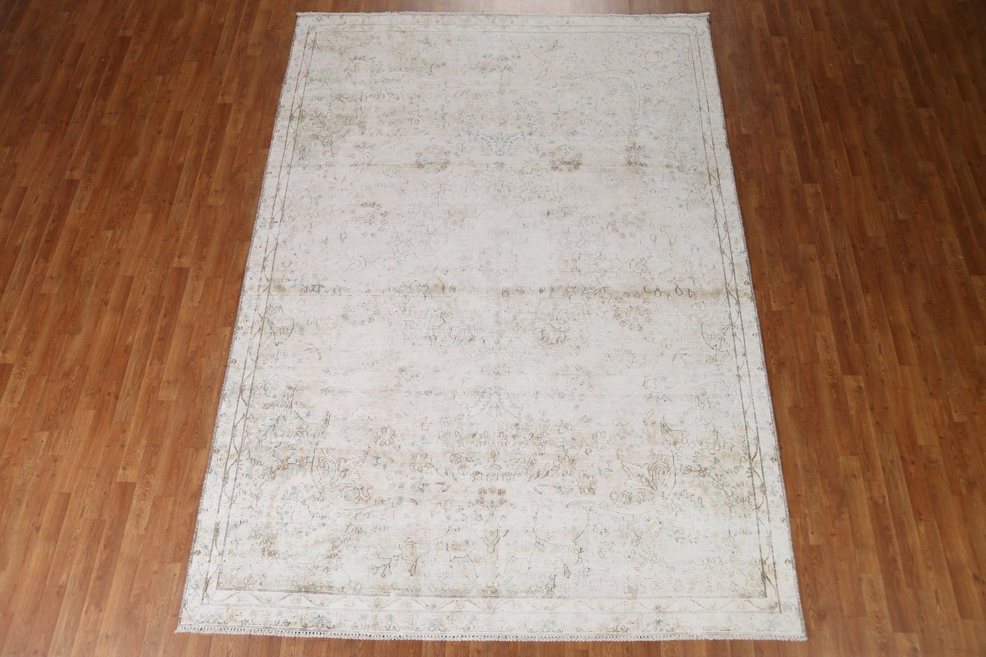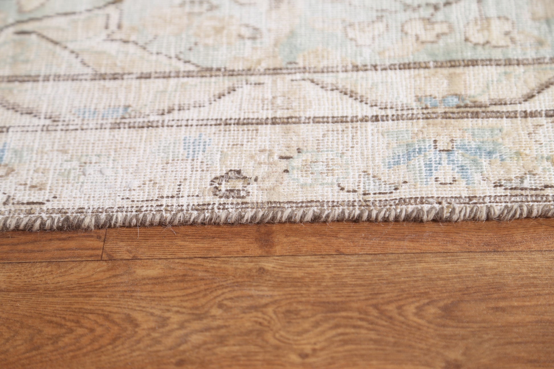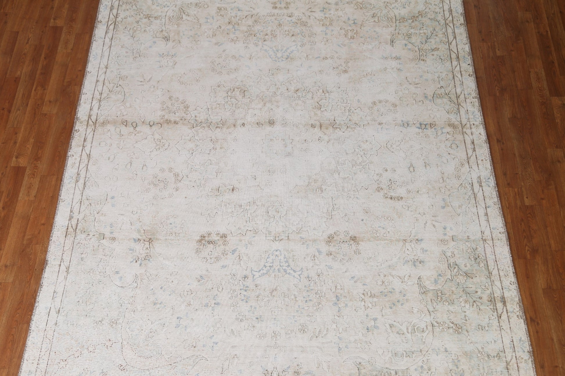 A Beautiful Genuine Persia ( Persia ) Kerman rug is Hand Knotted by skillful weavers in Persia ( Persia ) with 100% Wool Material. This rug is in Very Good (Evenly Low Pile) condition. dimensions are 10' 5'' X 7' 5'' in foot and 318 X 226 in centimeter. the primary color is Beige & Ivories.