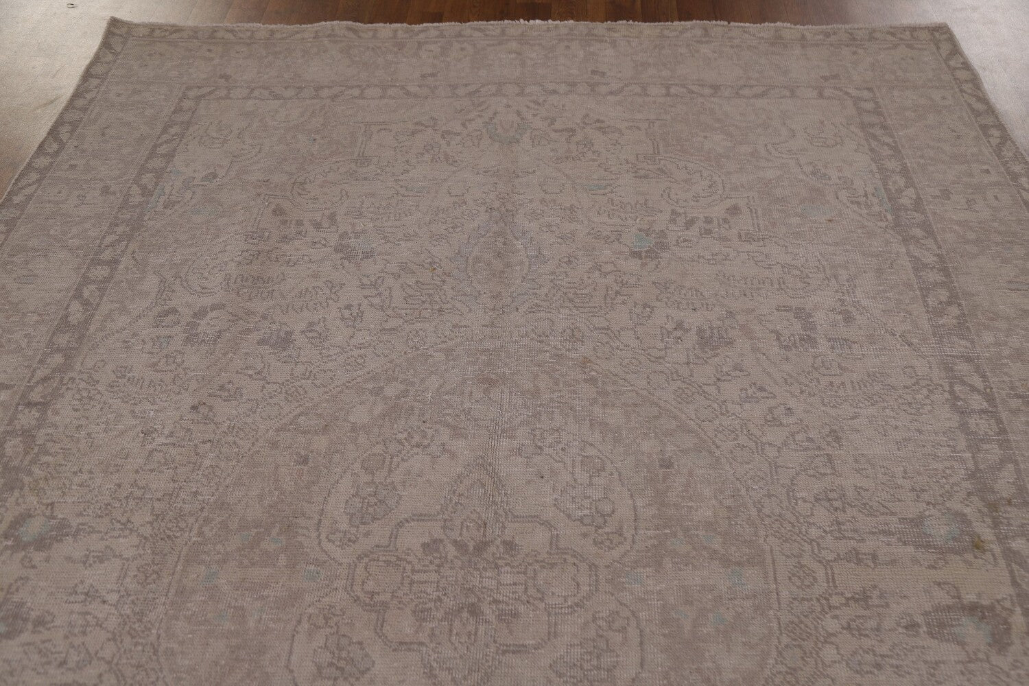 A Beautiful Genuine Persia ( Persia ) Tabriz rug is Hand Knotted by skillful weavers in Persia ( Persia ) with 100% Wool Material. This rug is in Very Good (Evenly Low Pile) condition. dimensions are 9' 5'' X 6' 3'' in foot and 287 X 191 in centimeter. the primary color is Beige & Ivories.