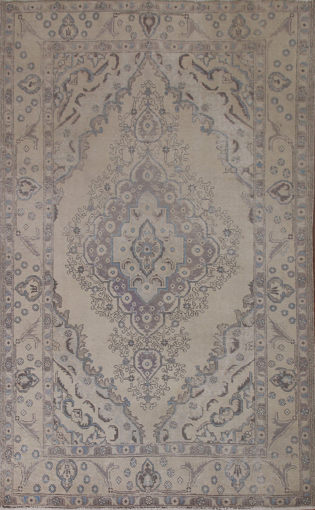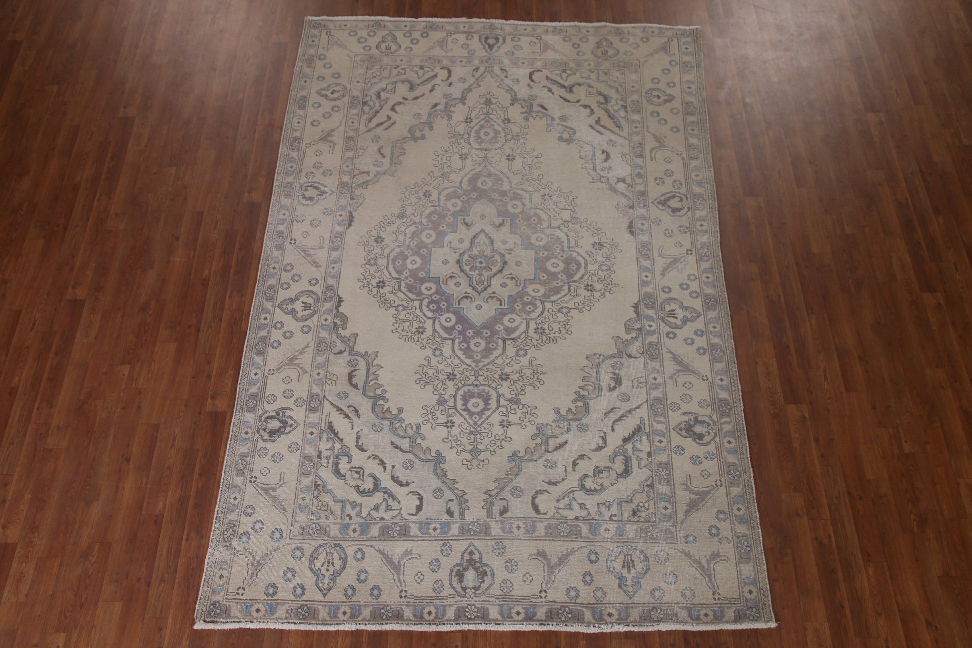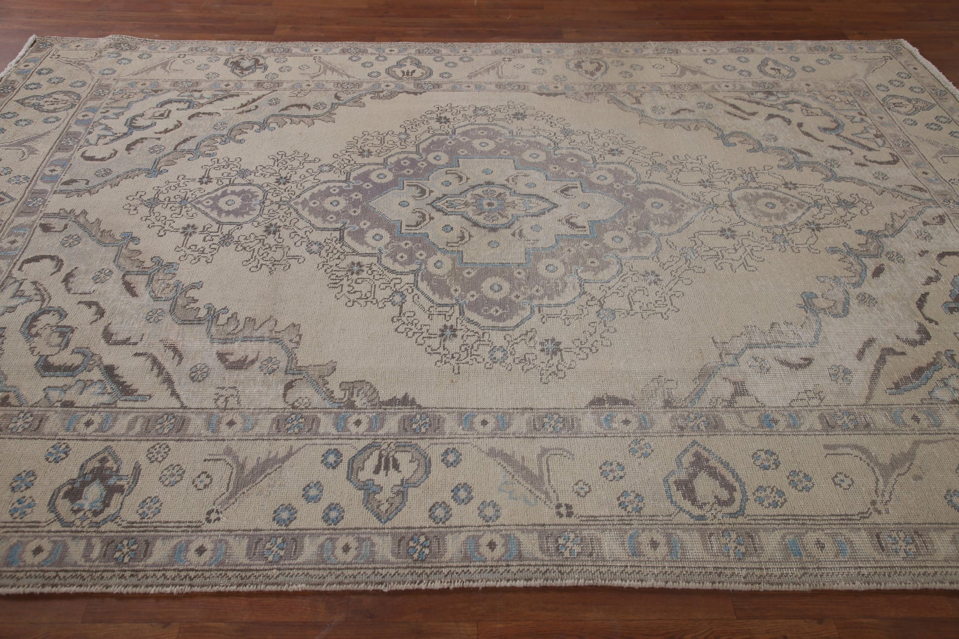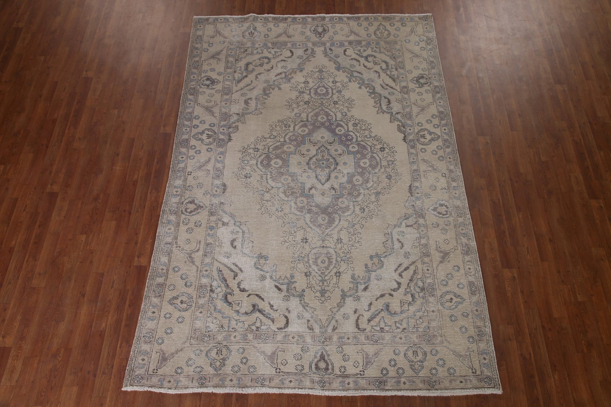 Distressed Muted Tabriz Persian Area Rug 7x10