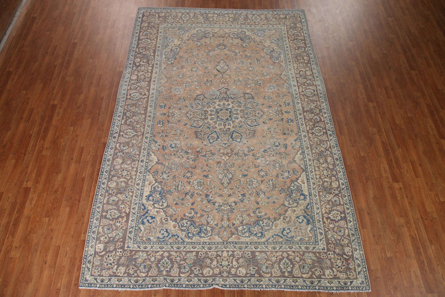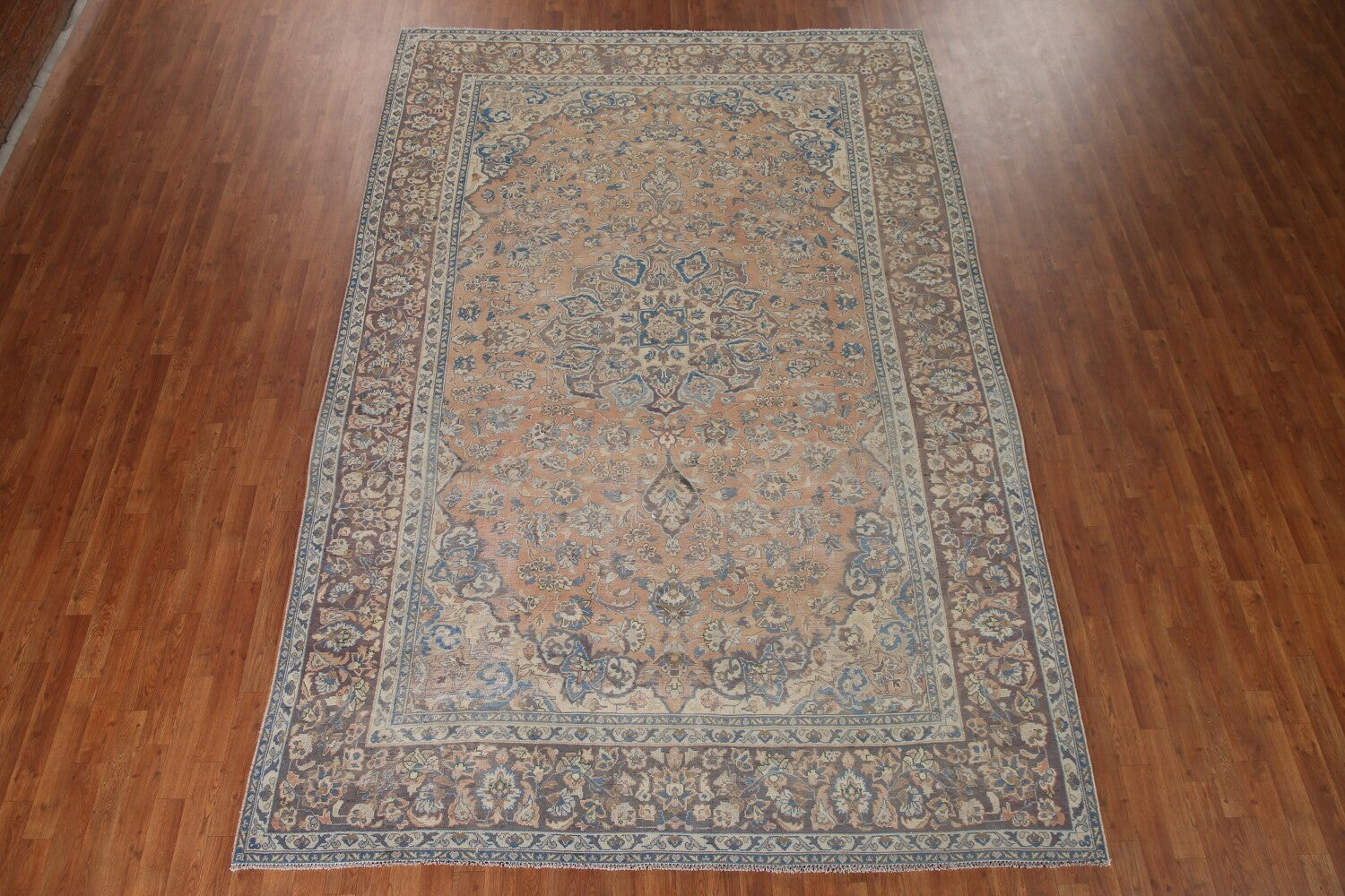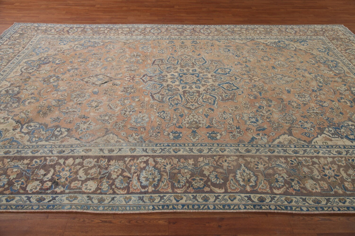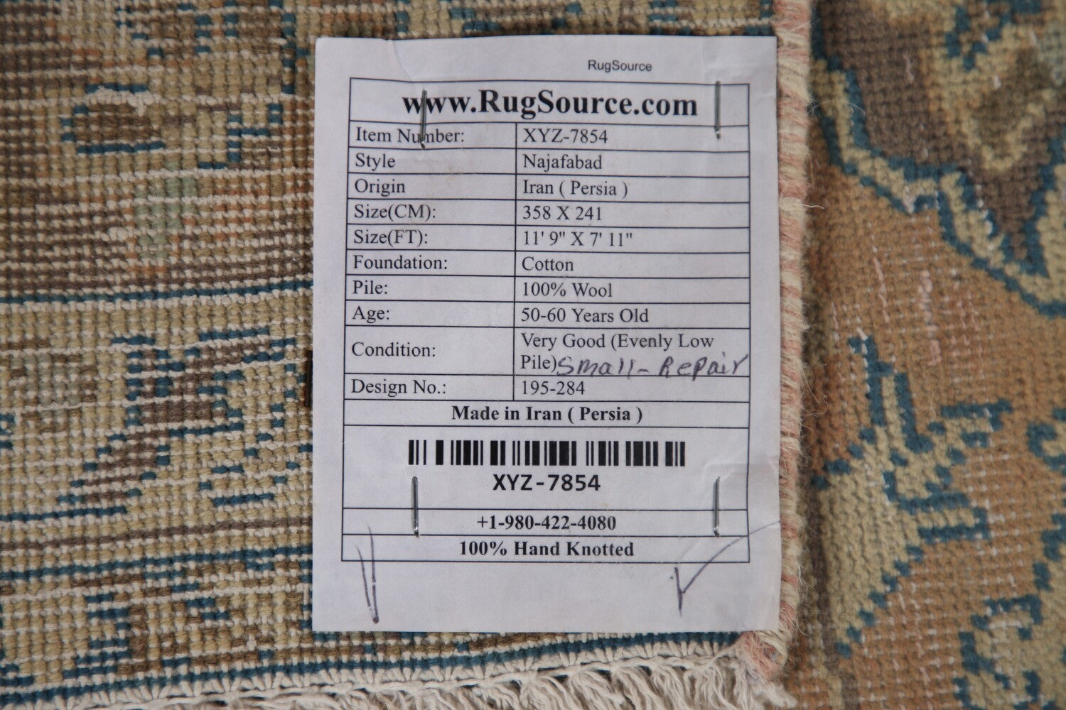A Beautiful Genuine Persia ( Persia ) Najafabad rug is Hand Knotted by skillful weavers in Persia ( Persia ) with 100% Wool Material. This rug is in Very Good (Evenly Low Pile-Repair) condition. dimensions are 11' 9'' X 7' 11'' in foot and 358 X 241 in centimeter. the primary color is Coral.