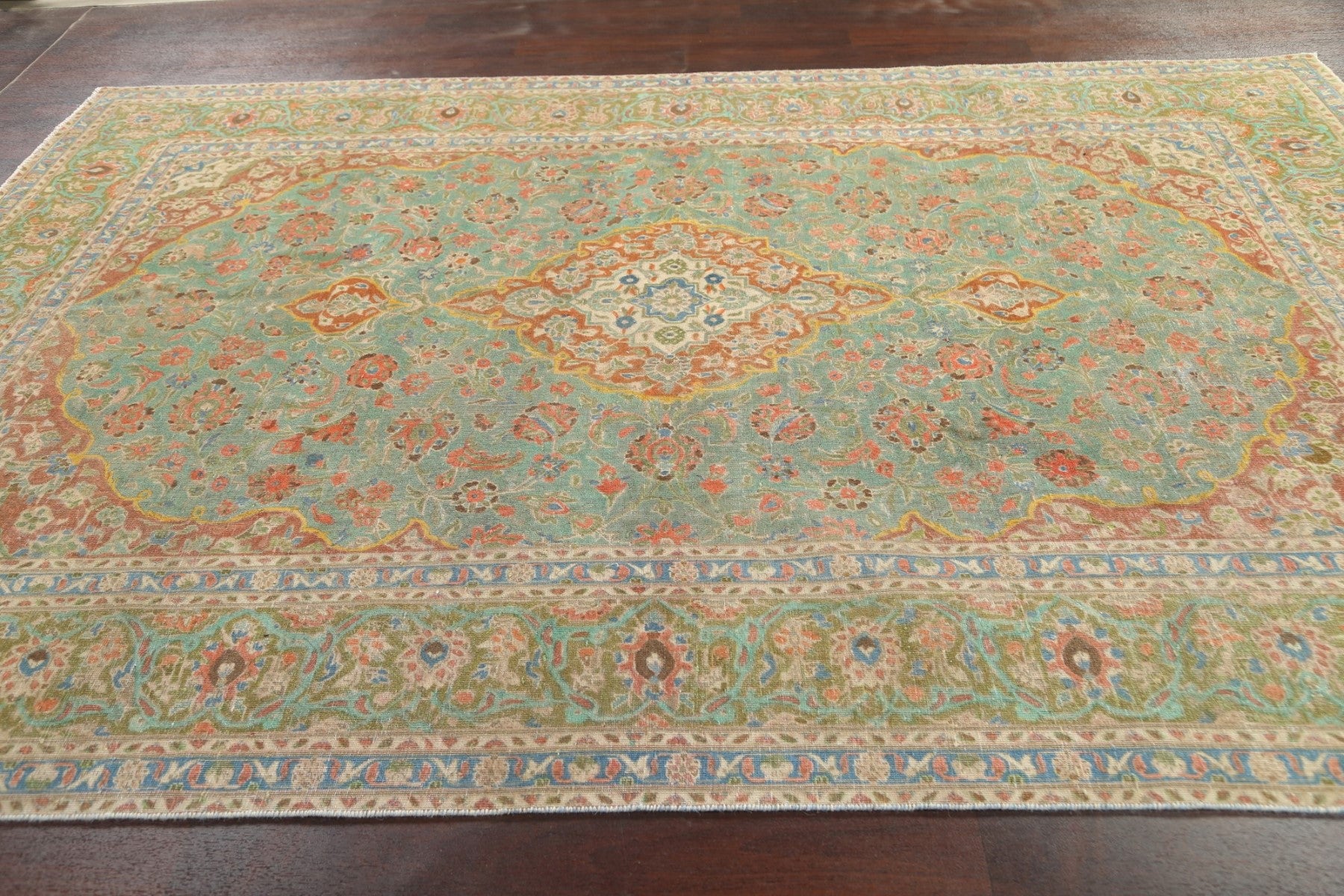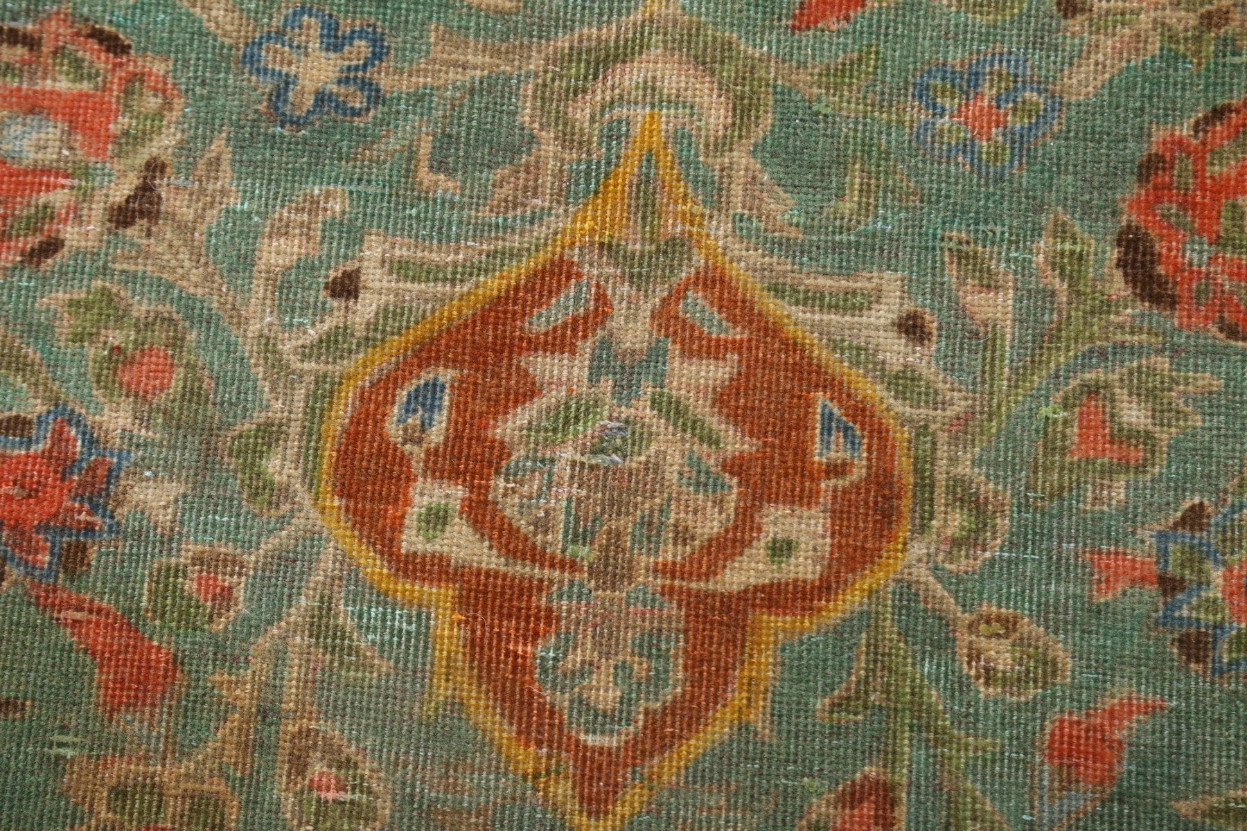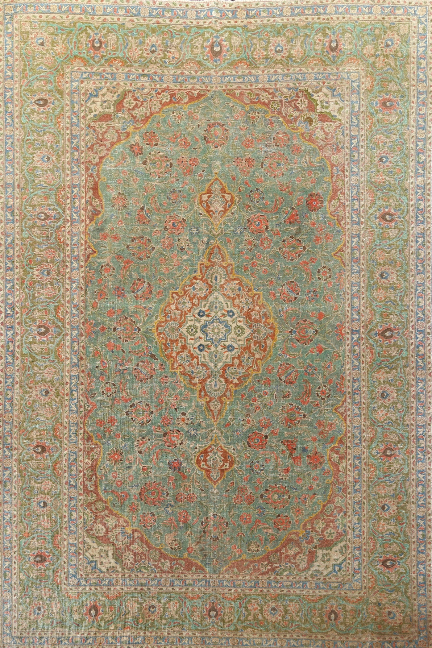 A Beautiful Genuine Persia ( Persia ) Kashan rug is Hand Knotted by skillful weavers in Persia ( Persia ) with 100% Wool Material. This rug is in Very Good (Evenly Low Pile) condition. dimensions are 11' 1'' X 7' 11'' in foot and 338 X 241 in centimeter. the primary color is Green.