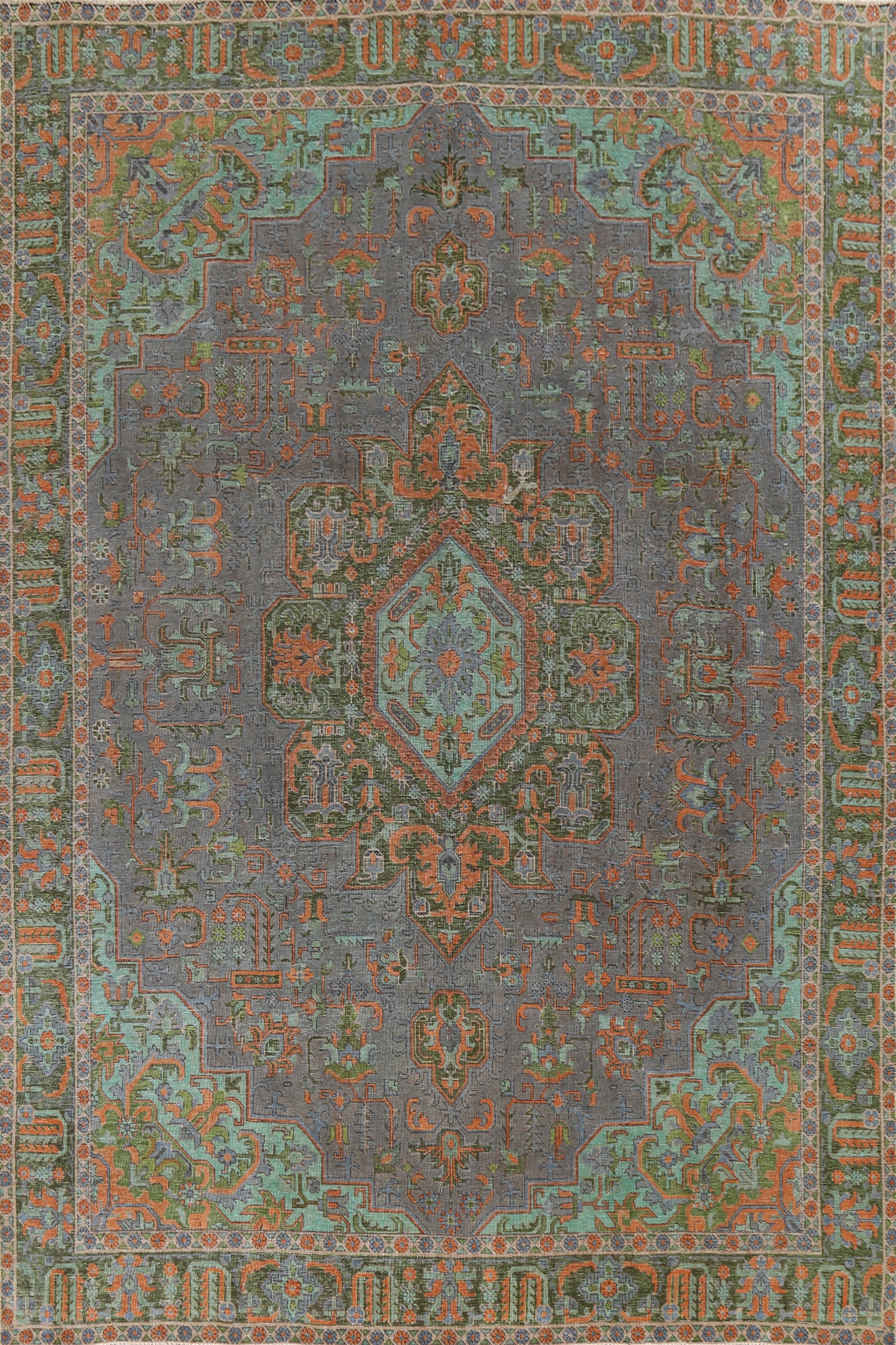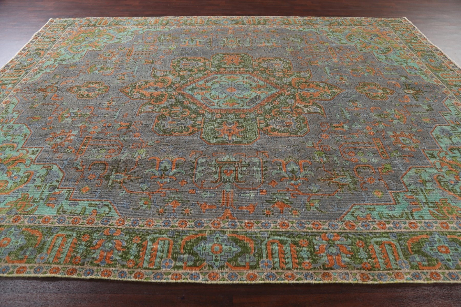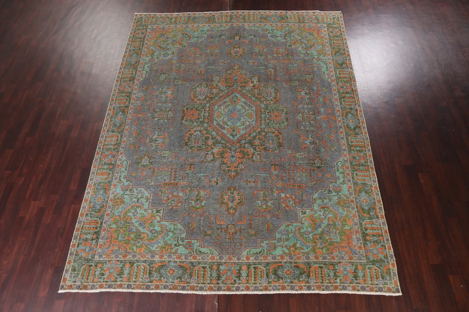 Distressed Over-Dye Tabriz Persian Area Rug 9x12