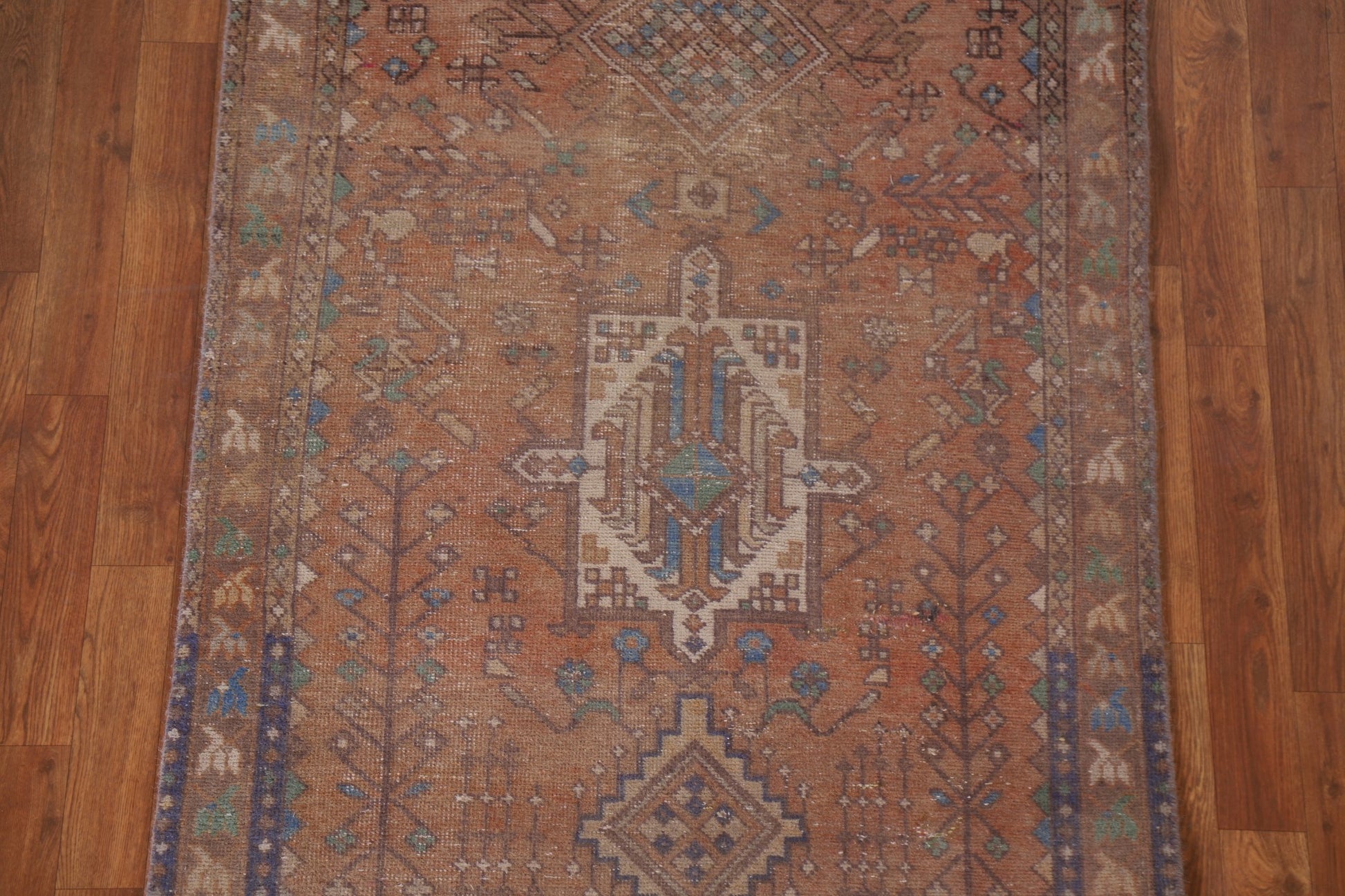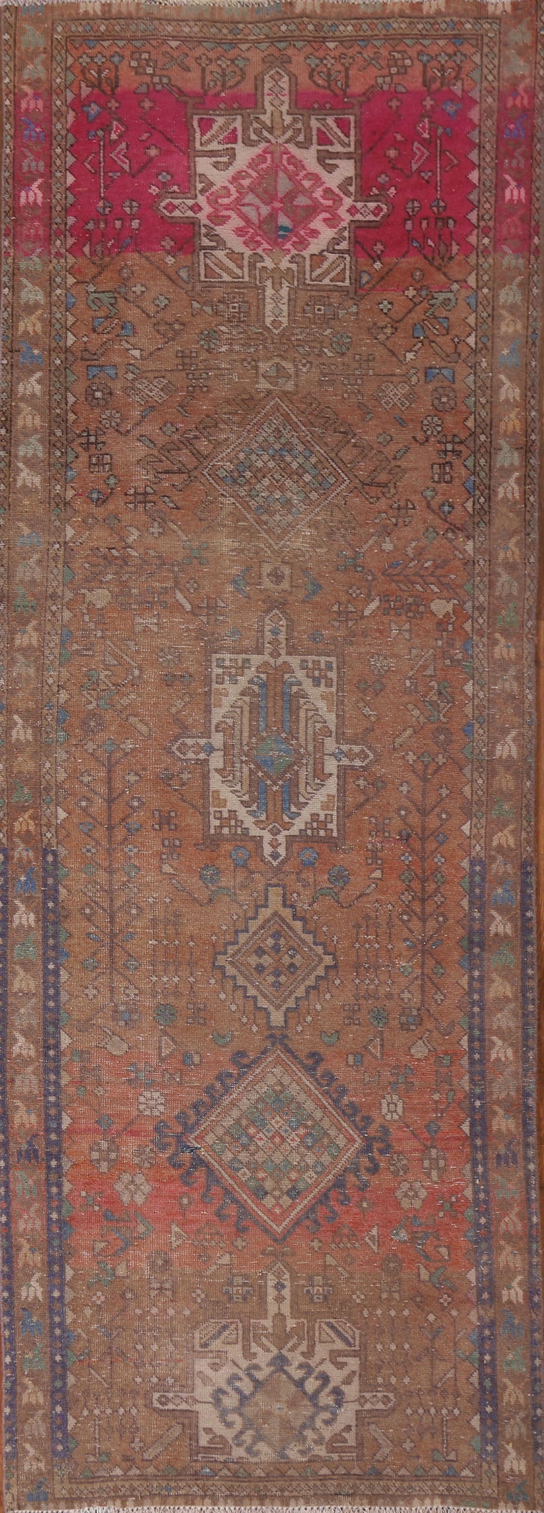 Distressed Over-Dyed Heriz Persian Runner Rug 3x10