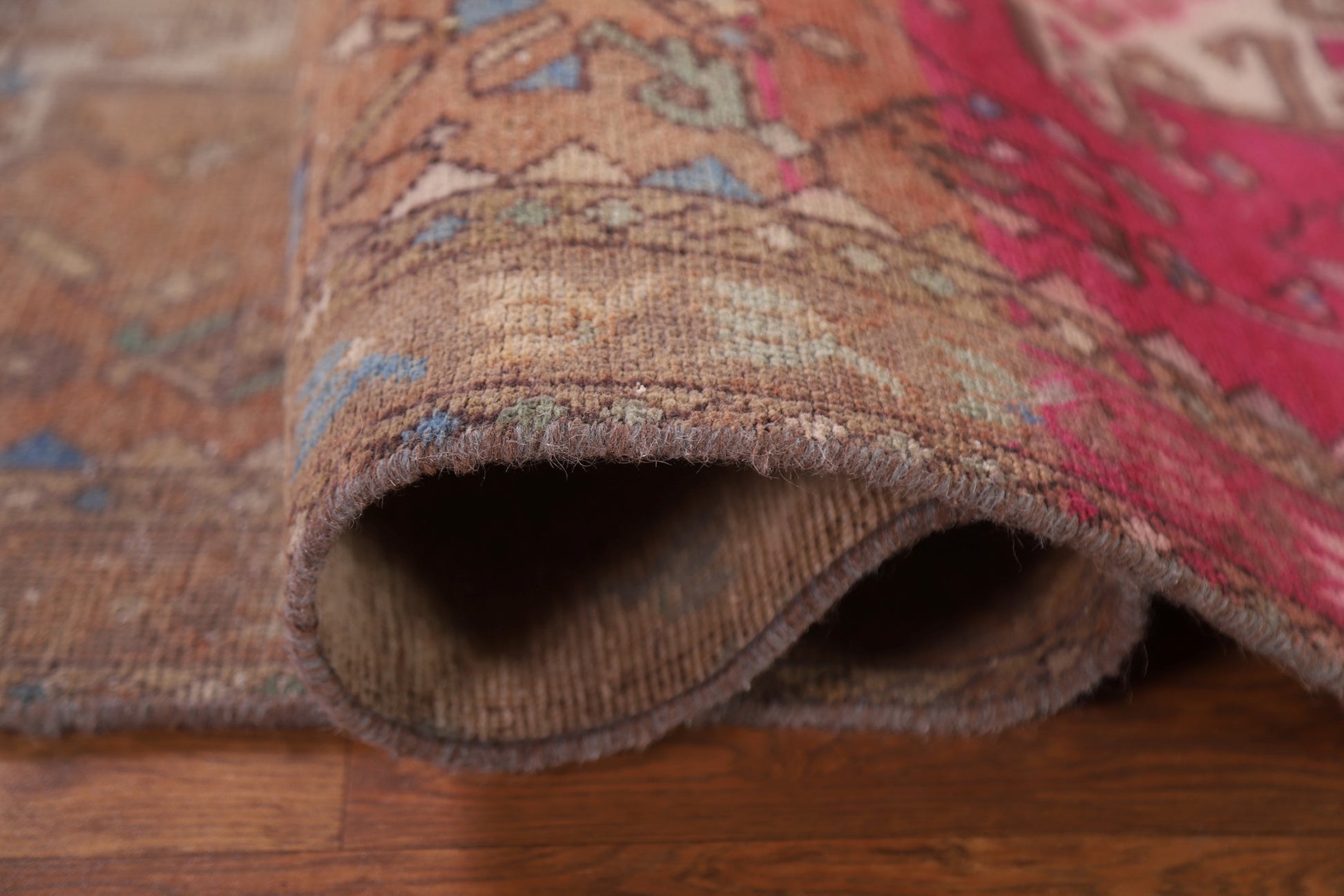 A Beautiful Genuine Persia ( Persia ) Heriz rug is Hand Knotted by skillful weavers in Persia ( Persia ) with 100% Wool Material. This rug is in Very Good (Evenly Low Pile-Abrash-Small Repair) condition. dimensions are 9' 7'' X 3' 3'' in foot and 292 X 99 in centimeter. the primary color is Multi-Colored.