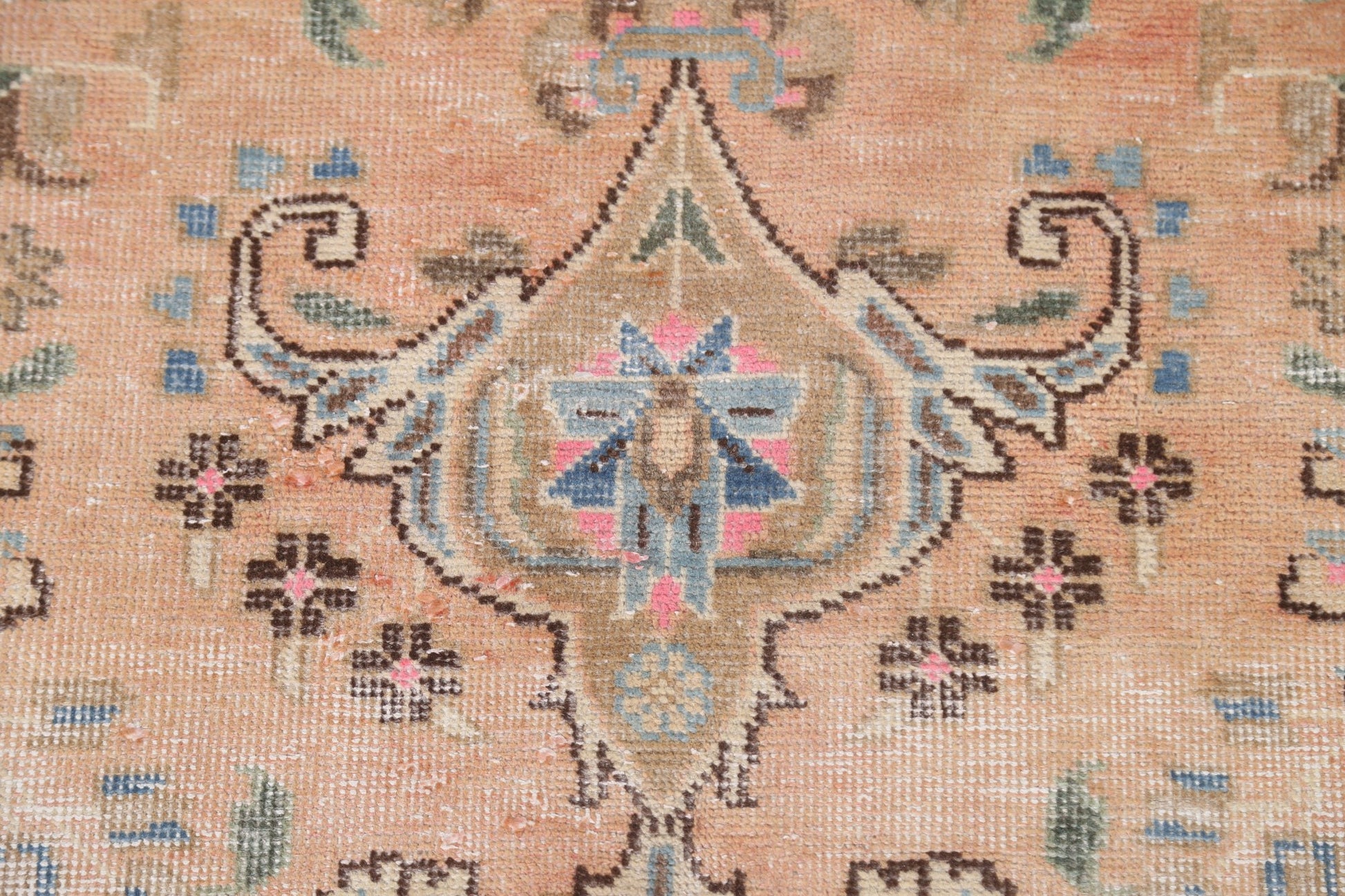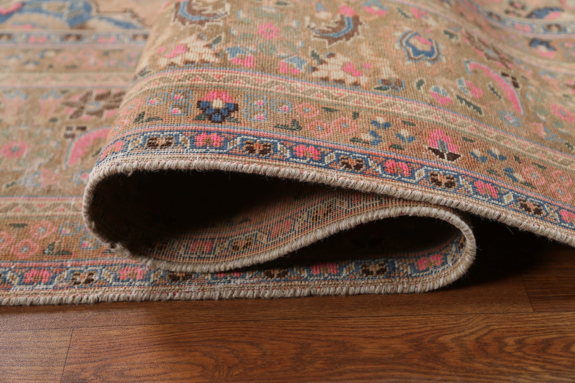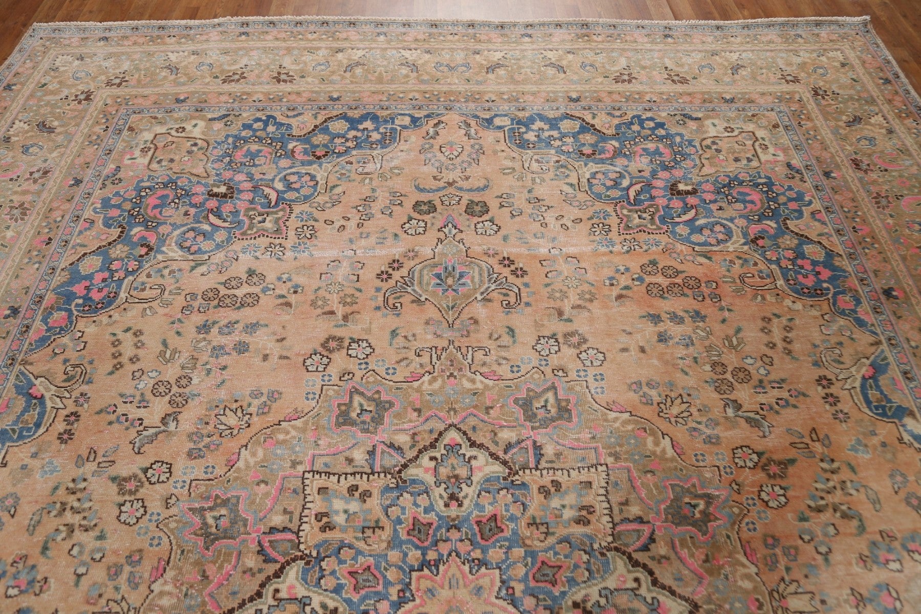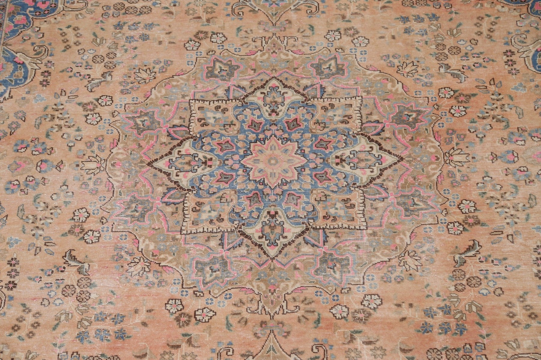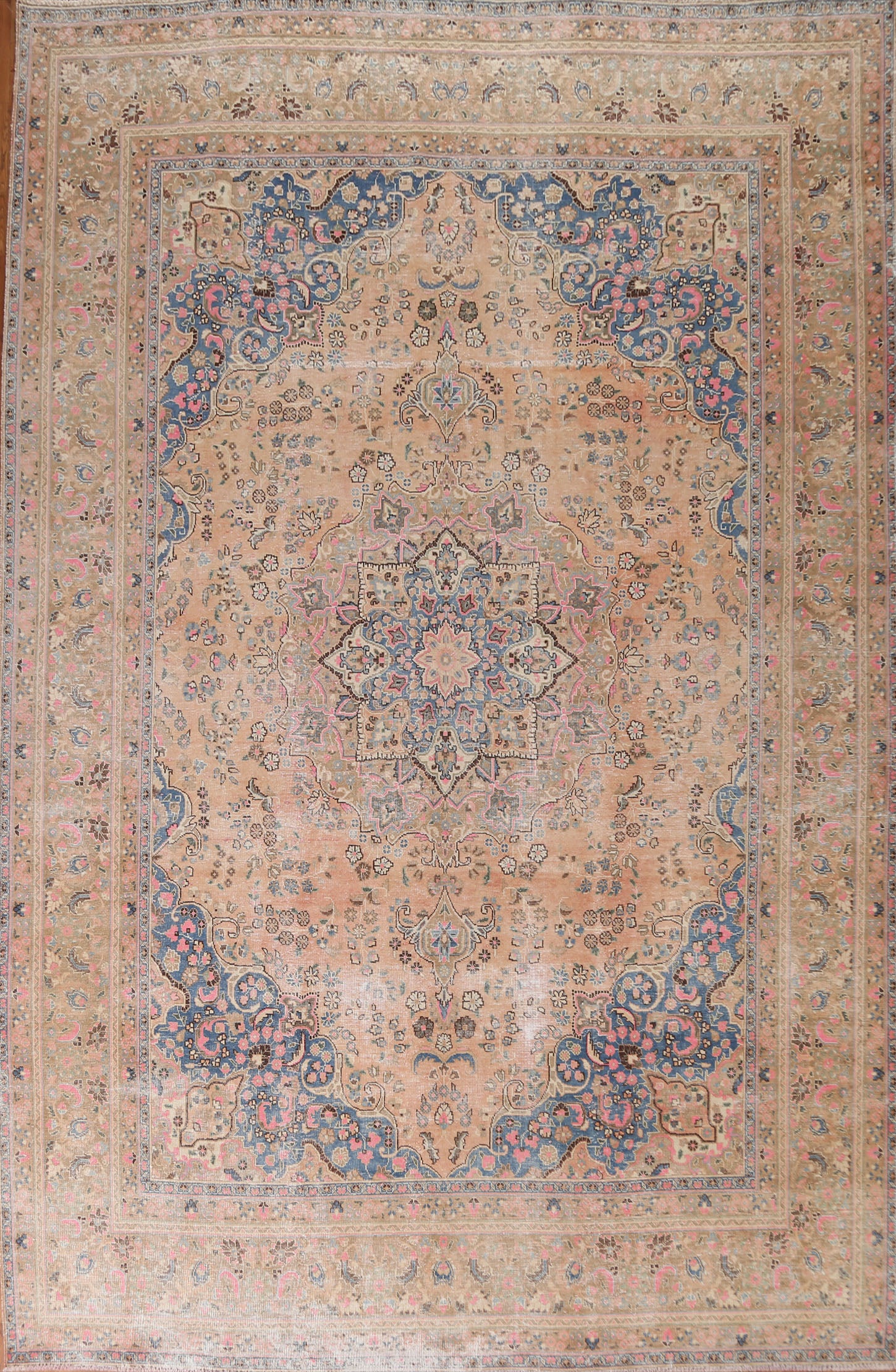 A Beautiful Genuine Persia ( Persia ) Mashad rug is Hand Knotted by skillful weavers in Persia ( Persia ) with 100% Wool Material. This rug is in Very Good (Evenly Low Pile) condition. dimensions are 12' 6'' X 9' 6'' in foot and 381 X 290 in centimeter. the primary color is Coral.