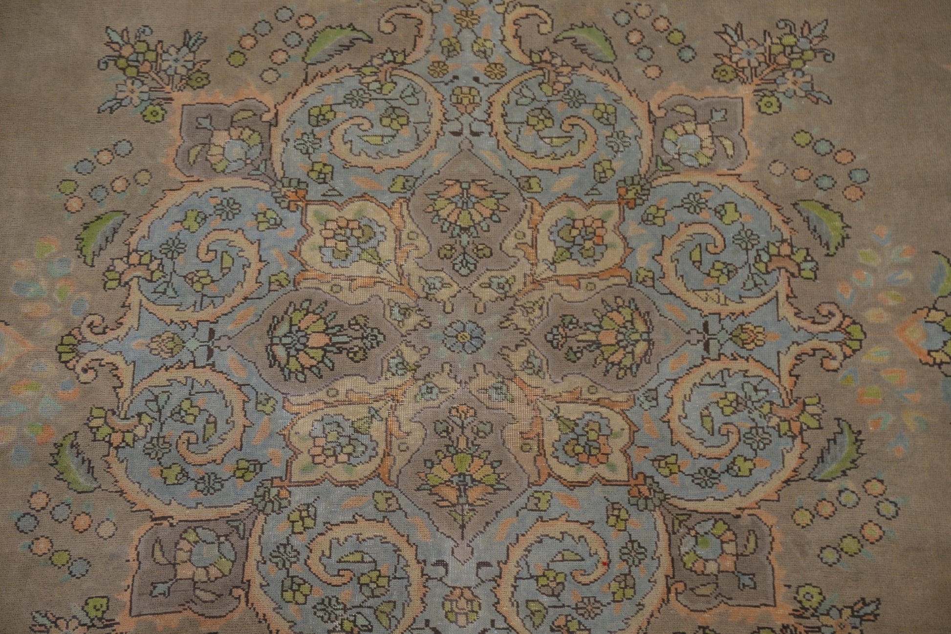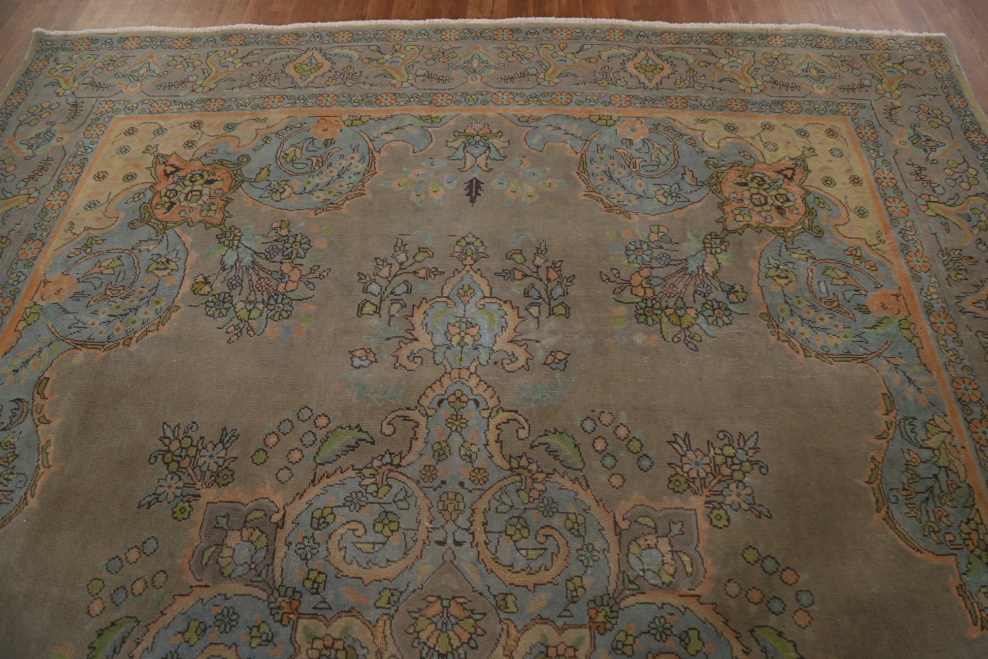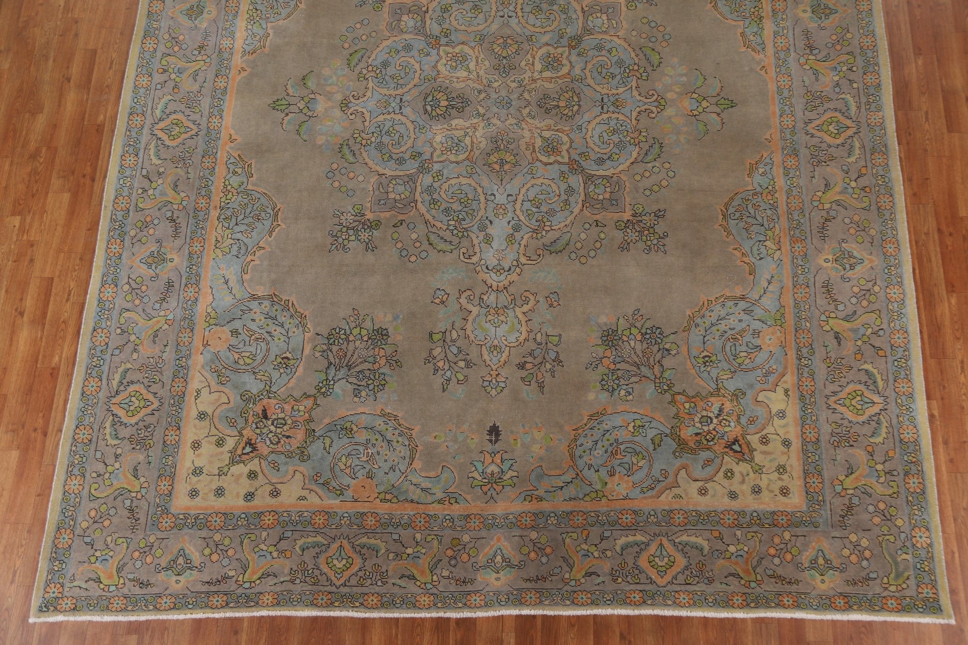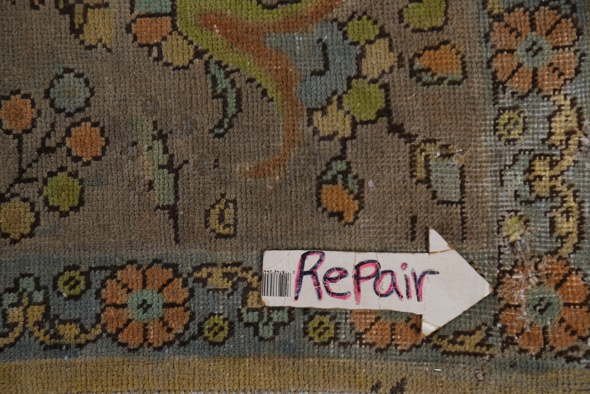 A Beautiful Genuine Persia ( Persia ) Tabriz rug is Hand Knotted by skillful weavers in Persia ( Persia ) with 100% Wool Material. This rug is in Very Good (Evenly Low Pile-Repair) condition. dimensions are 13' 0'' X 9' 9'' in foot and 396 X 297 in centimeter. the primary color is Green.
