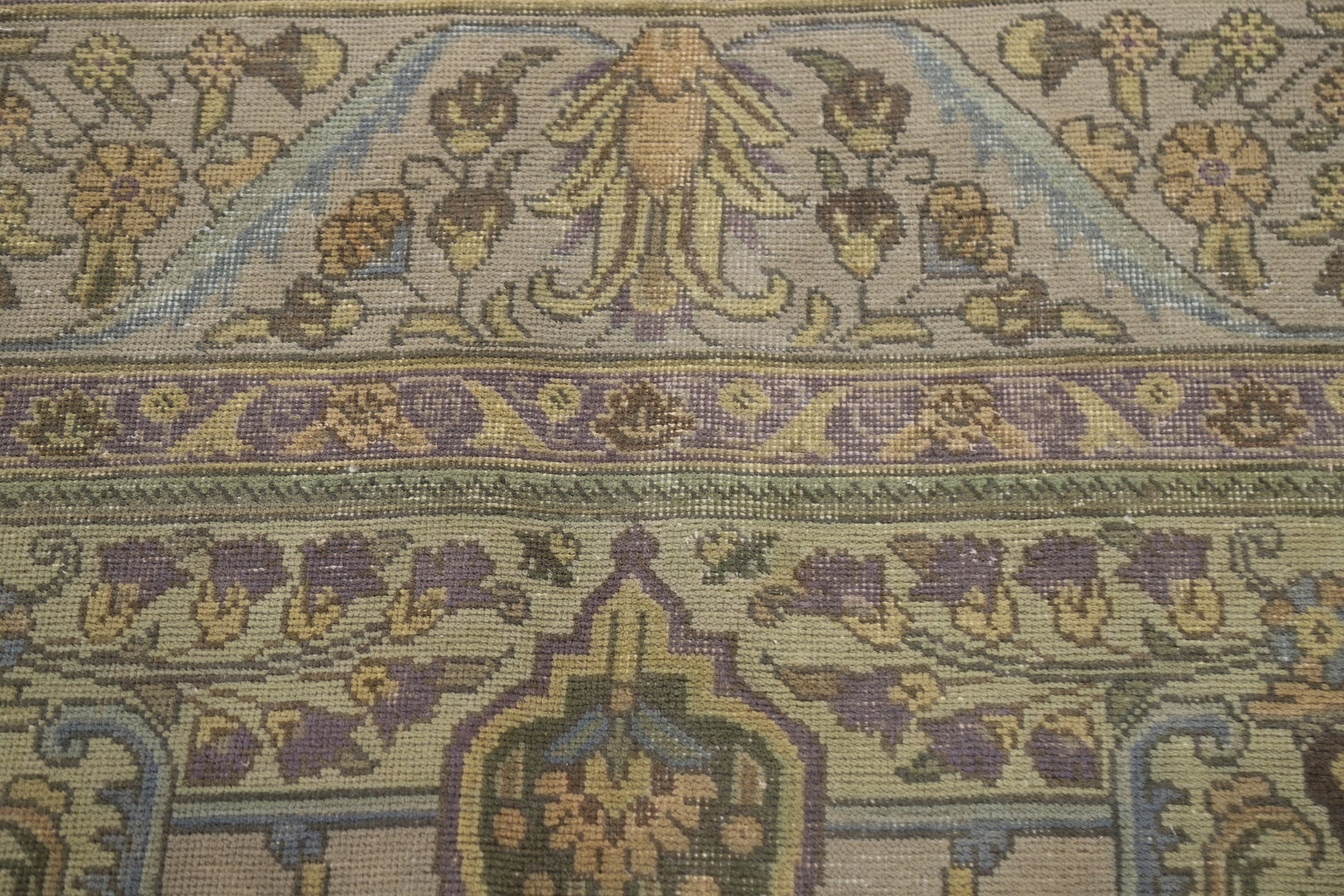A Beautiful Genuine Persia ( Persia ) Tabriz rug is Hand Knotted by skillful weavers in Persia ( Persia ) with 100% Wool Material. This rug is in Very Good (Evenly Low Pile) condition. dimensions are 13' 2'' X 9' 11'' in foot and 401 X 302 in centimeter. the primary color is Greys & Charcoal.