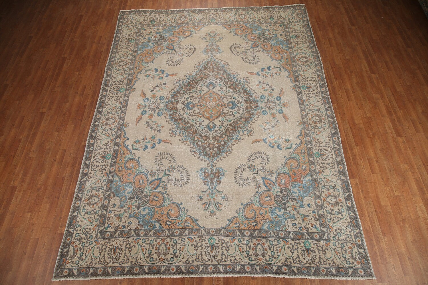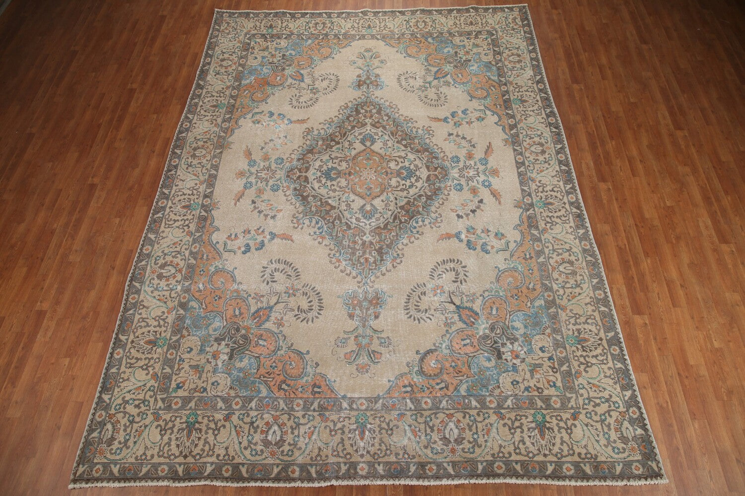 Distressed Over-Dyed Tabriz Persian Area Rug 10x13