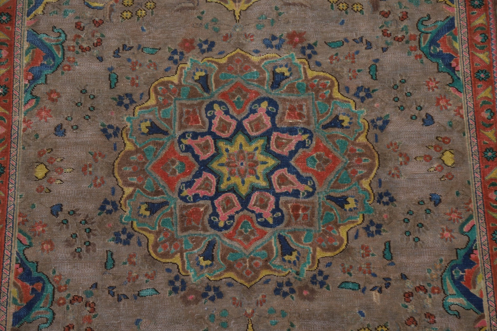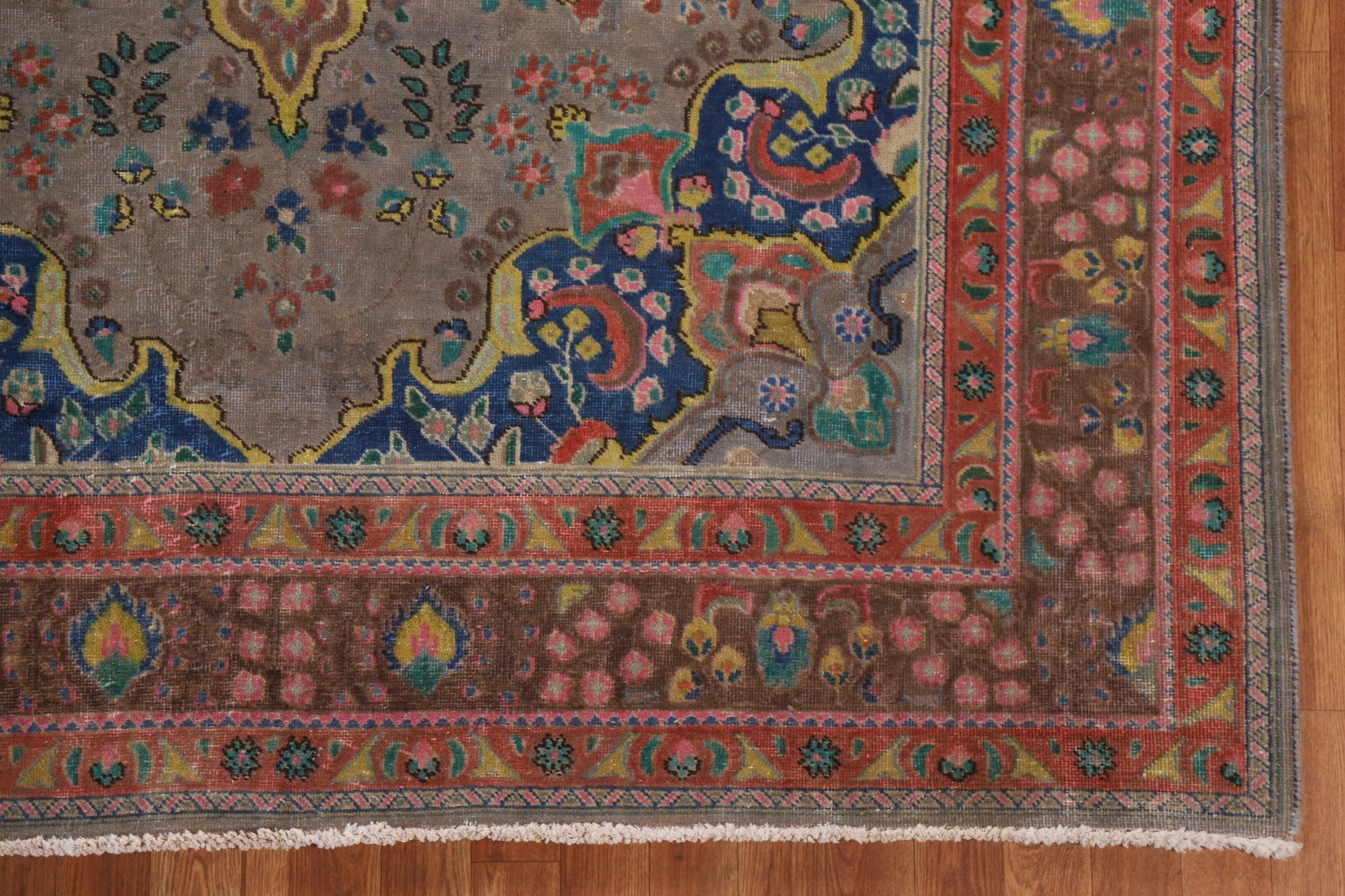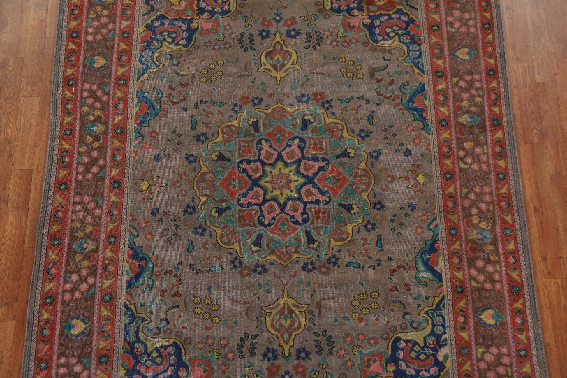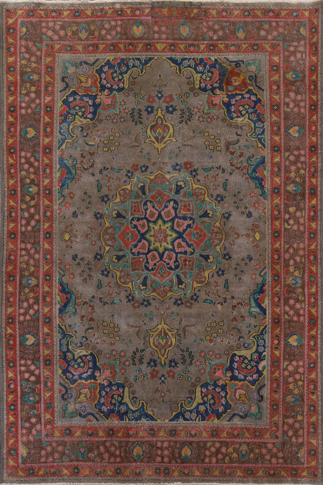 A Beautiful Genuine Persia ( Persia ) Tabriz rug is Hand Knotted by skillful weavers in Persia ( Persia ) with 100% Wool Material. This rug is in Very Good (Evenly Low Pile-Repair) condition. dimensions are 9' 1'' X 6' 5'' in foot and 277 X 196 in centimeter. the primary color is Brown.
