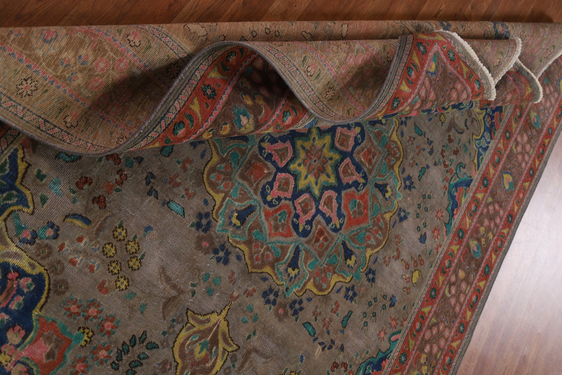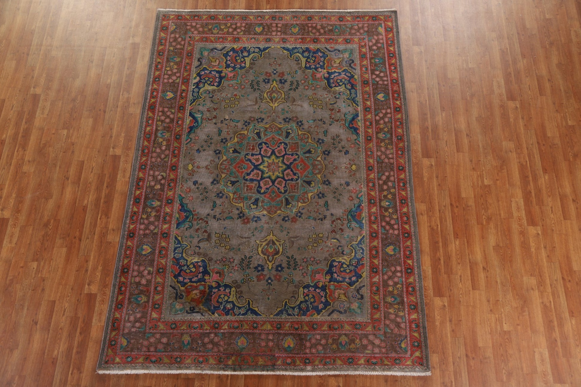 Distressed Over-Dyed Tabriz Persian Area Rug 6x9