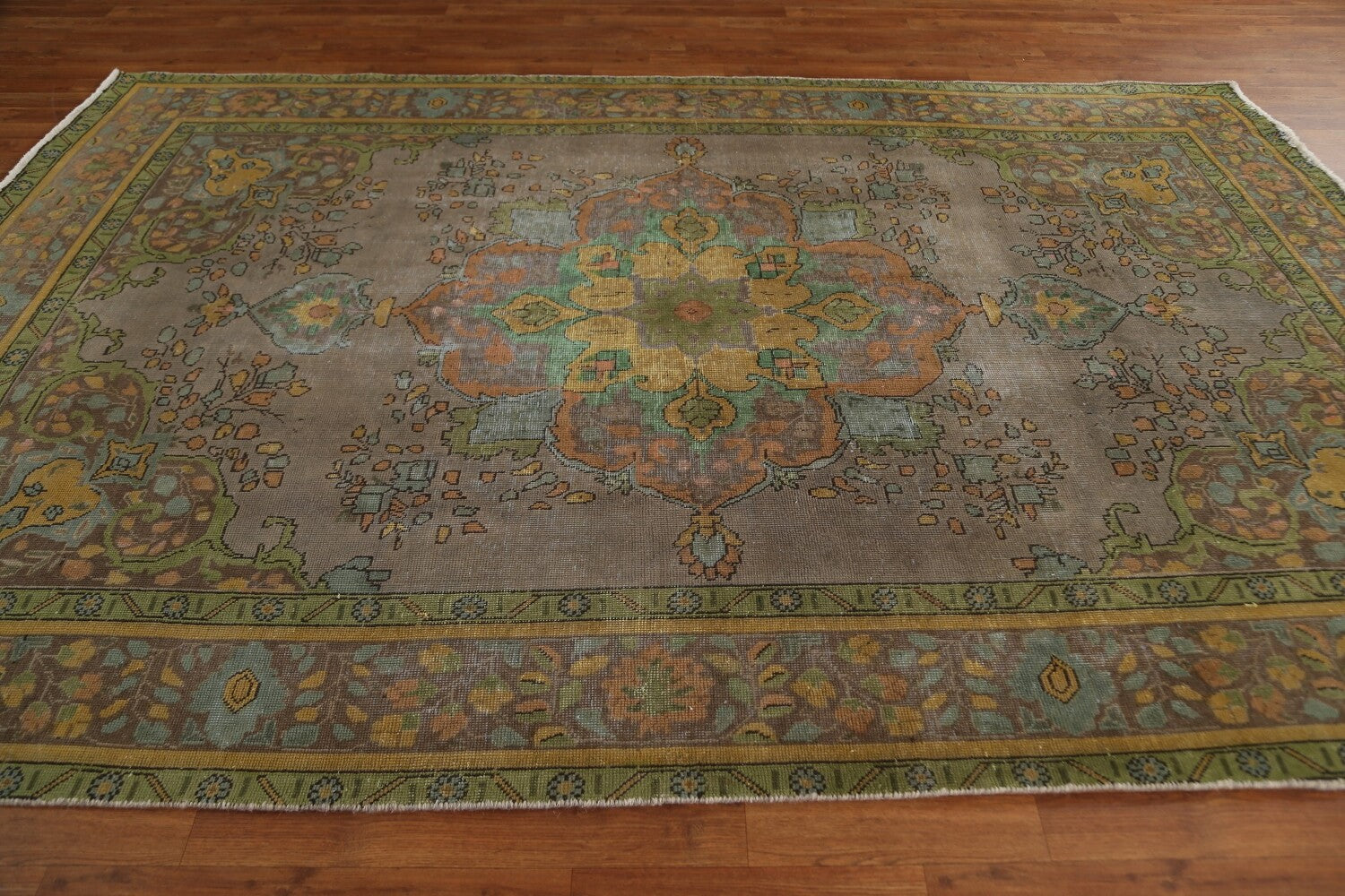 Distressed Over-Dyed Tabriz Persian Area Rug 7x10