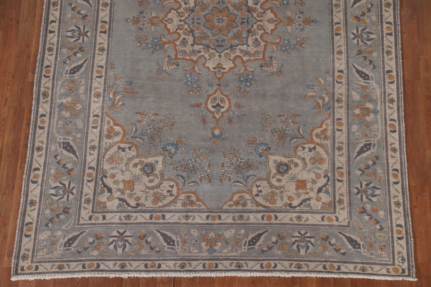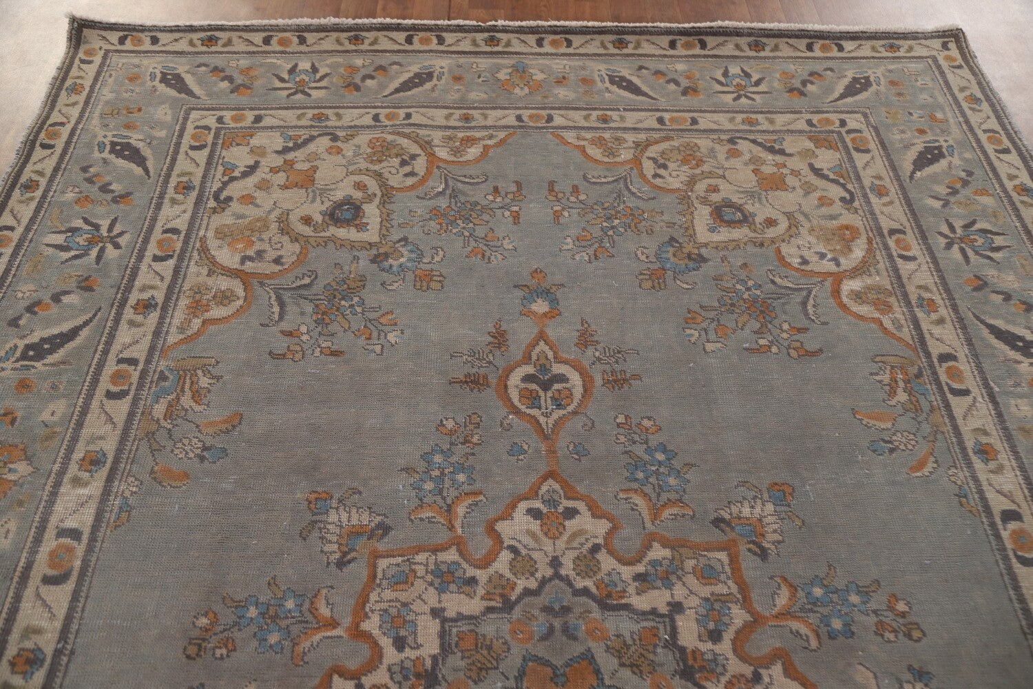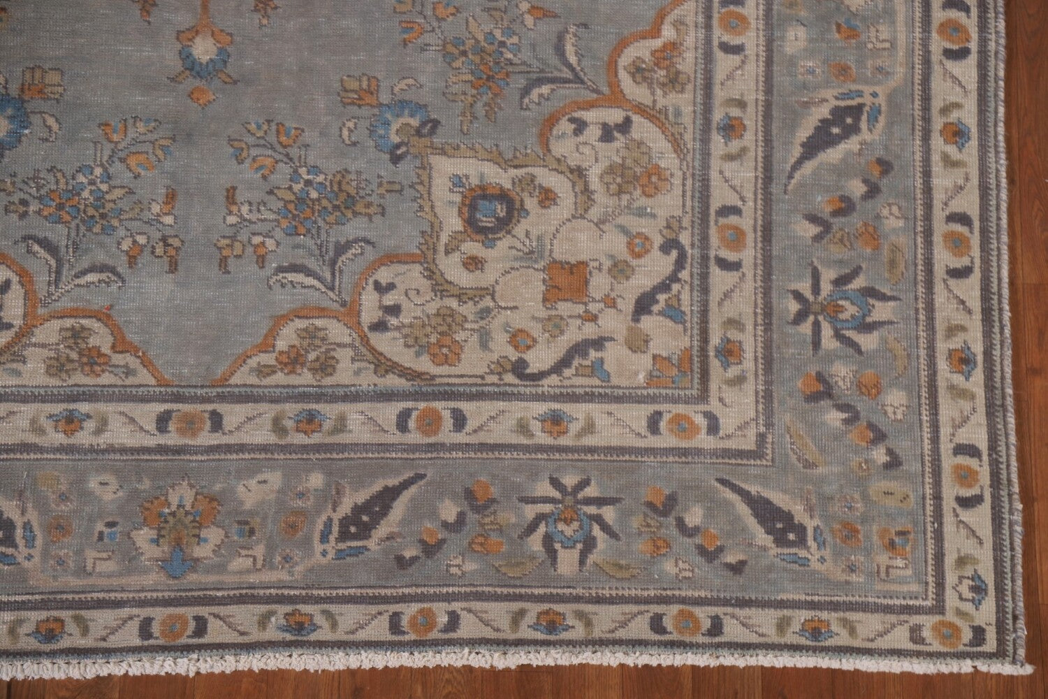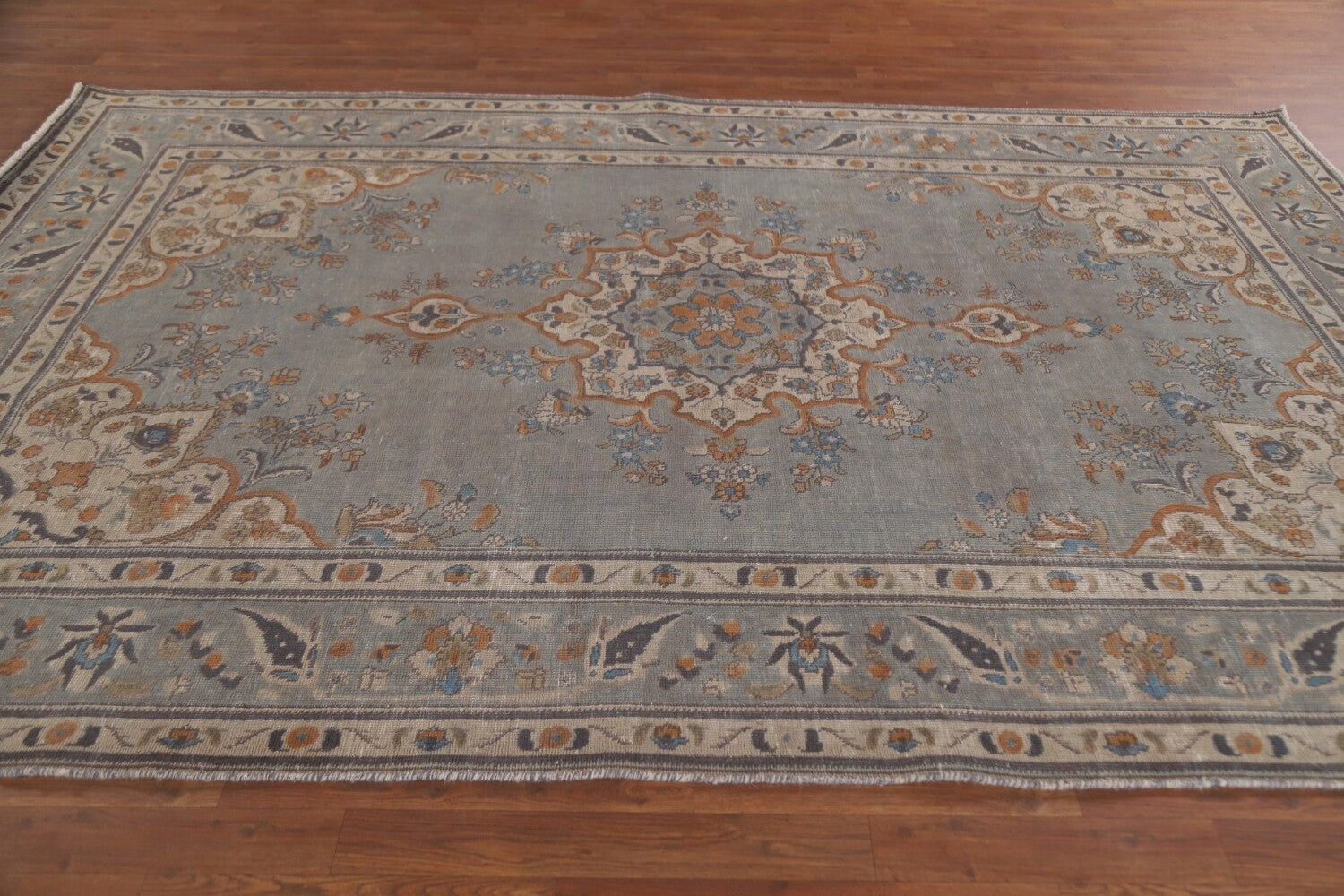 A Beautiful Genuine Persia ( Persia ) Tabriz rug is Hand Knotted by skillful weavers in Persia ( Persia ) with 100% Wool Material. This rug is in Very Good (Evenly Low Pile) condition. dimensions are 9' 7'' X 6' 8'' in foot and 292 X 203 in centimeter. the primary color is Greys & Charcoal.